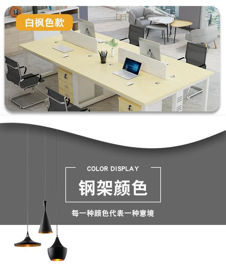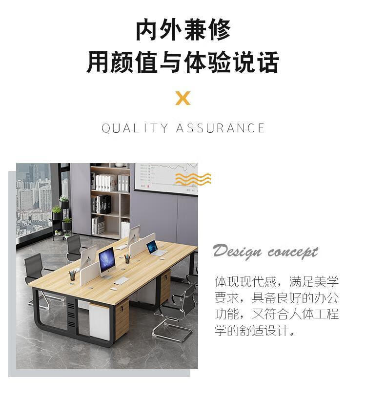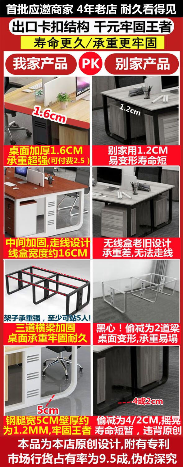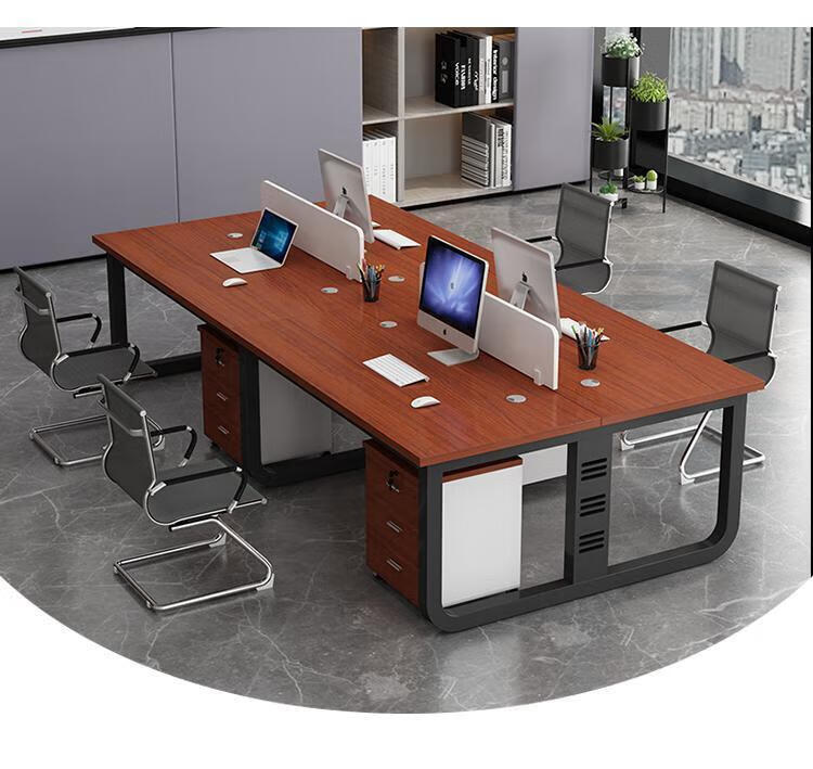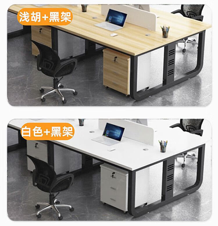 OIMG staff desk office computer table double 4 people 6 tables four-person work station staff table screen table and chair combination light beard + black frame 5*2.5 thickened and solid U-shaped double seat