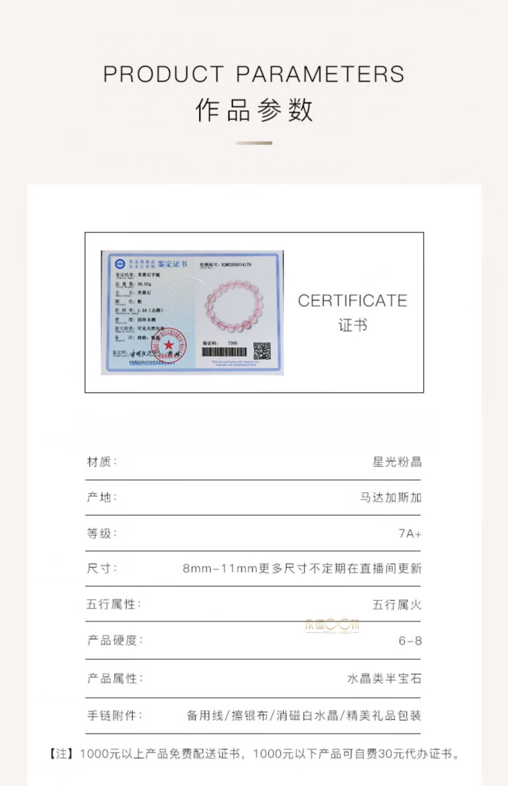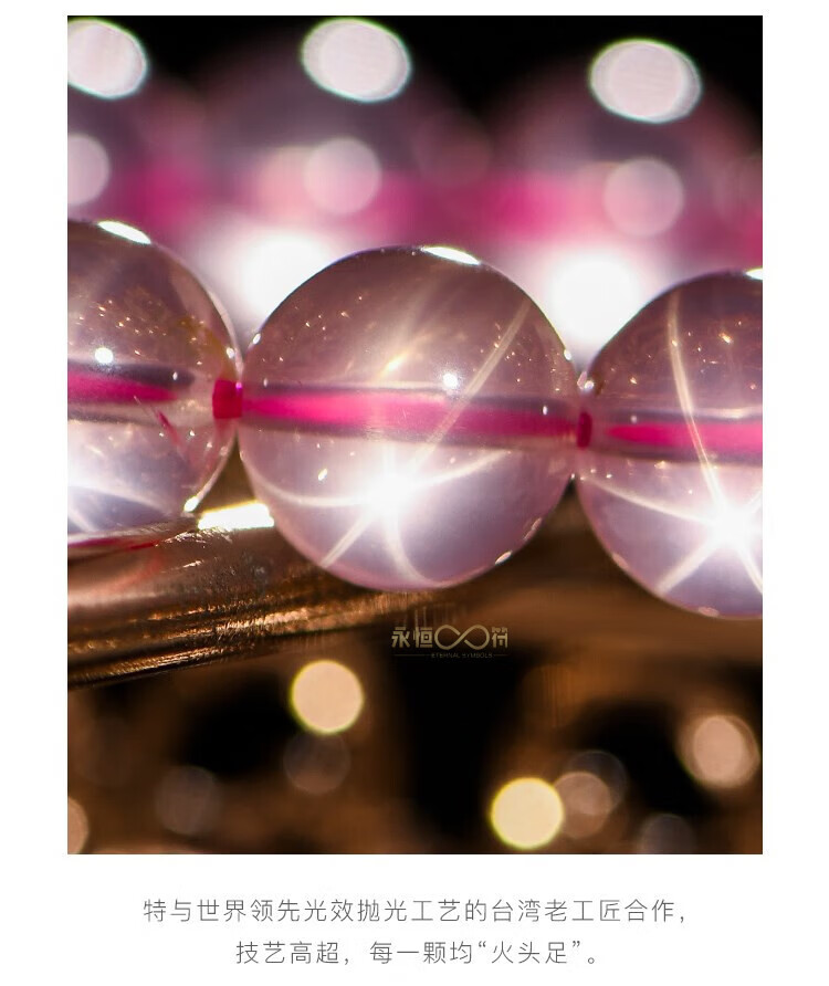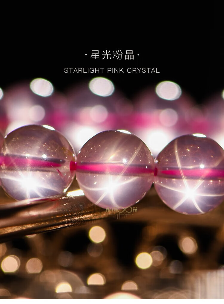 Eternal Symbol Brand Natural Crystal 7A+ Collection Grade Madagascar Old Mine Starlight Pink Crystal Bead Bracelet for Women's Valentine's Day Starlight Pink Quartz Bracelet About 7mm