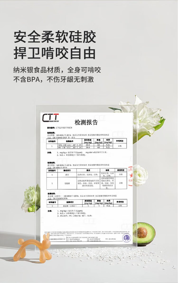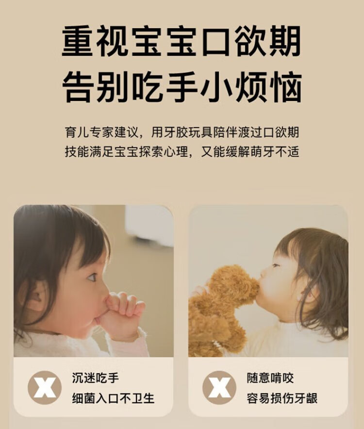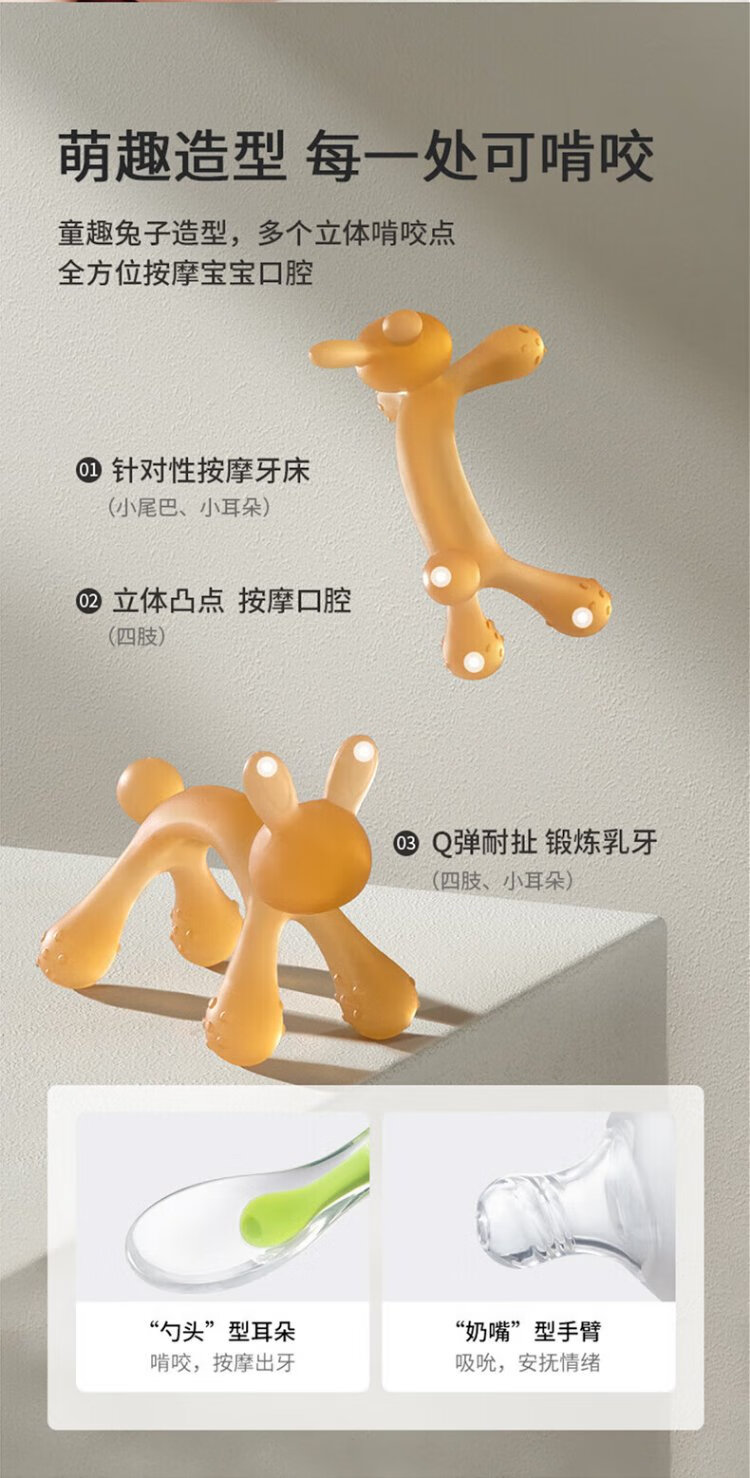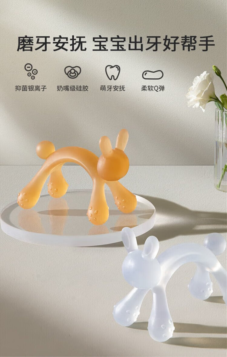 Xin'andai baby teether, nano silver teether, anti-eating hand artifact, teething stick, baby silicone toy, boilable, nanosilver antibacterial, rabbit teether + anti-lost chain