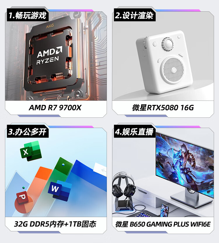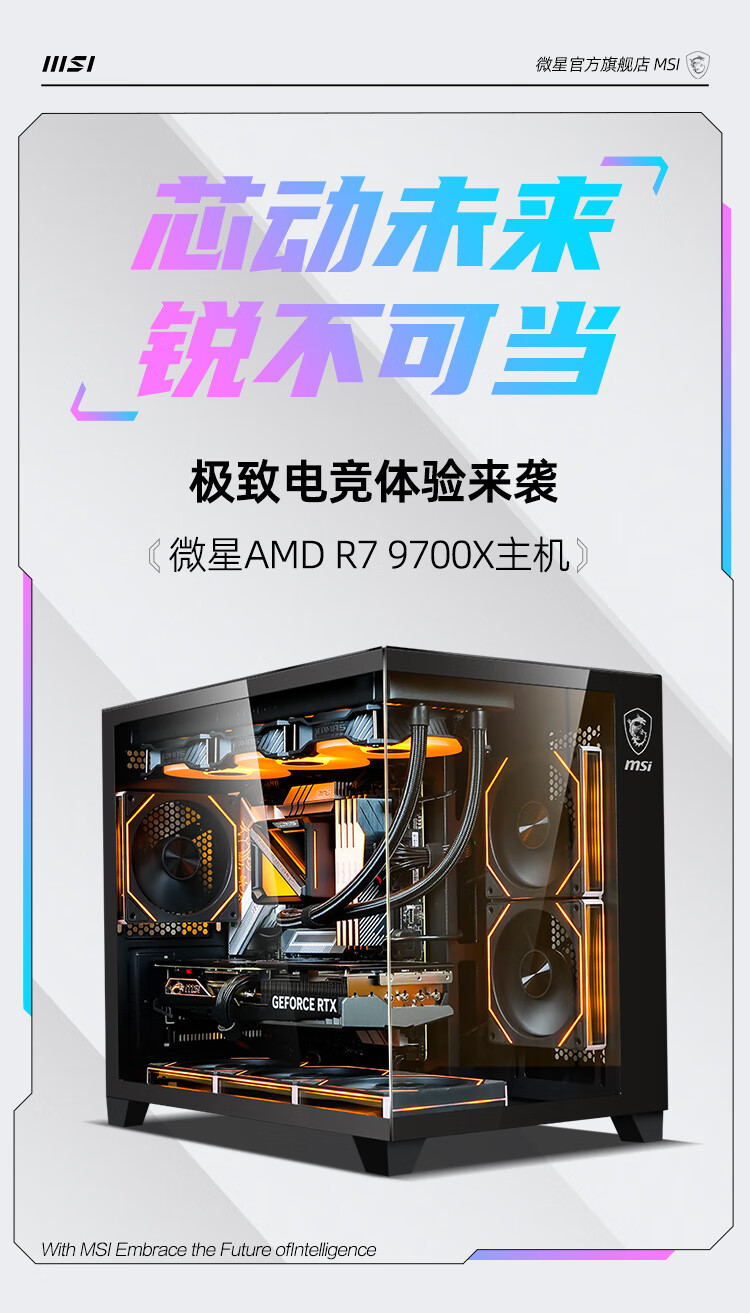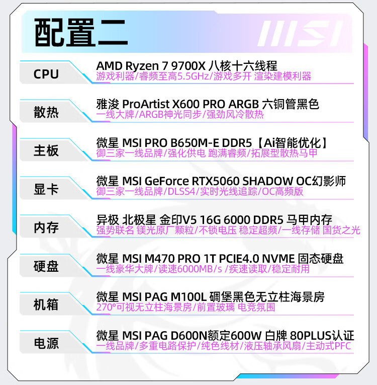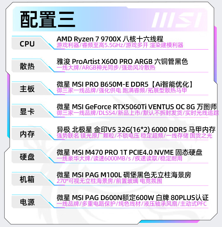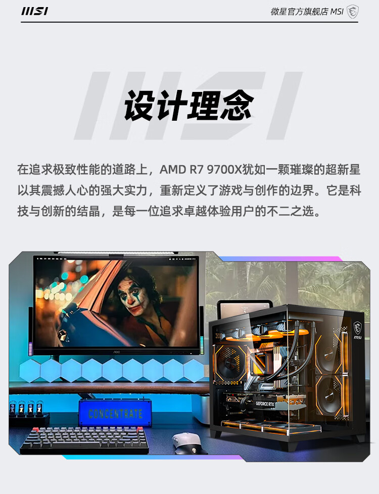 MSI AMD Ryzen R7 9700X/RTX5060 graphics card assembly computer e-sports Black Myth Wukong game high-end desktop AI high-definition design rendering host DIY complete machine R7 9700X+32G+1TB丨Configuration 1