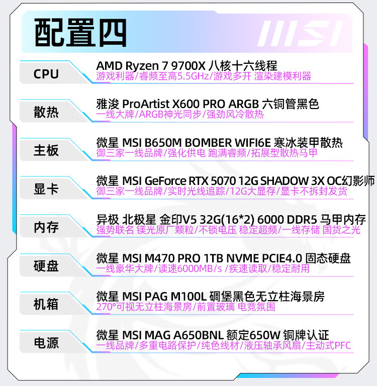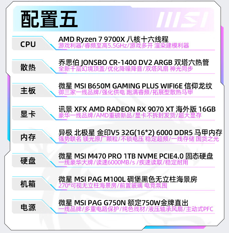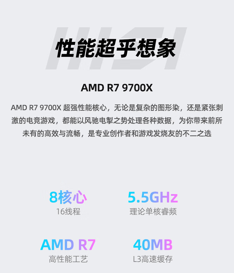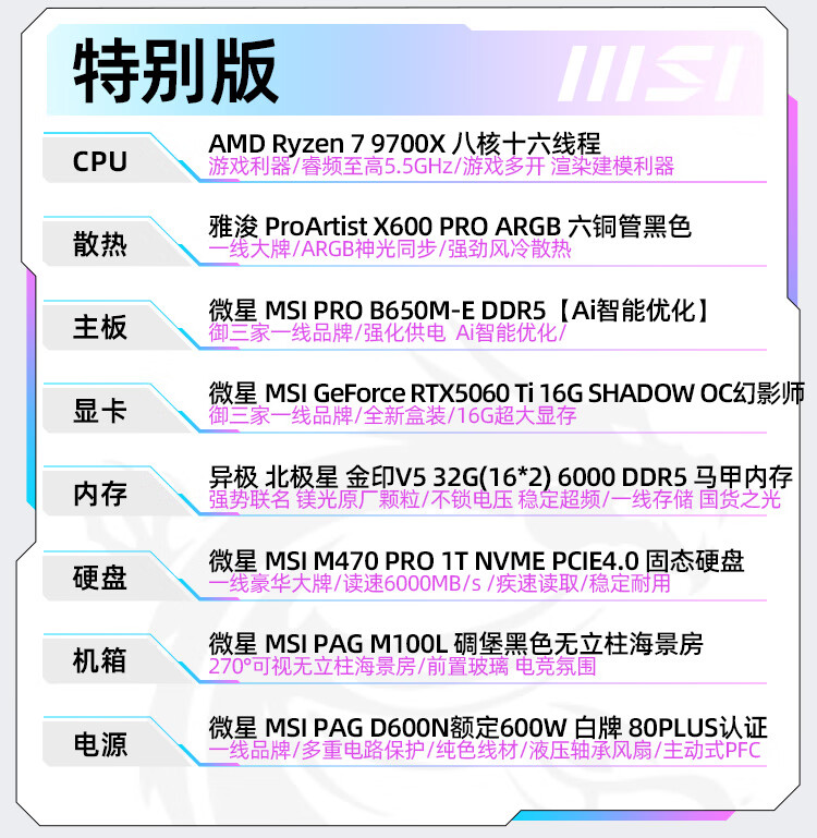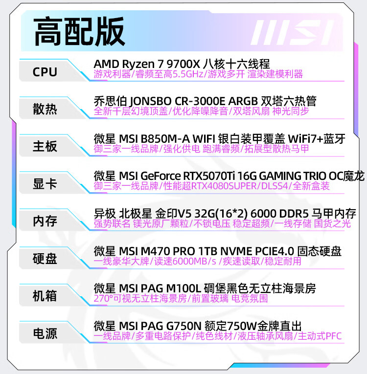 MSI AMD Ryzen R7 9700X/RTX5060 graphics card assembly computer e-sports Black Myth Wukong game high-end desktop AI high-definition design rendering host DIY complete machine R7 9700X+32G+1TB丨Configuration 1