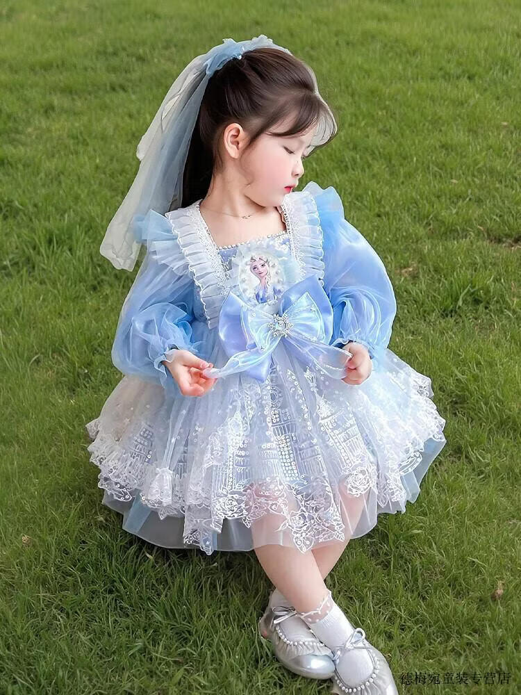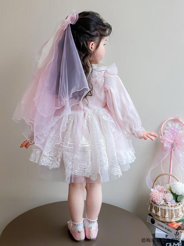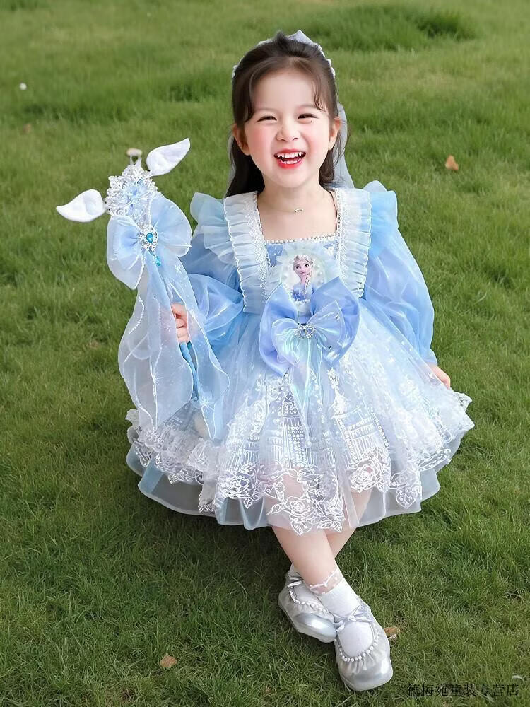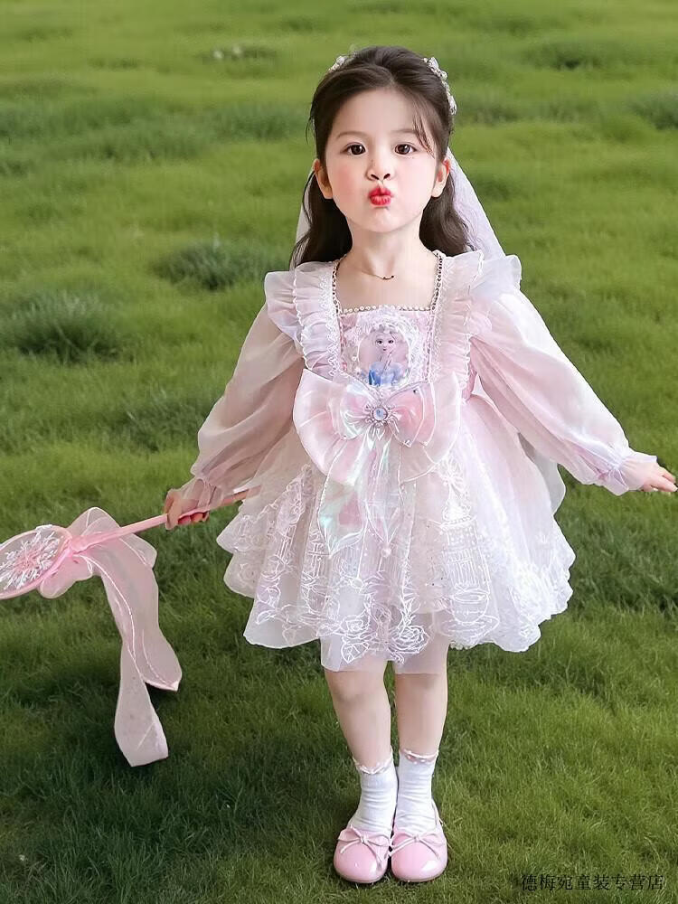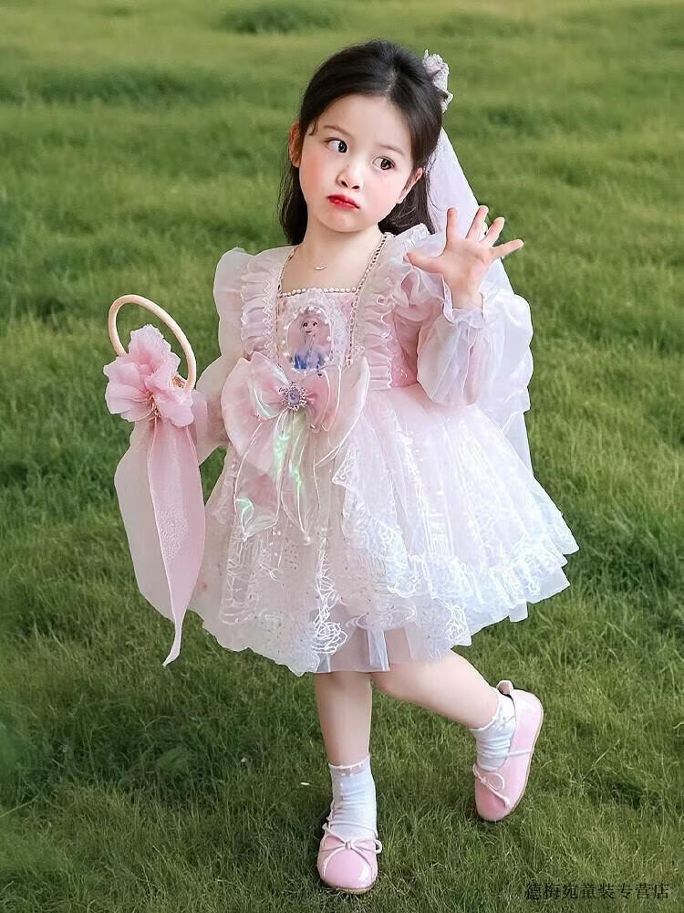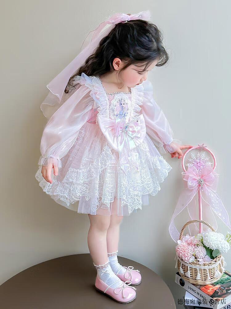 G.duck Elsa Princess Dress Children's Dress Spring and Autumn 2026 New Style Girls Lolita Dress Baby Dress Pink Skirt 120 (recommended height 110cm 6-7 years old)