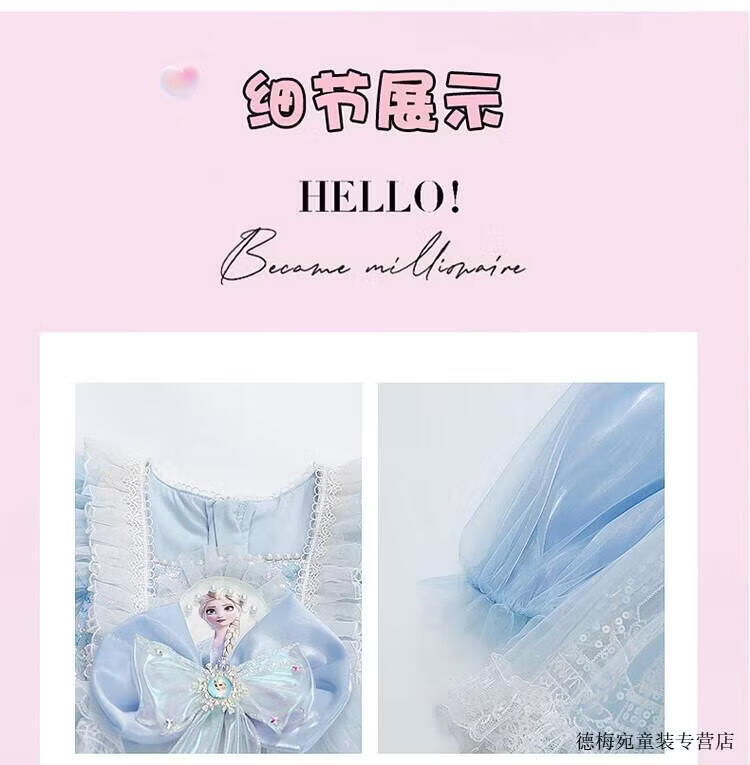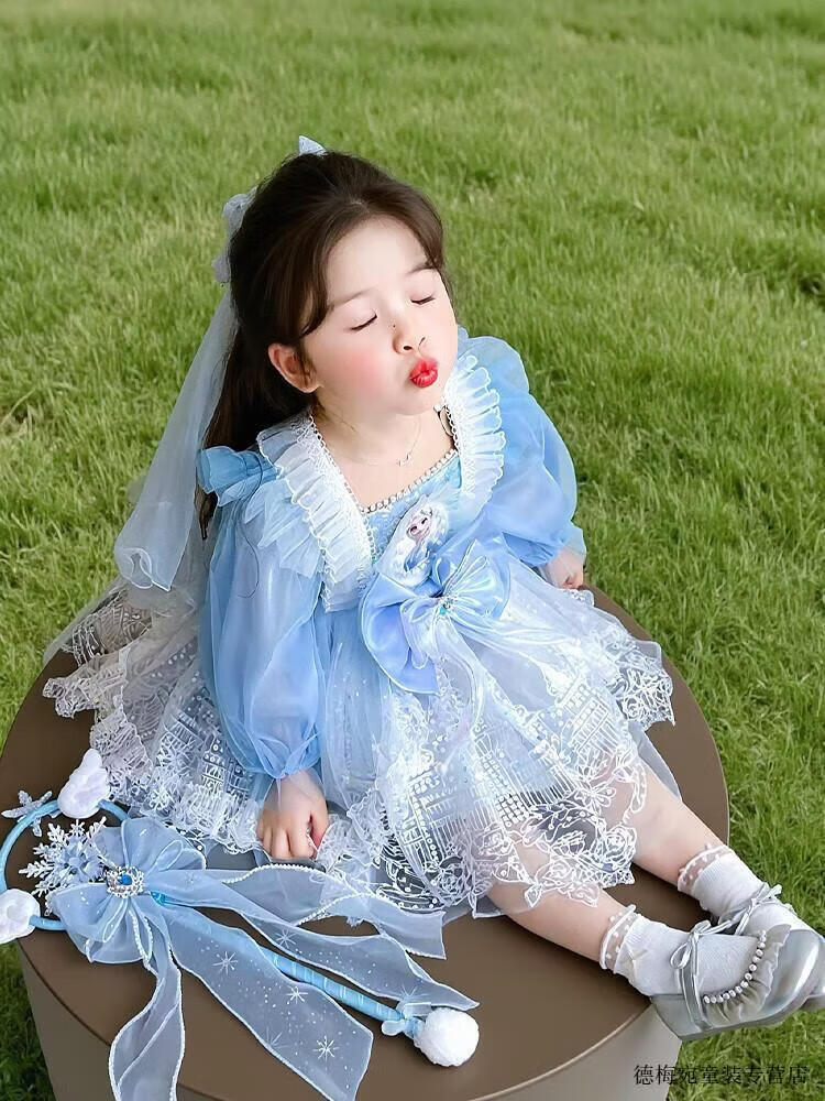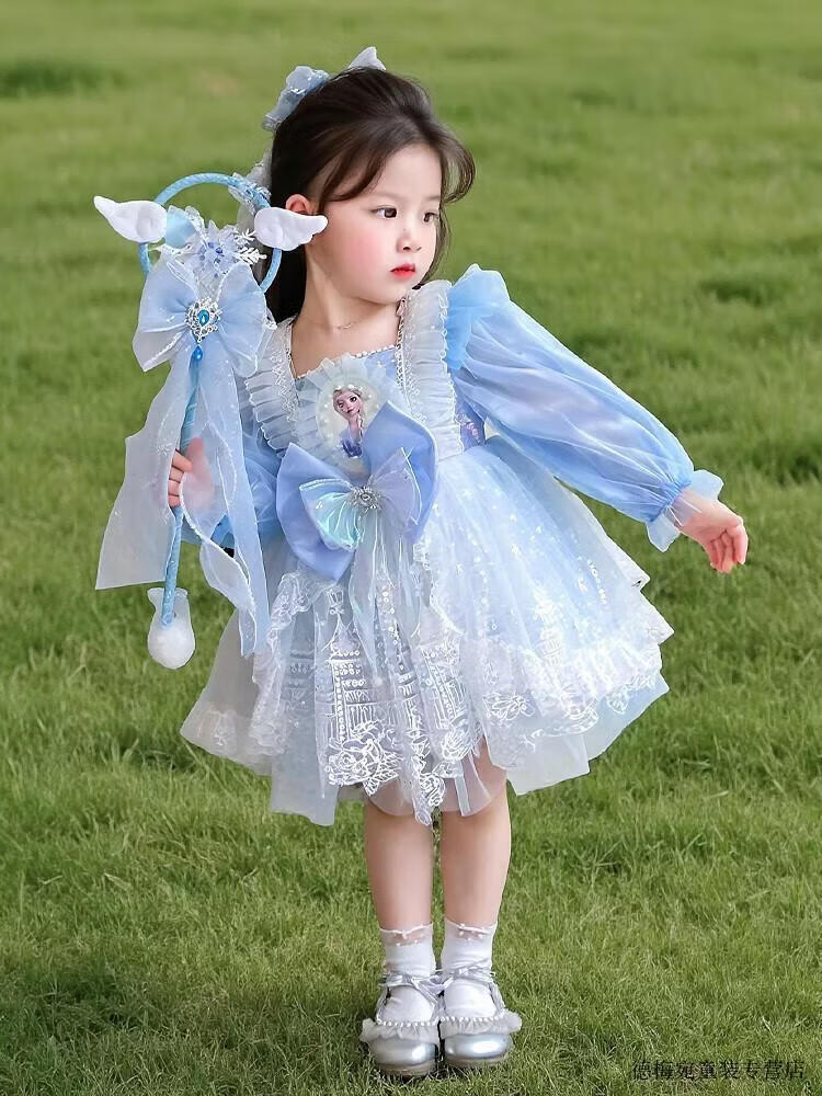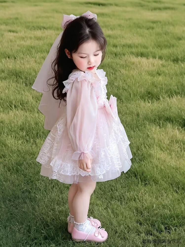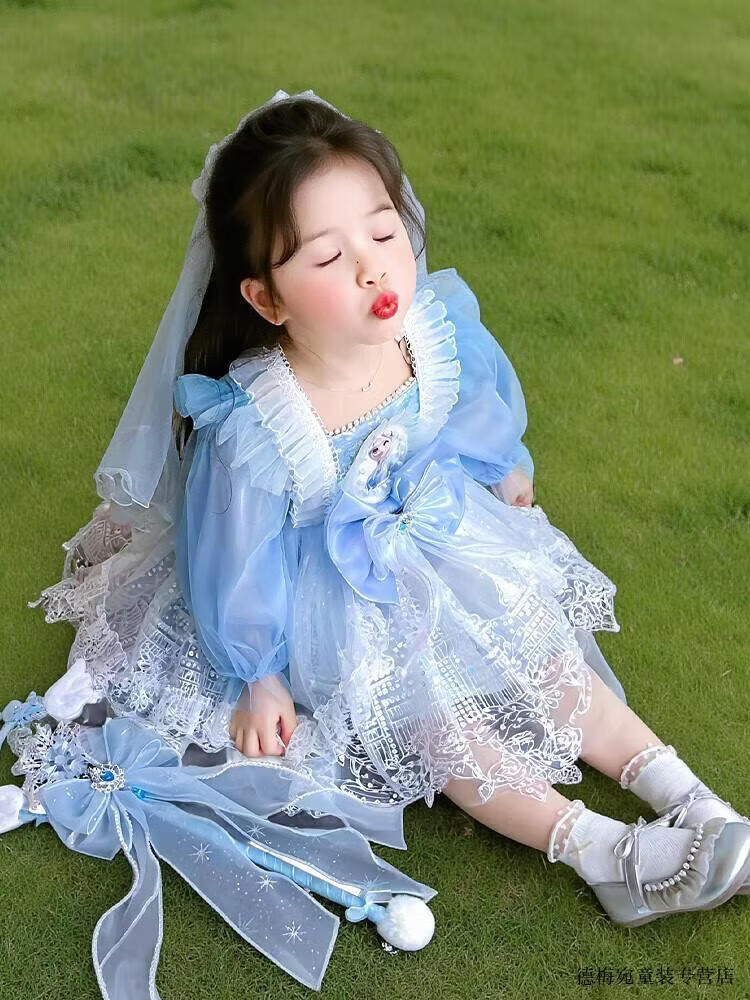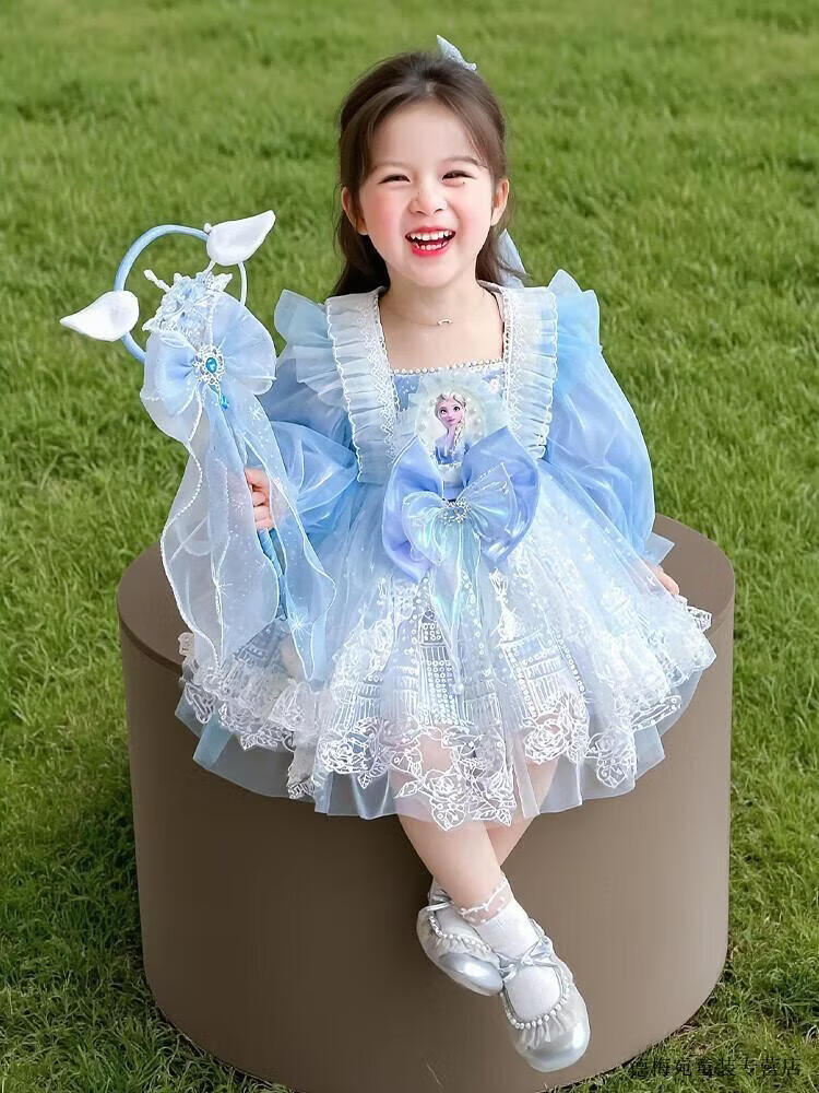 G.duck Elsa Princess Dress Children's Dress Spring and Autumn 2026 New Style Girls Lolita Dress Baby Dress Pink Skirt 120 (recommended height 110cm 6-7 years old)