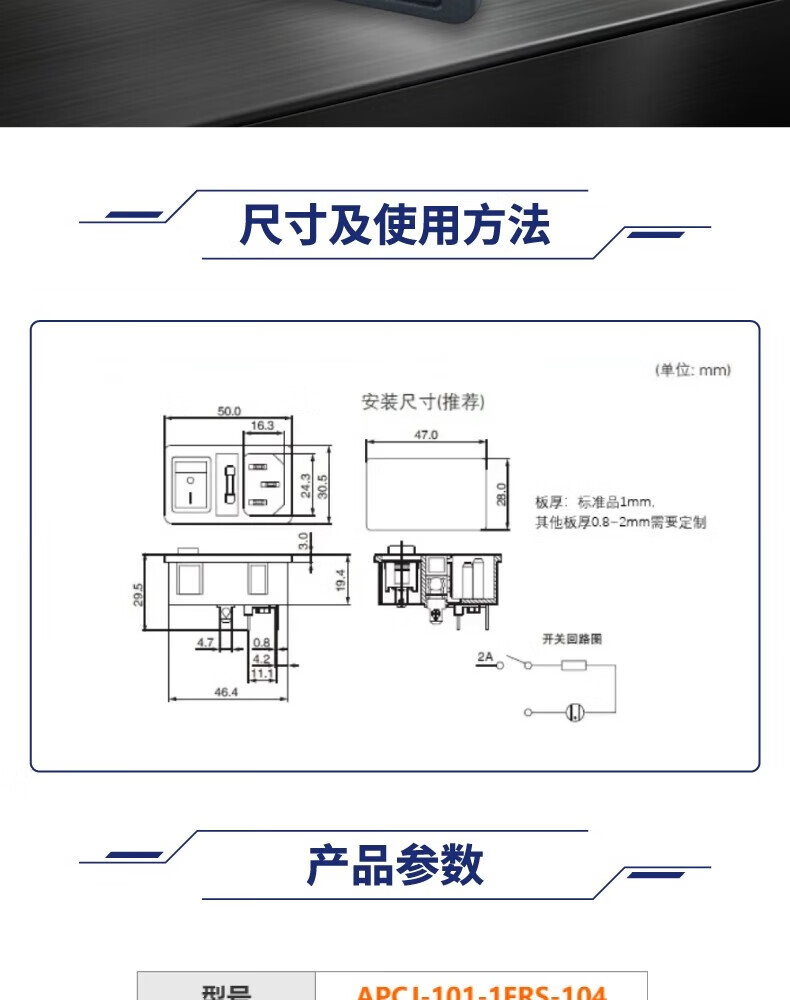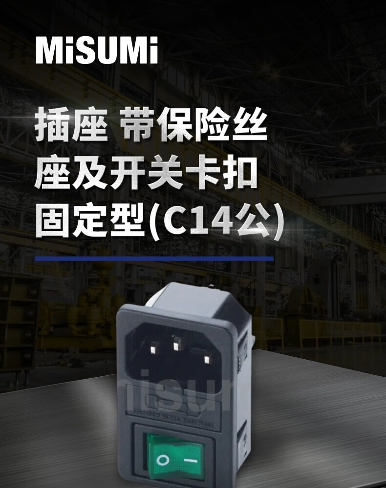 Standard product MISUMI socket panel mounting type with fuse holder and switch buckle fixed type (C14 male) MISUMI APCJ-101-1FRS-104