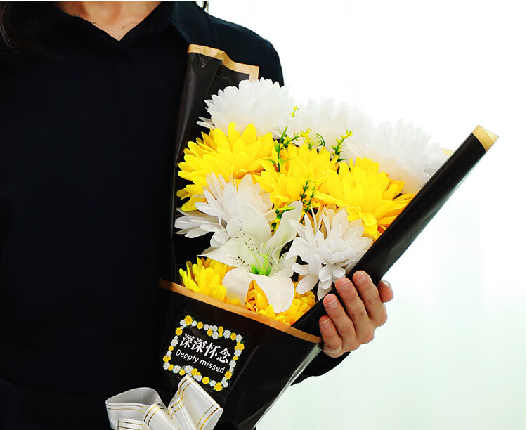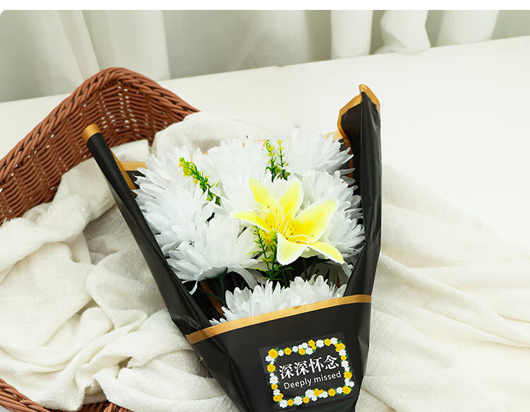 Zi Jiafu artificial flower Qingming Festival tombstone fake flower sacrifice fake chrysanthemum memorial bouquet plastic flower grave sweeping hand bouquet z white