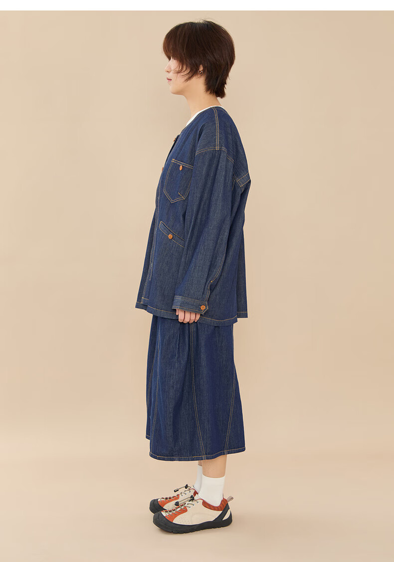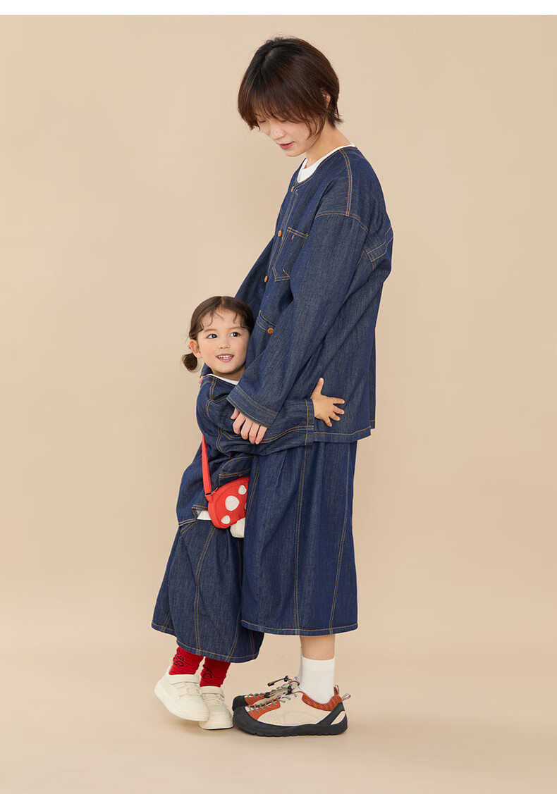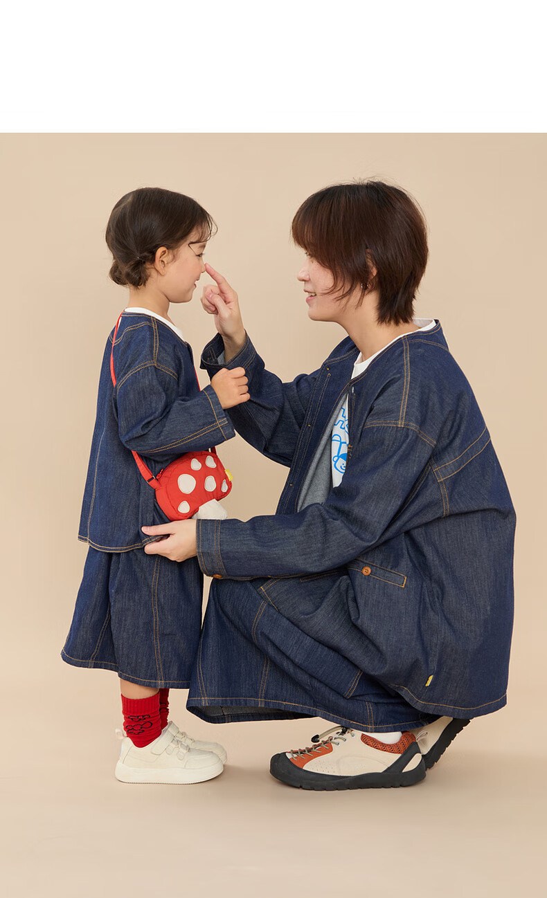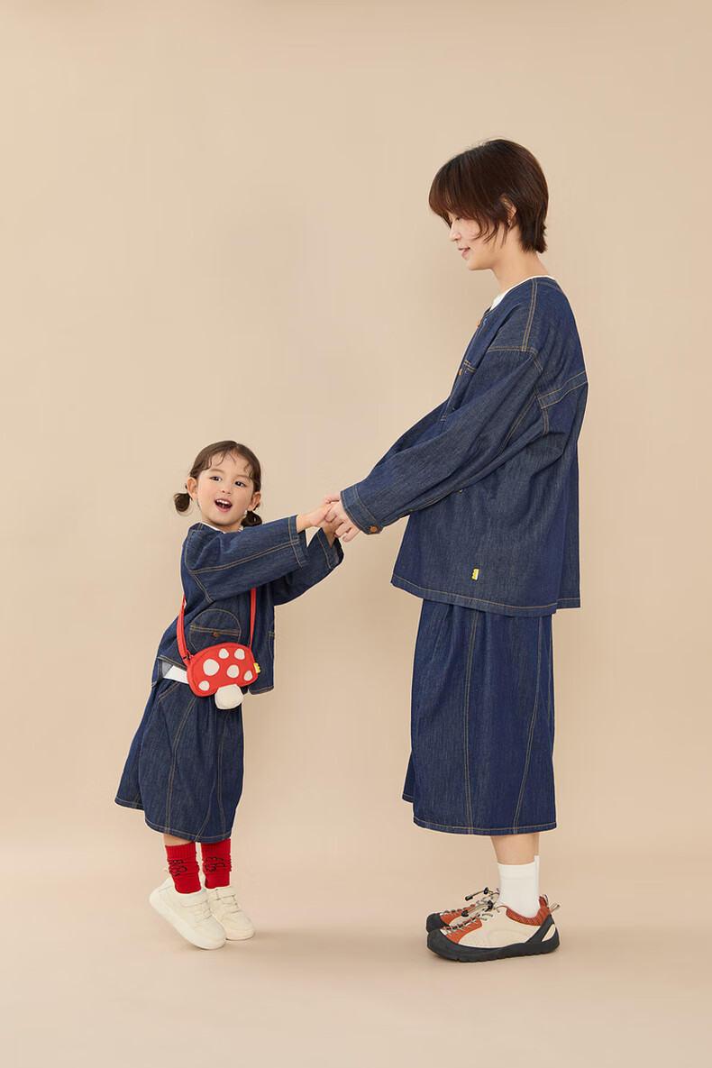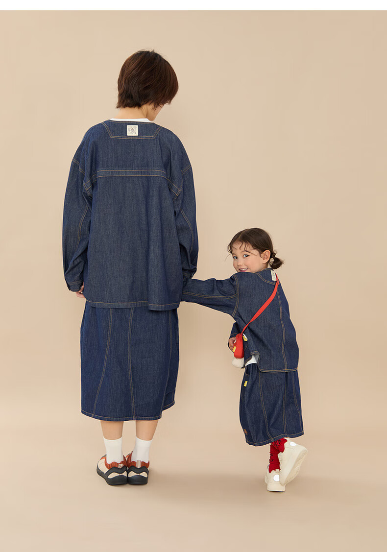 Papa climbing spring children's coat skirt parent-child wear soft denim casual and versatile navy blue skirt-adult 160