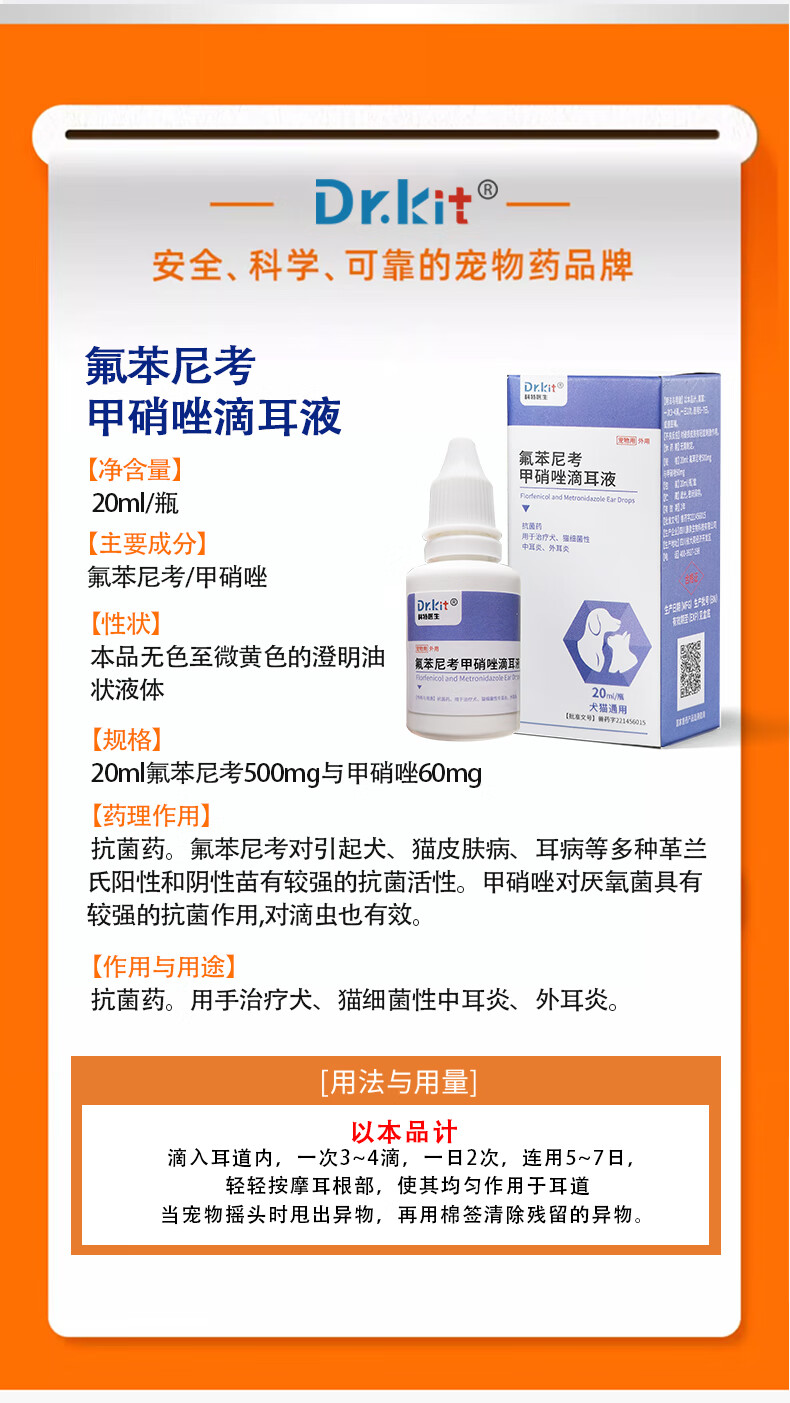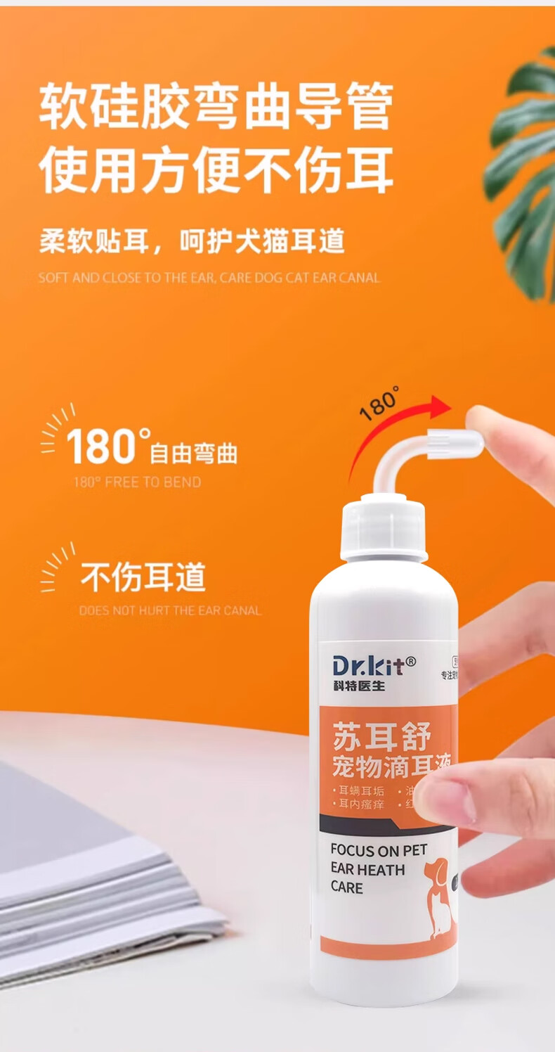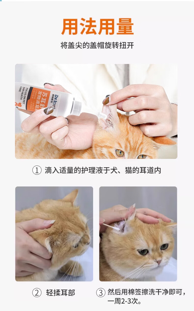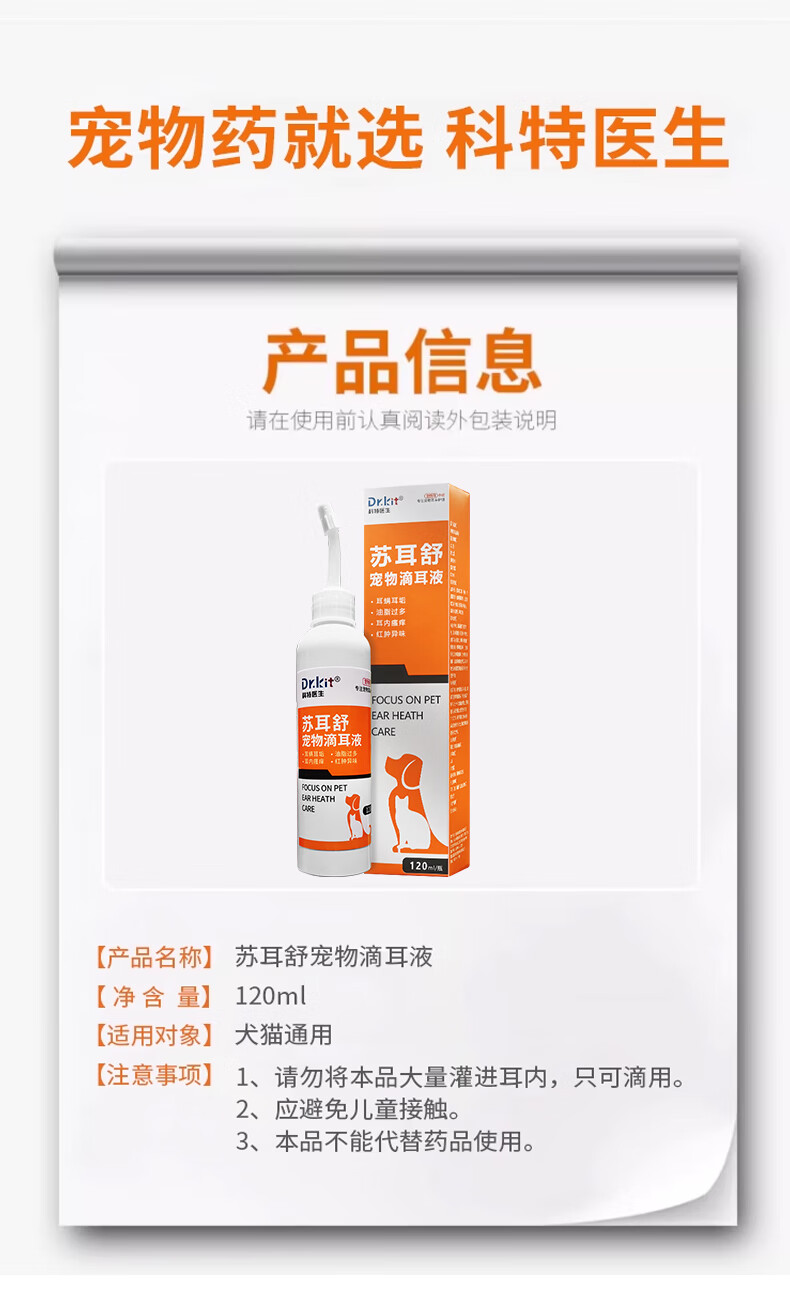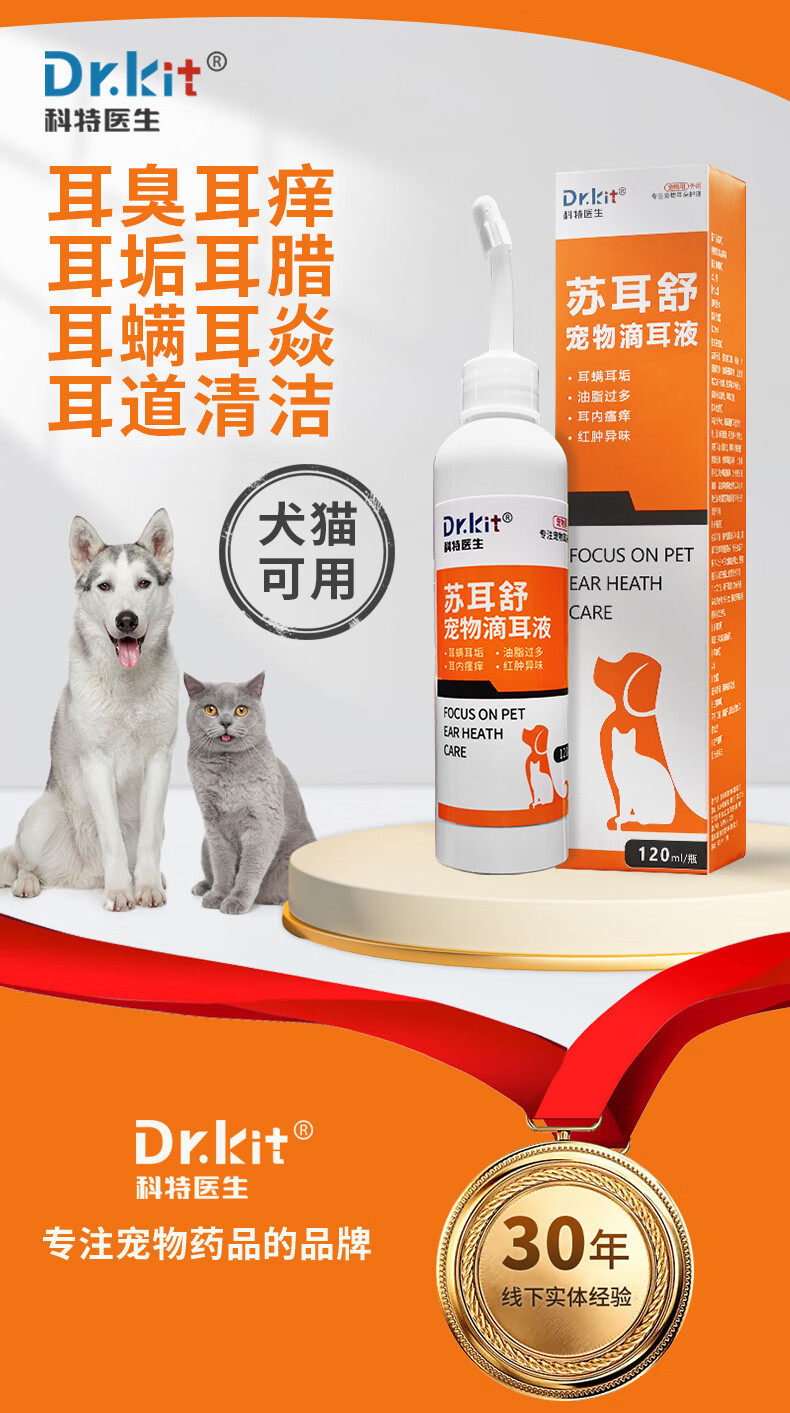 DR.KIT pet cat ear cleaning liquid, ear mite ear drops for dogs, otitis sterilization, anti-itching, mite removal, Malassezia ear cleansing liquid, 1 bottle of Suershu + 1 box of nystatin (to remove ear mites and Malassezia)