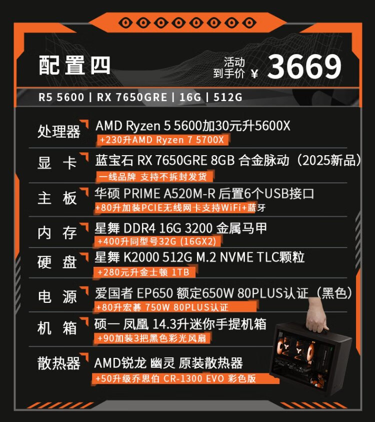 AMD R5 5600/RX7650GRE/6500XT Mini Host ITX Complete Portable DIY Computer Assembly Machine Desktop Mini Office Desktop AI PC Computer Configuration 2 | R5 5600/RX6500XT