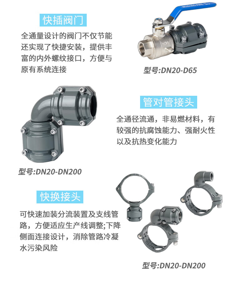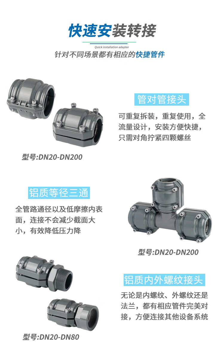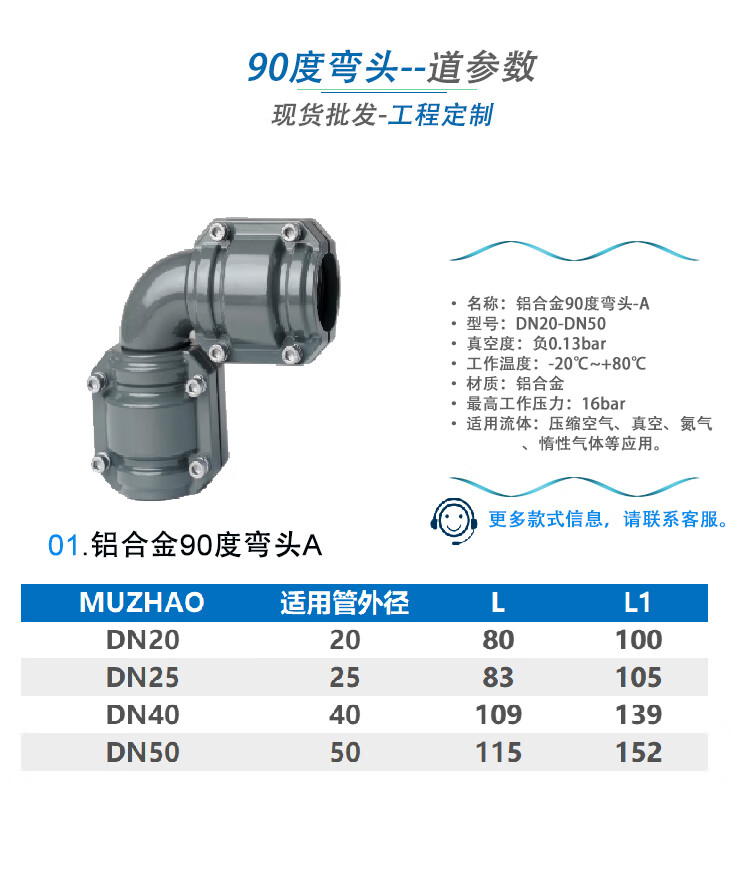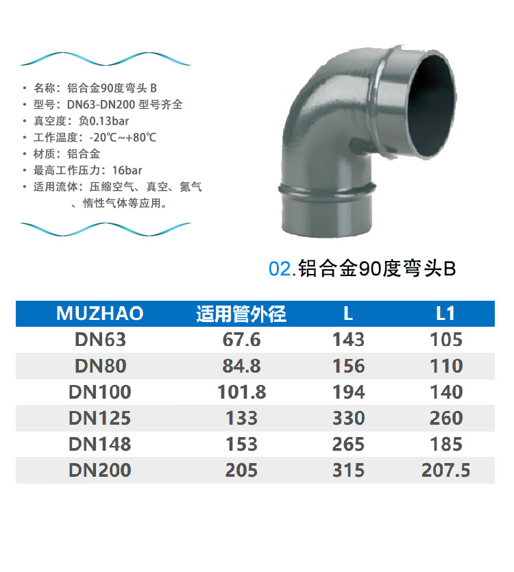 Blue anodized aluminum alloy compressed air pipe elbow energy-saving pipe joint super pipe elbow assembly DN40 aluminum alloy