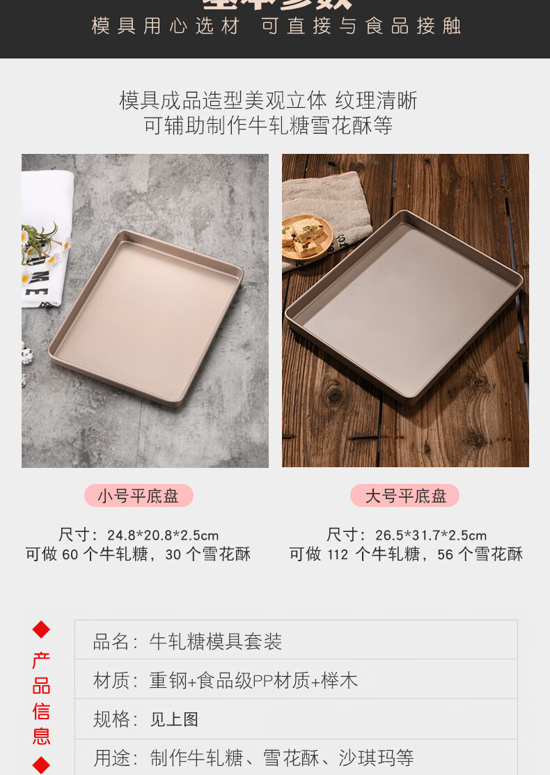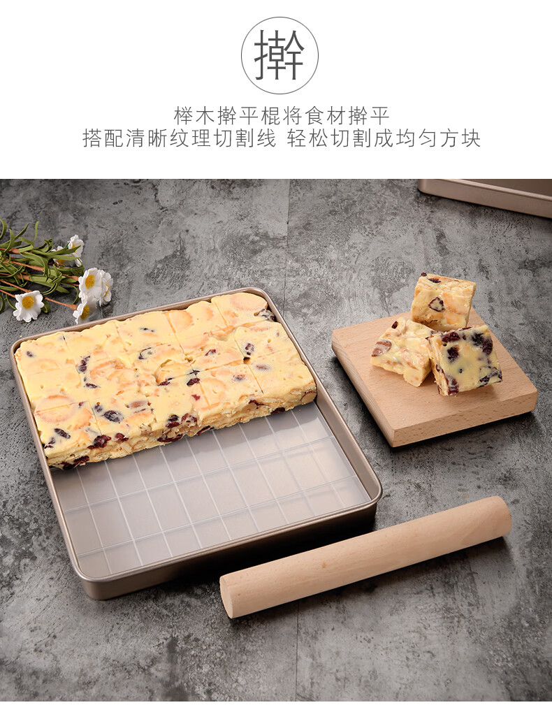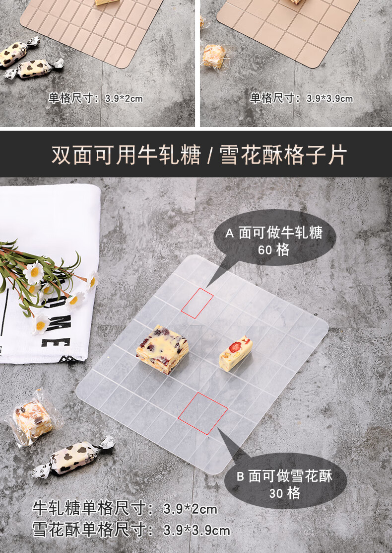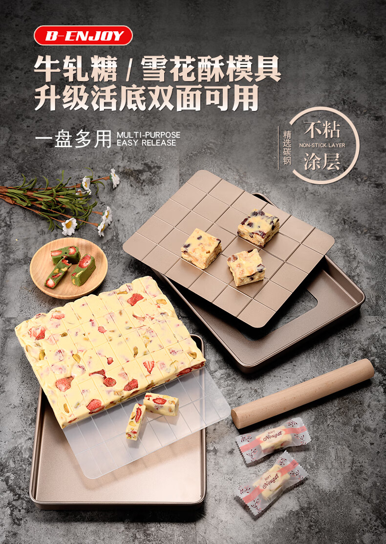 Enjoy Snowflake Crisp Mold Plate Toffee Nougat Grinding Tool Non-stick Biscuit Baking Pan Oven Baking Complete Tool Set (Rectangular) Large Nougat/Snowflake Crisp 4-piece Set
