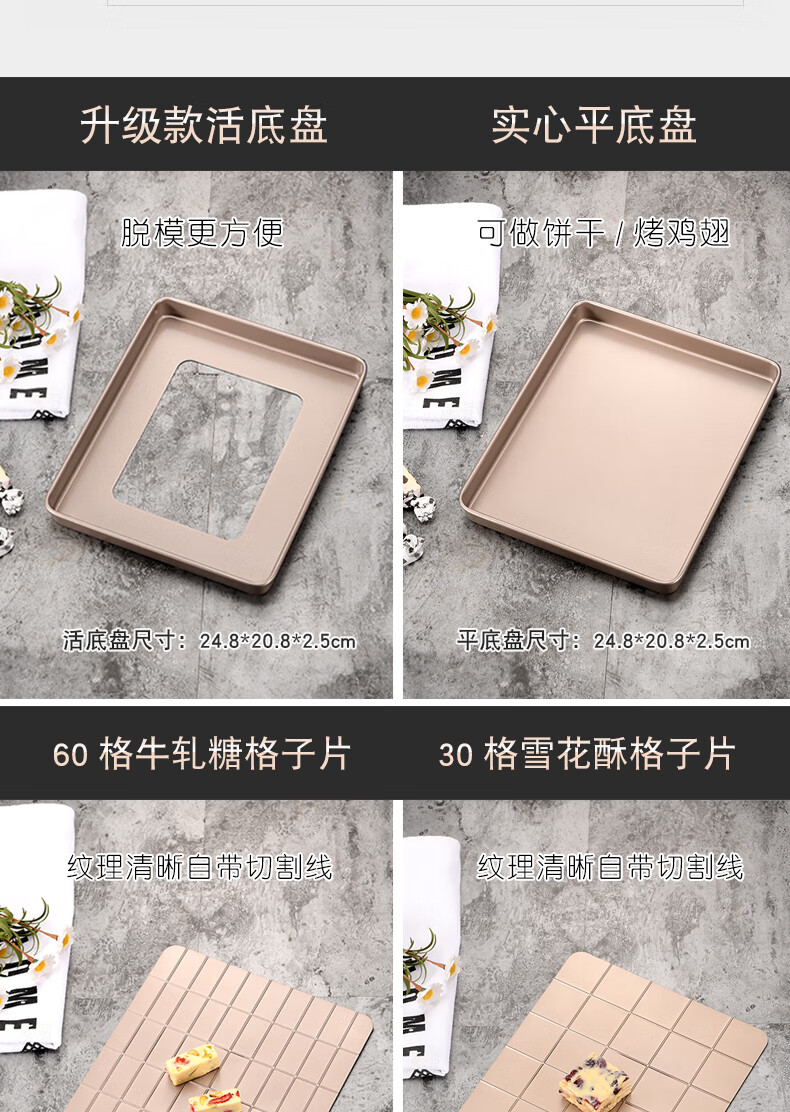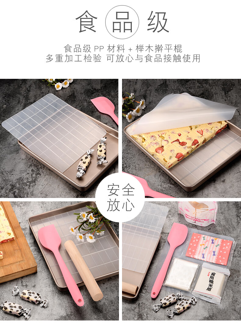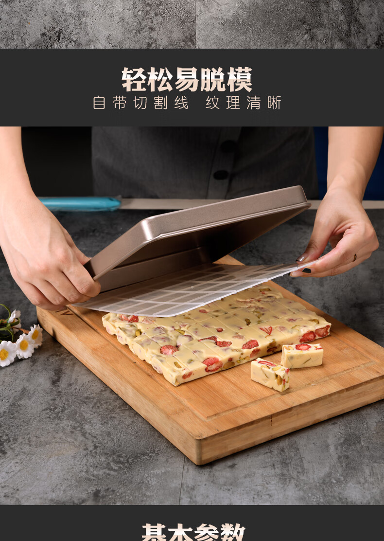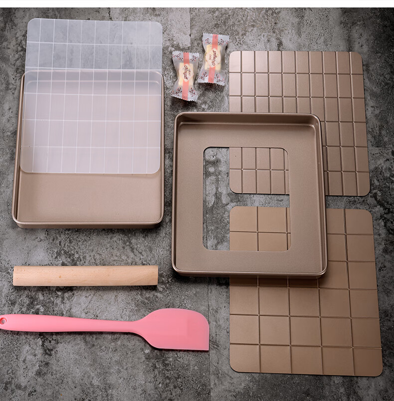 Enjoy Snowflake Crisp Mold Plate Toffee Nougat Grinding Tool Non-stick Biscuit Baking Pan Oven Baking Complete Tool Set (Rectangular) Large Nougat/Snowflake Crisp 4-piece Set
