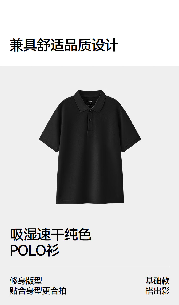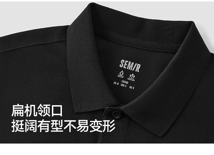 Semir POLO shirt for men in summer, moisture-absorbent and quick-drying, simple solid color short-sleeved T-shirt, slim fit top, versatile for commuting, black 90001 M