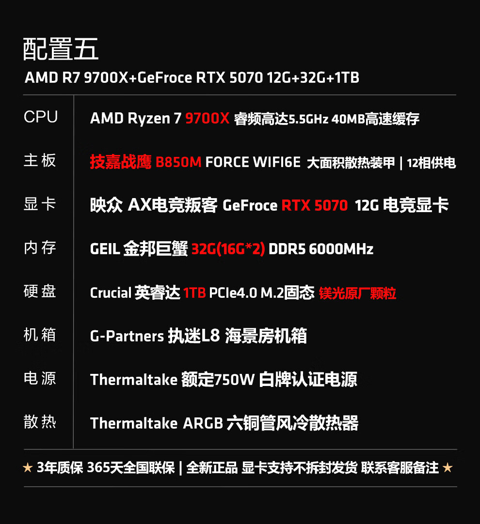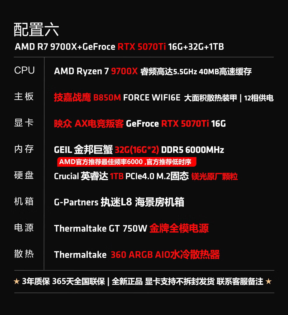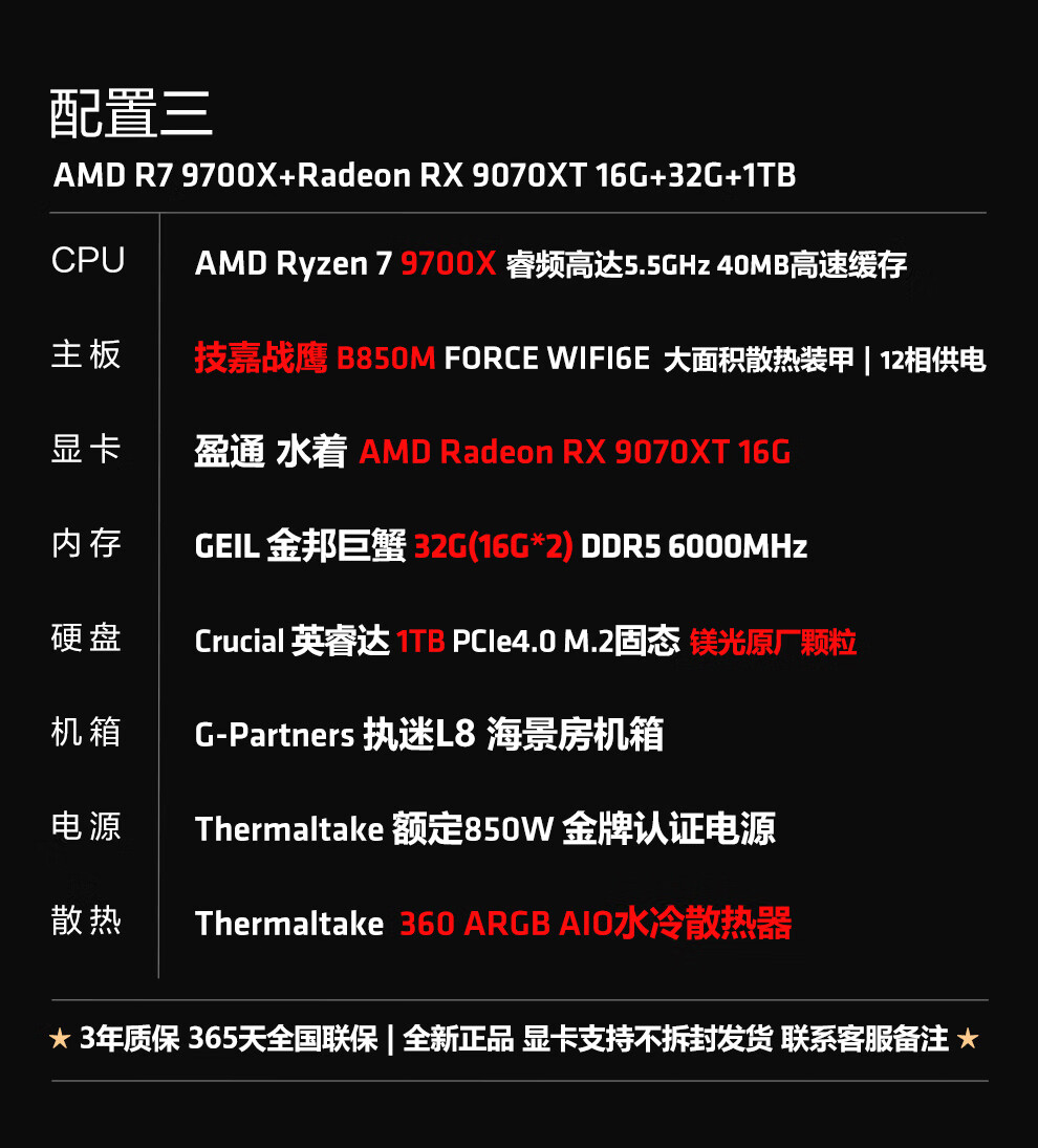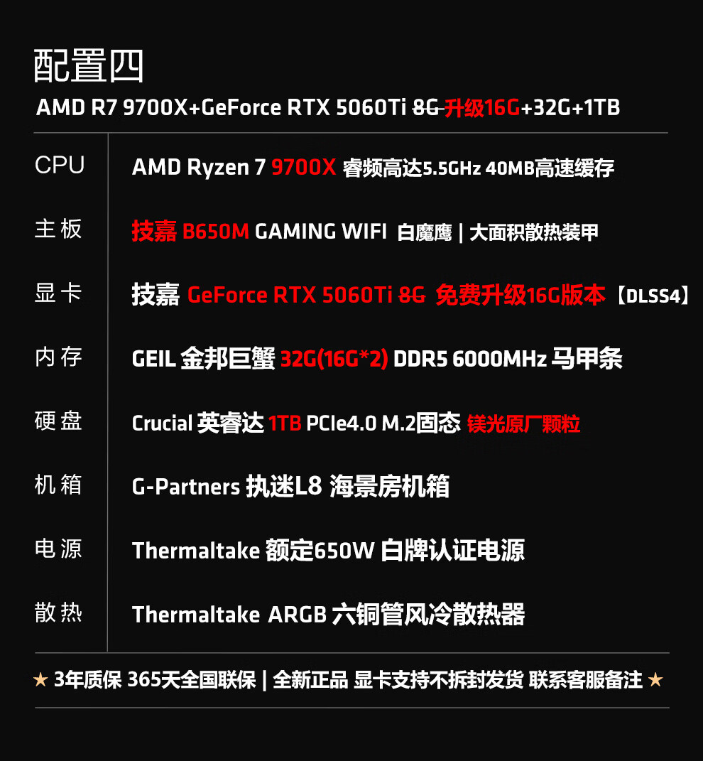 Ningmei AMD R7 9700X/RX9070XT/RTX5080 graphics card fever game deepseek desktop computer host design rendering DIY assembly computer assembly machine with four | 9700X+5060Ti16G