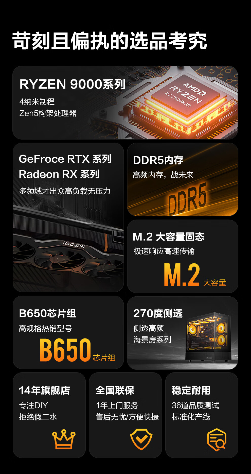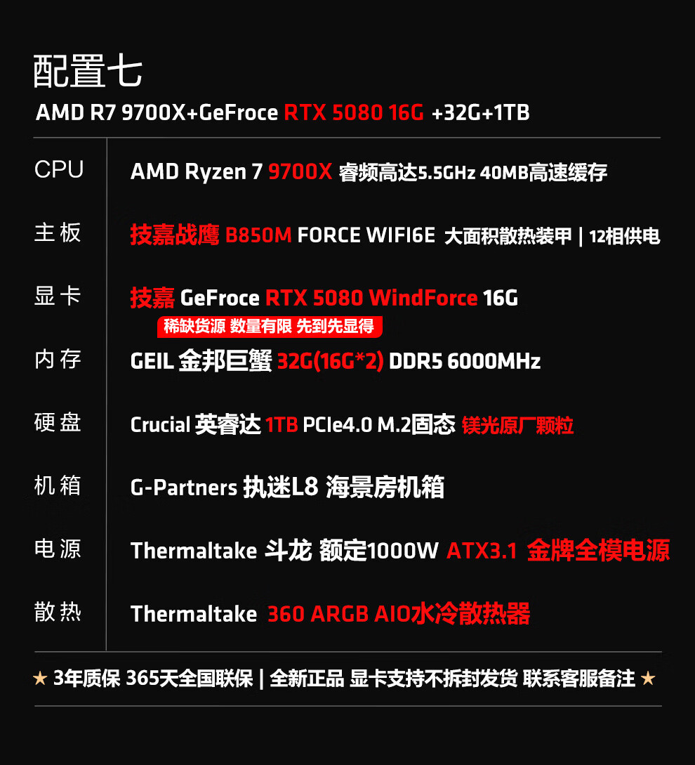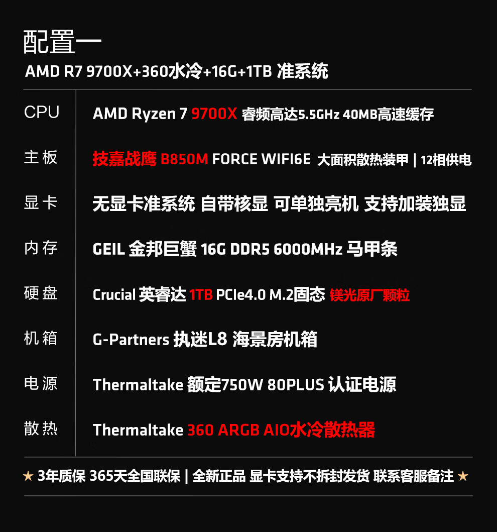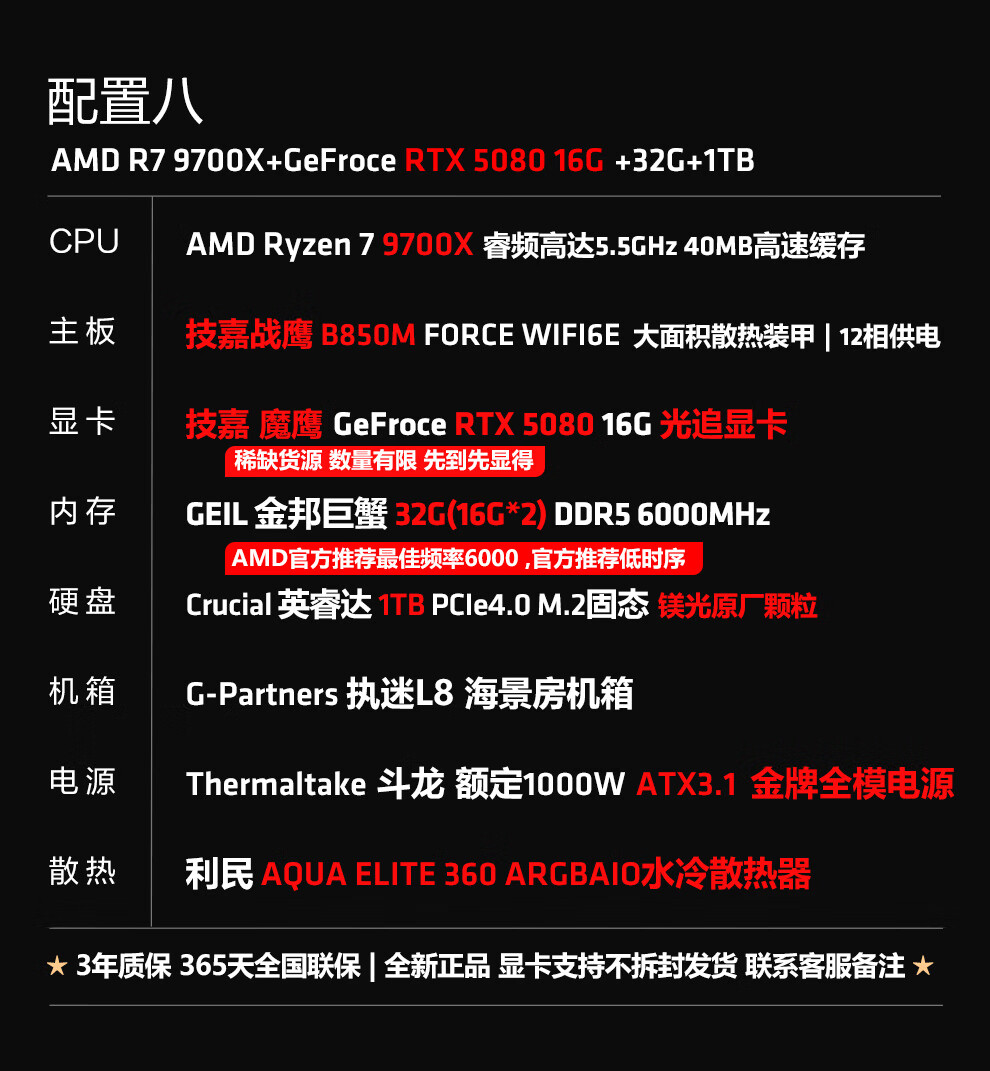 Ningmei AMD R7 9700X/RX9070XT/RTX5080 graphics card fever game deepseek desktop computer host design rendering DIY assembly computer assembly machine with four | 9700X+5060Ti16G