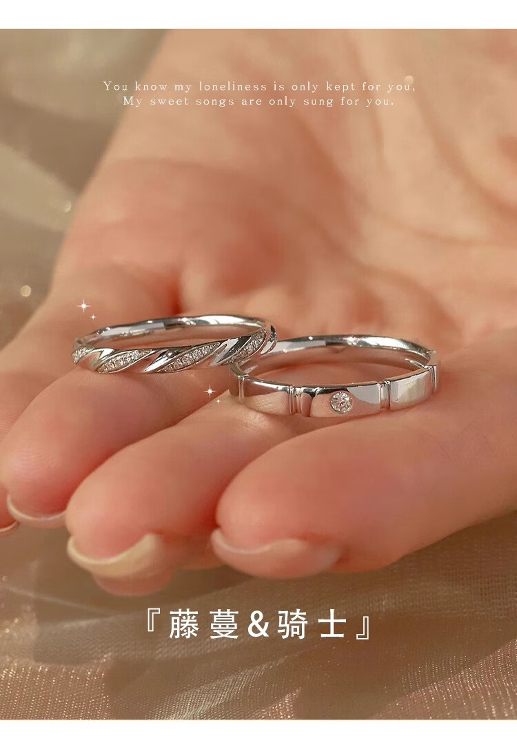 MZMZ Platinum Couple Ring PT950 Platinum Knot Engagement Diamond Ring Double Eleven Birthday Gift for Girlfriend and Wife Light Luxury-Vine Knight Live Pair of Rings