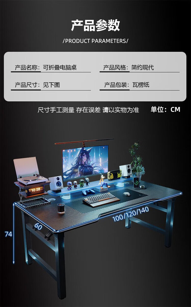 Xingkai Folding Desk Computer Desk Home Desk Esports Desk Game Table Long Table No Installation Office Study Desk BGZ765 No Installation Open and Use Black 120*60