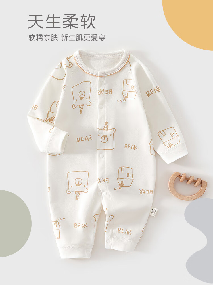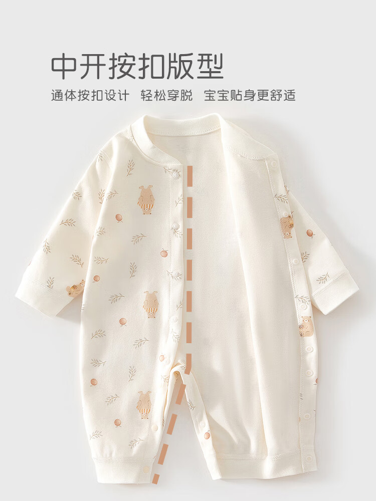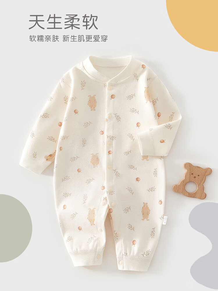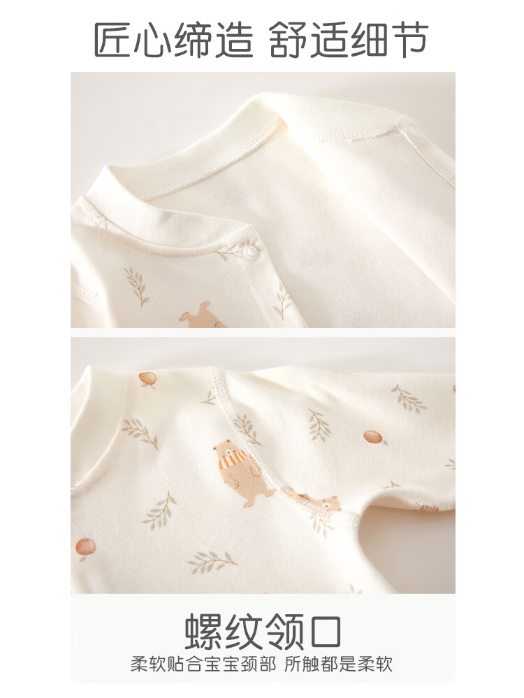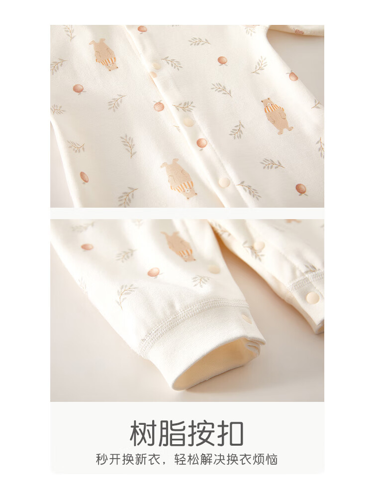 JOYNCLEON baby clothes, spring and autumn, male and female baby jumpsuits, newborn cotton woolen jumpers, pure cotton long-sleeved rompers, four seasons, leaf bear, 73cm, 6-9 months, weight 7.2-9kg