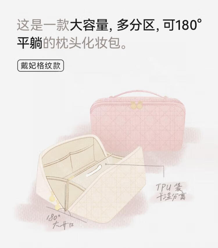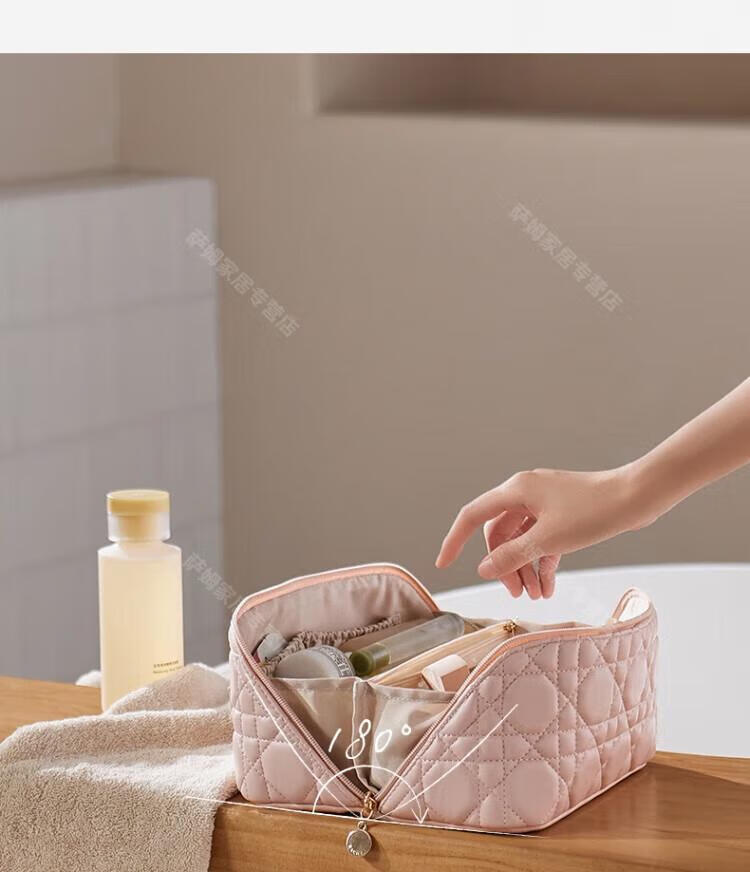 WCZ German cosmetic bag portable outing women 2025 new high-value storage bag large capacity high-end travel business trip spring powder - flat large opening 23.5*10.5*11cm large capacity partitioned storage