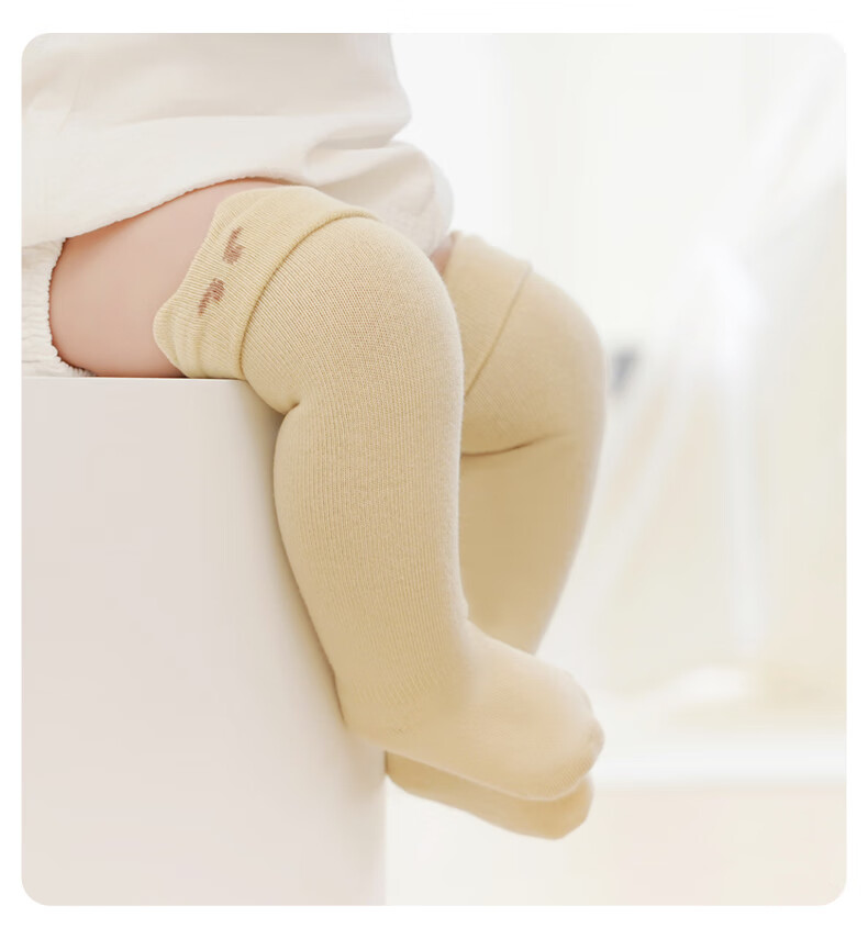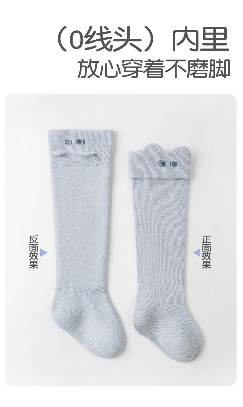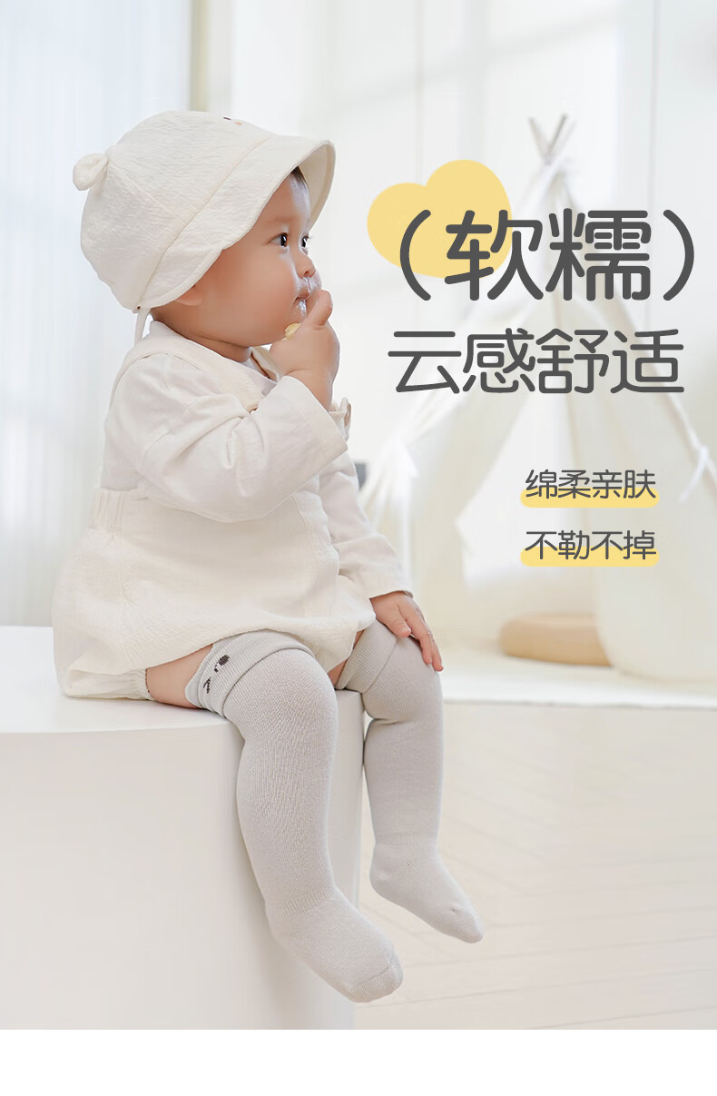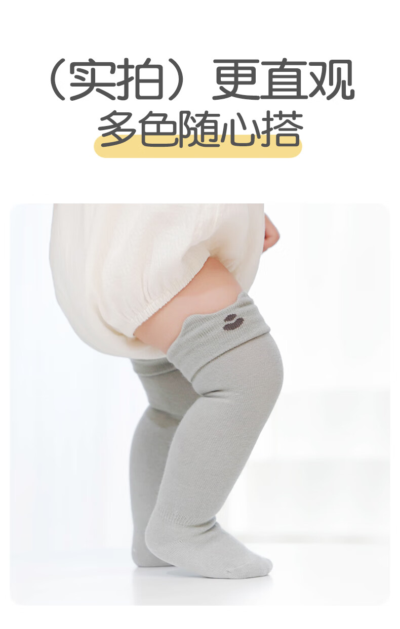 Growing baby stockings spring and autumn thin pure cotton antibacterial cotton socks newborn baby boneless knee-high socks light gray + blue + yellow 10A antibacterial boneless anti-pilling 3 pairs 0-1 years old S size (recommended foot length 8-10cm)
