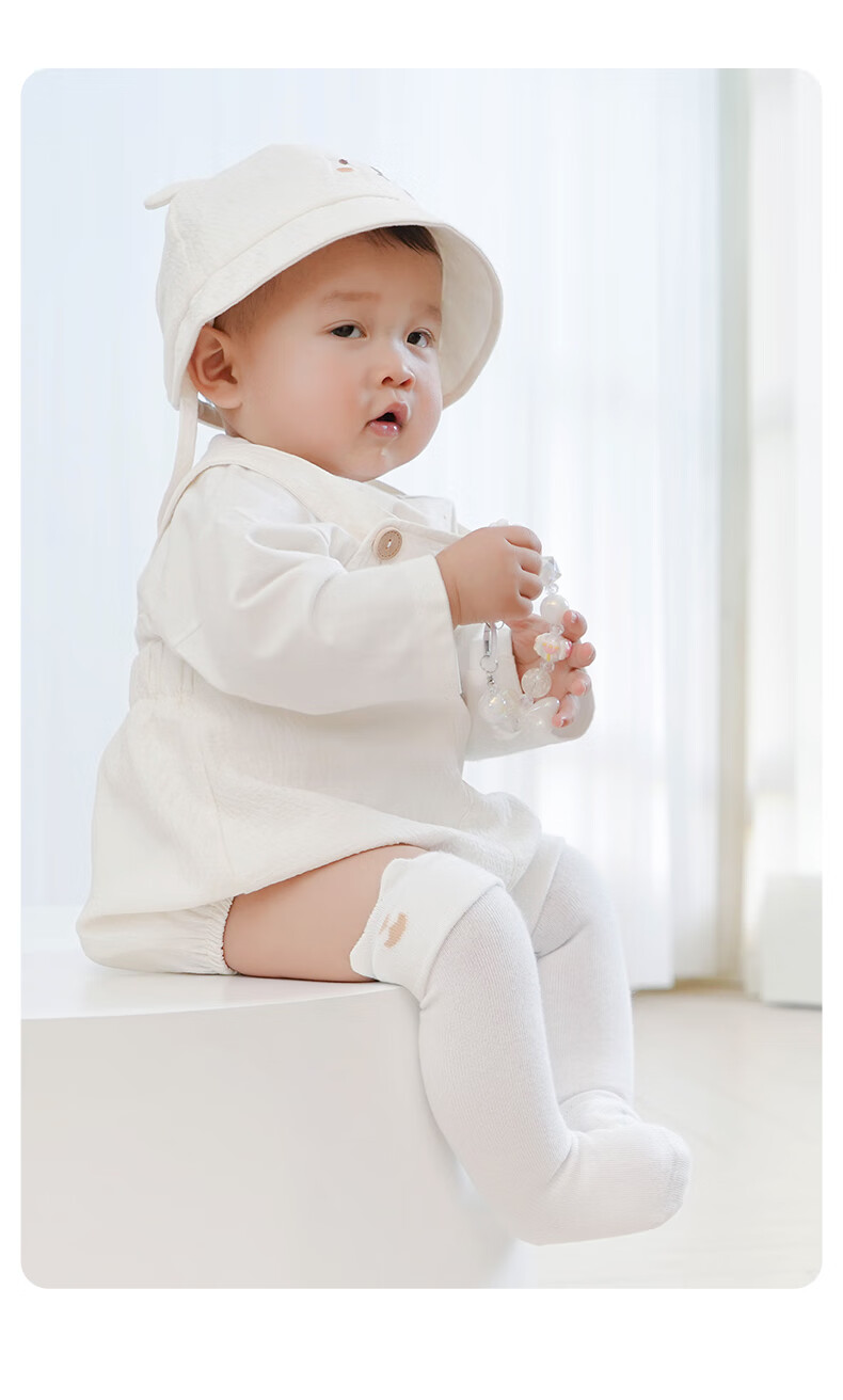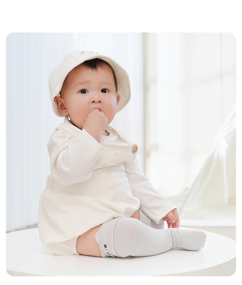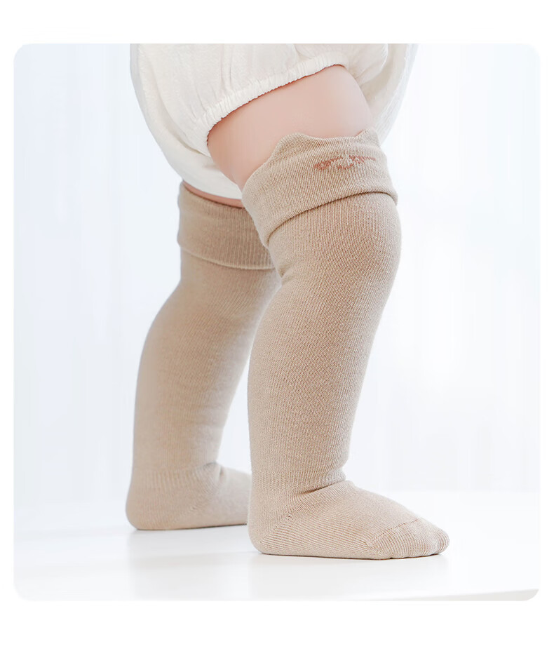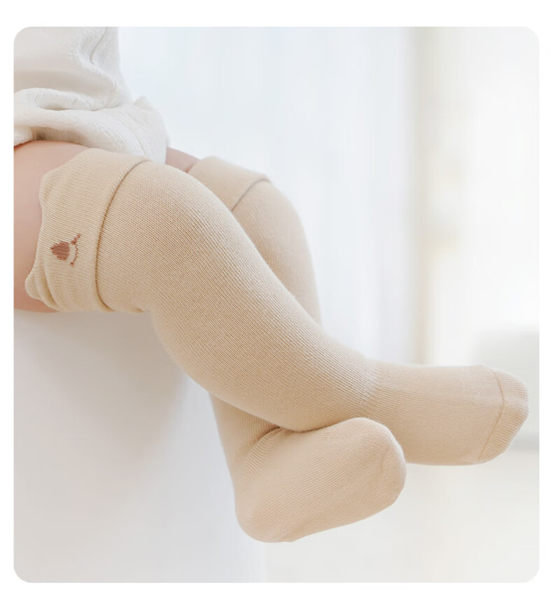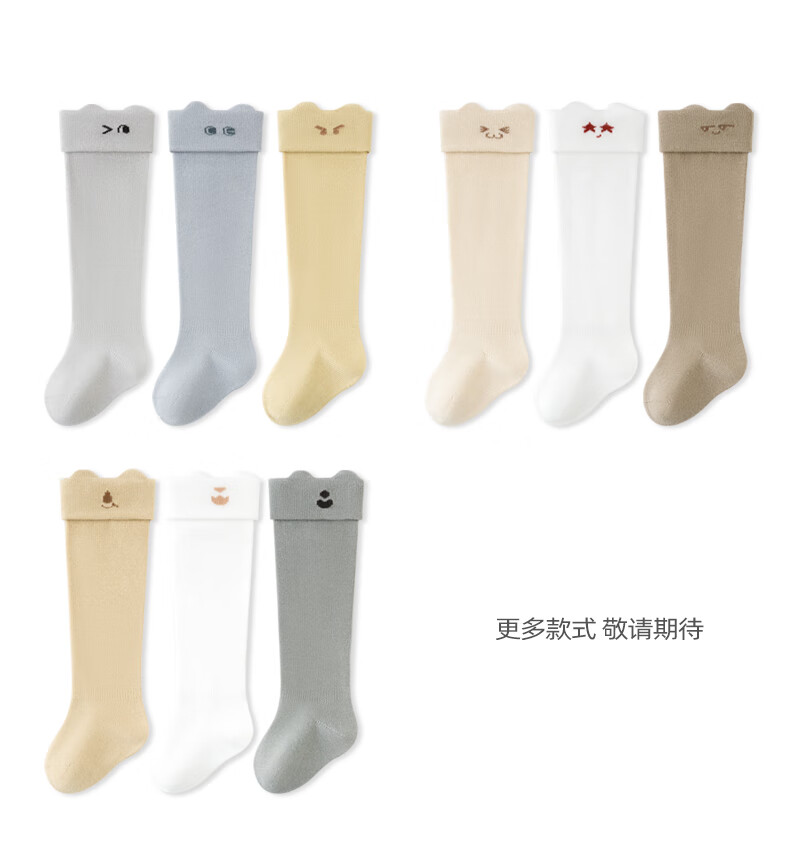Growing baby stockings spring and autumn thin pure cotton antibacterial cotton socks newborn baby boneless knee-high socks light gray + blue + yellow 10A antibacterial boneless anti-pilling 3 pairs 0-1 years old S size (recommended foot length 8-10cm)