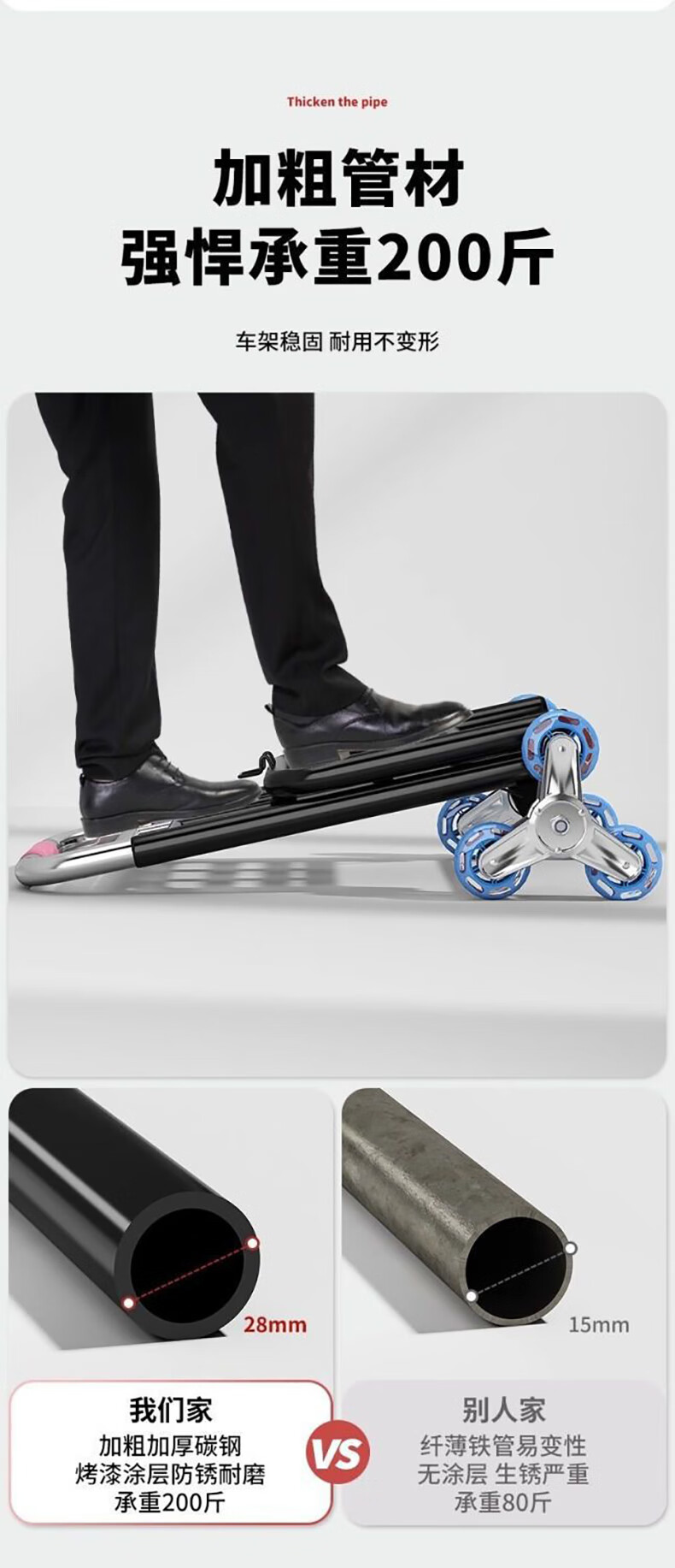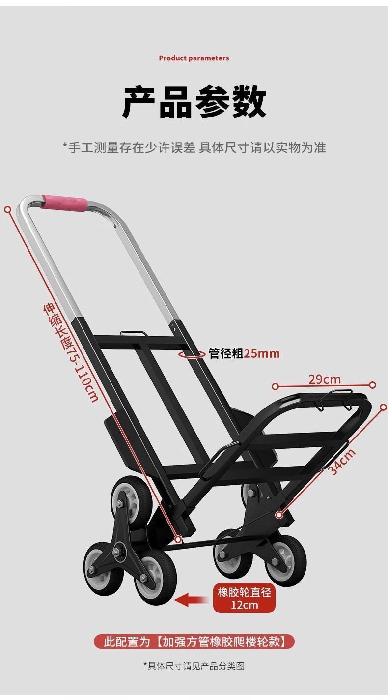 Seaside Stair Climbing Trolley Cart, Hand-pulled Luggage Up and Down Stairs, Portable Foldable Home Stair Climbing Artifact Small Trolley Medium Crystal Stair Climbing Wheel - Pipe Diameter 25-150 Jin Jin is equal to 0.5 kg