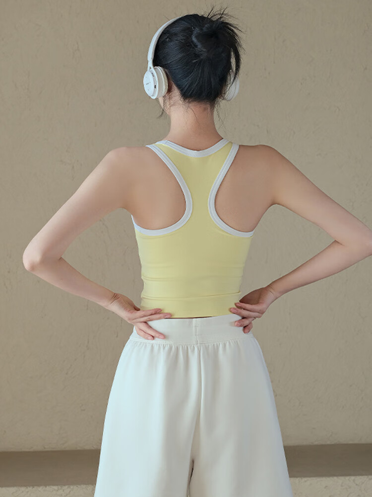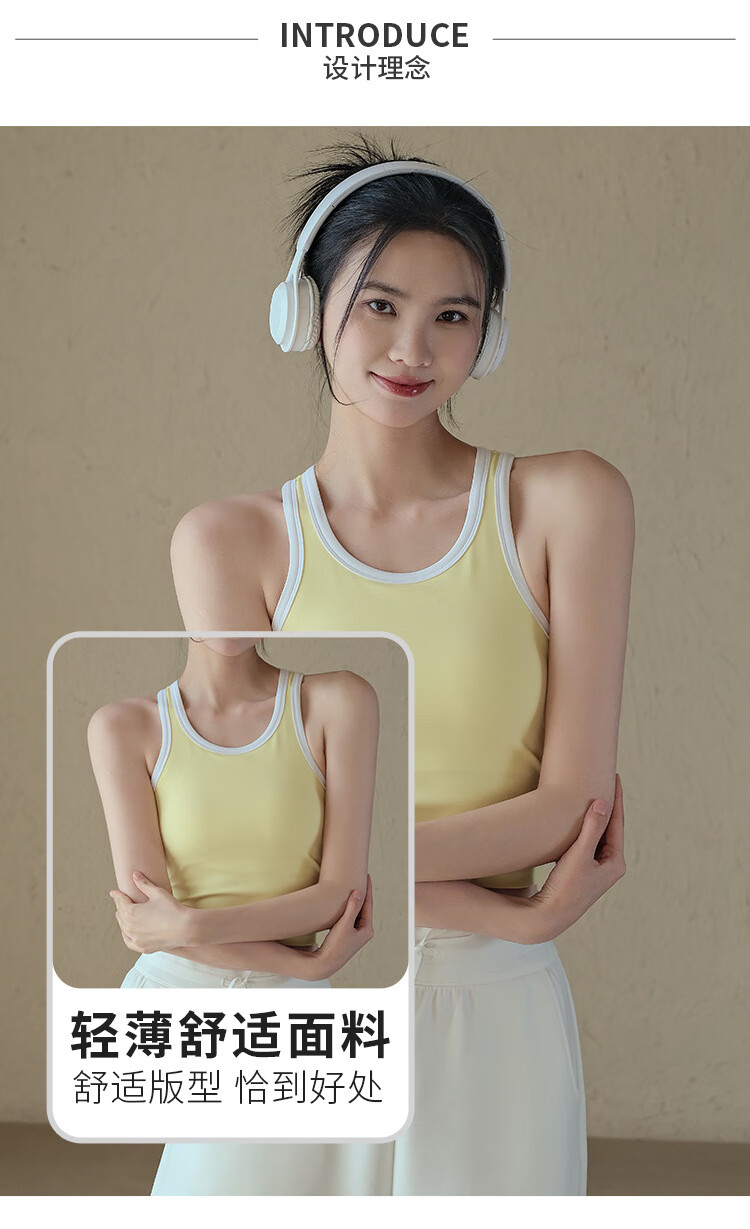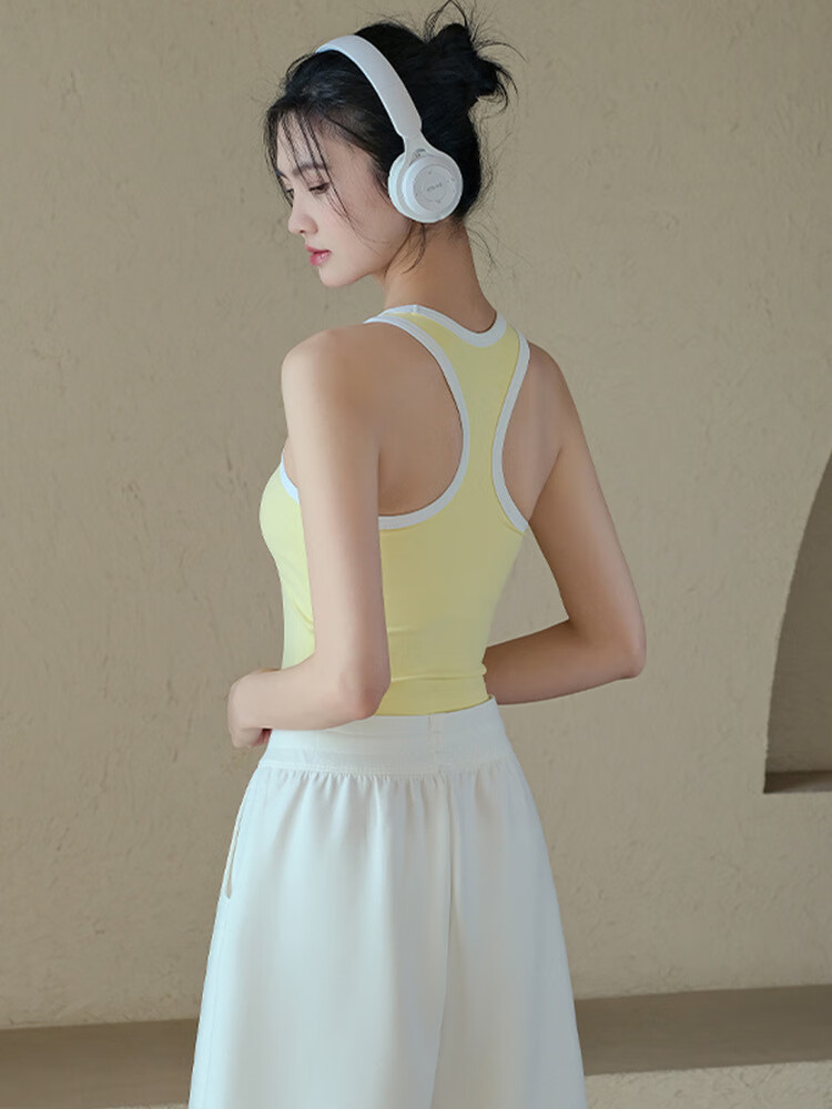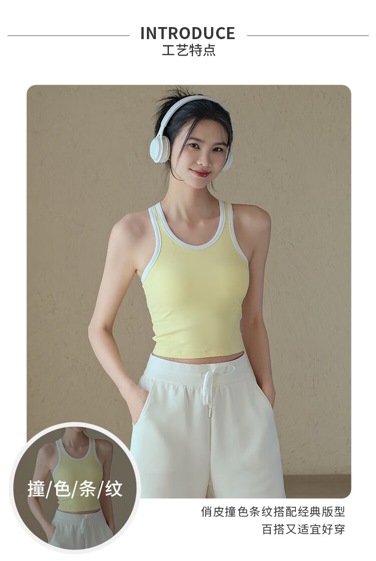 LULUUVTTOH Sports Bra Women's New Shockproof Breast Retracting Yoga Wear Vest Running Pilates Training Fitness Bra Women's Washable Yellow/White Removable Breast Pad M