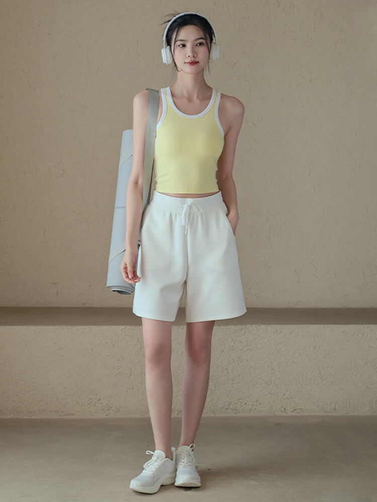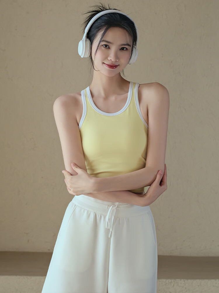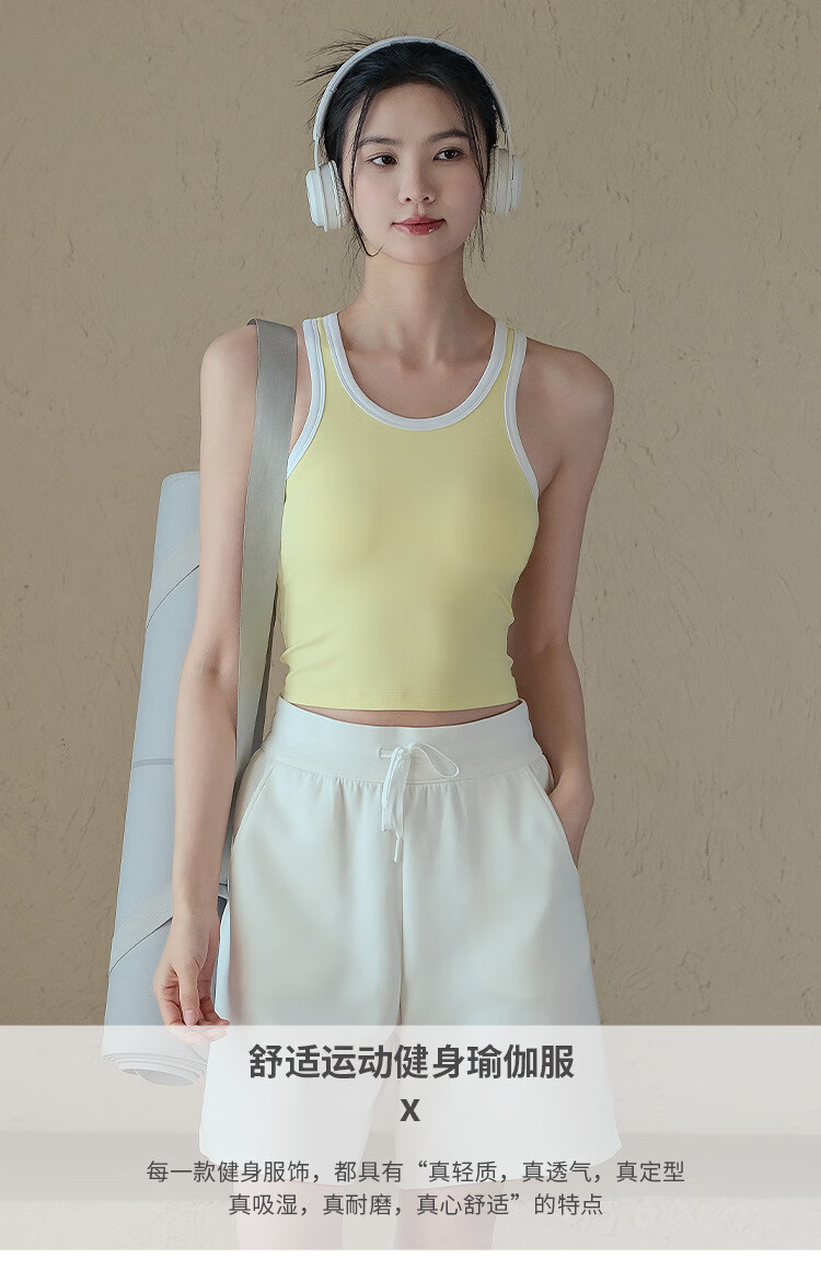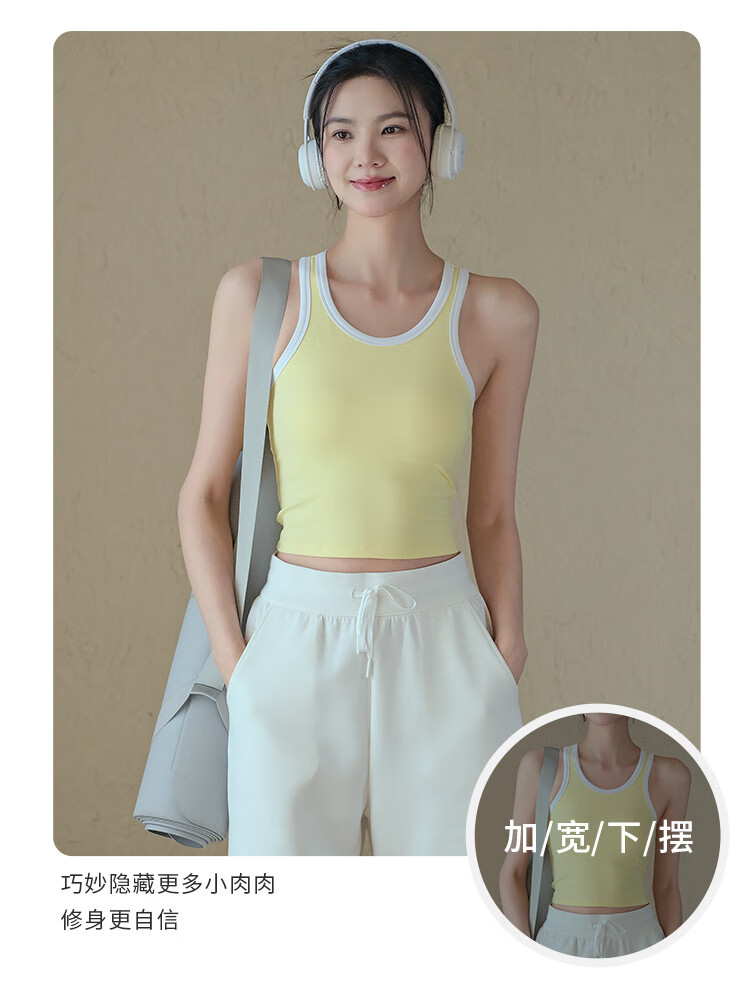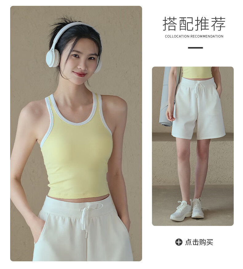 LULUUVTTOH Sports Bra Women's New Shockproof Breast Retracting Yoga Wear Vest Running Pilates Training Fitness Bra Women's Washable Yellow/White Removable Breast Pad M
