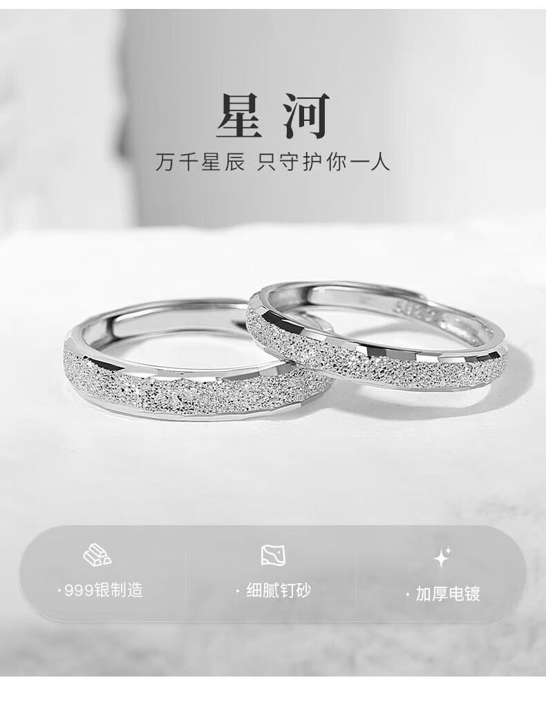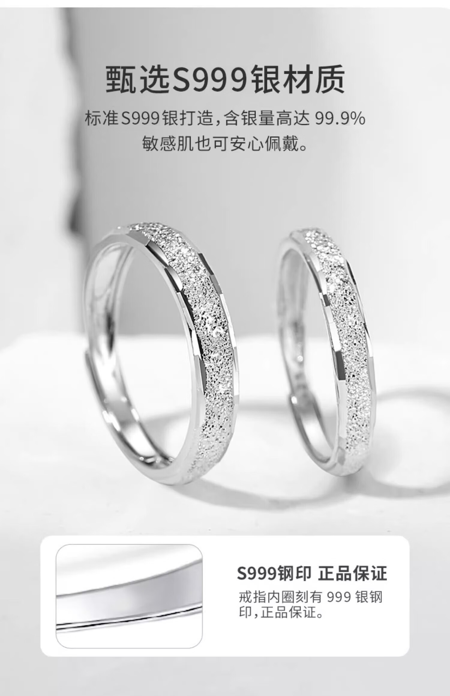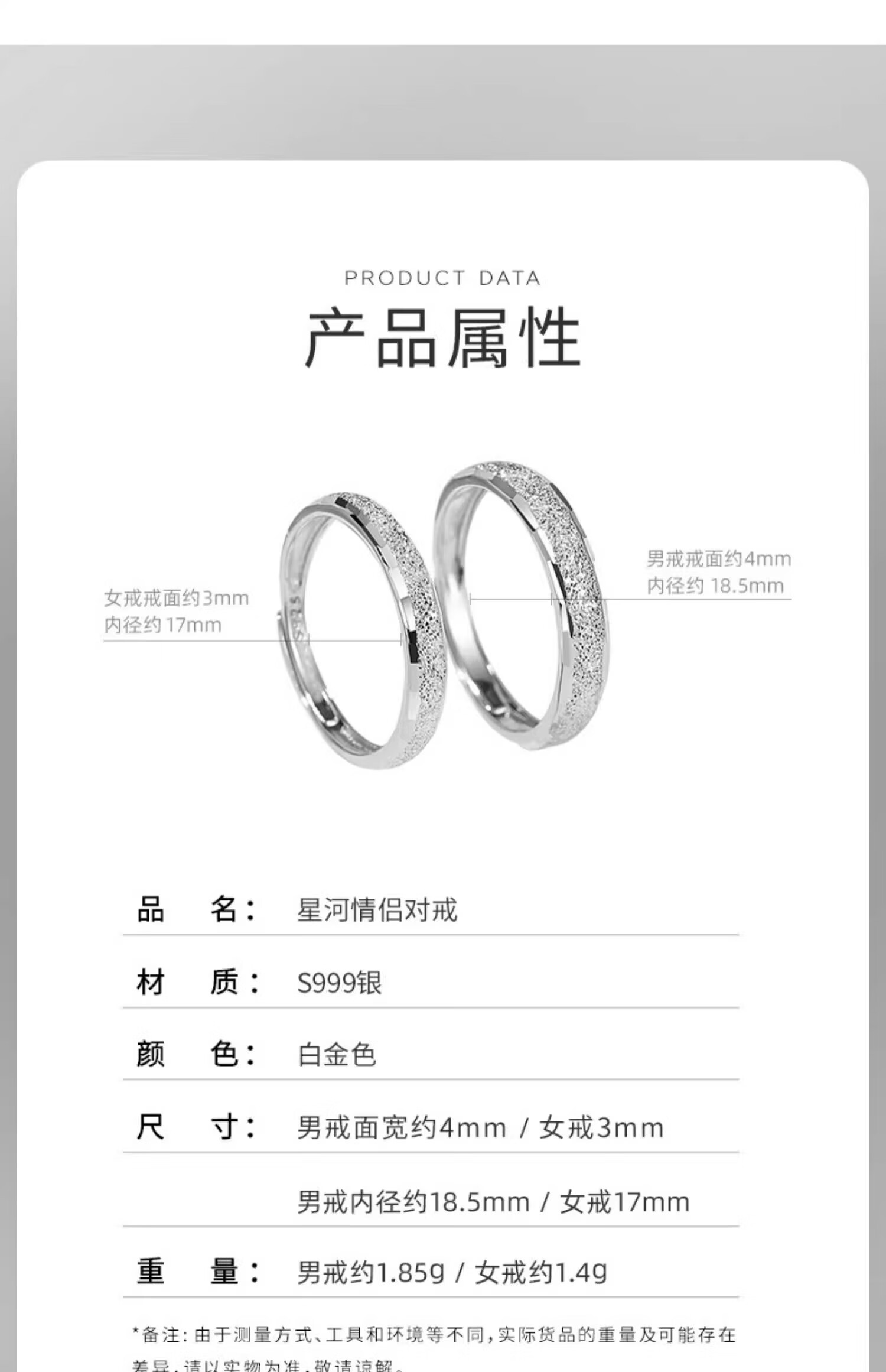 BJYL engraved S999 sterling silver baby's breath ring for couples, a pair of ring rings, jewelry for men and women as birthday gifts, 999 silver galaxy ring-women's ring