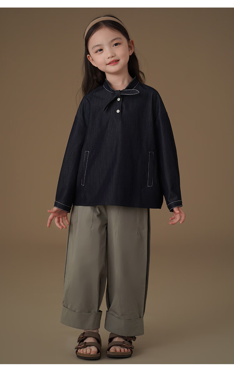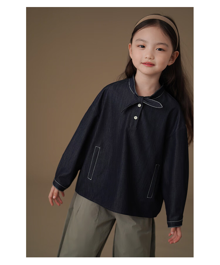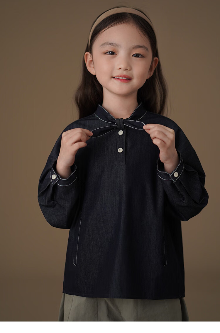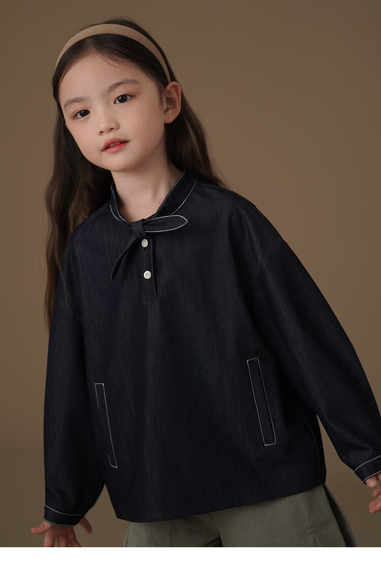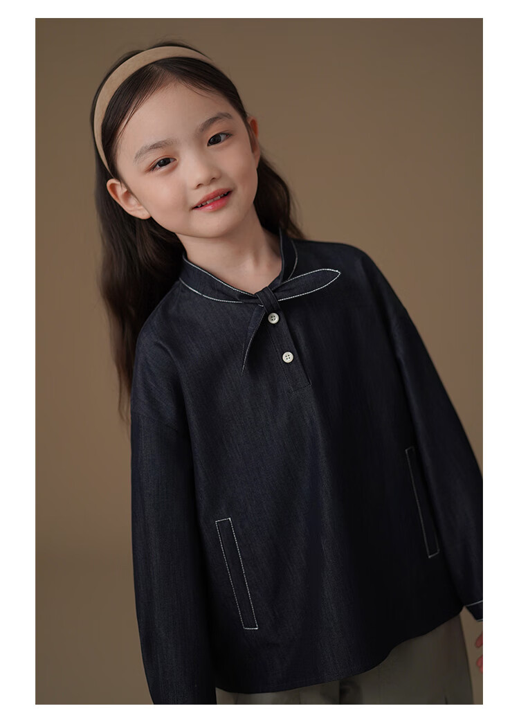 Haqi children's clothing children's denim shirt spring and autumn thin simple casual top girls spring clothing 25 new design sense dark denim blue 170