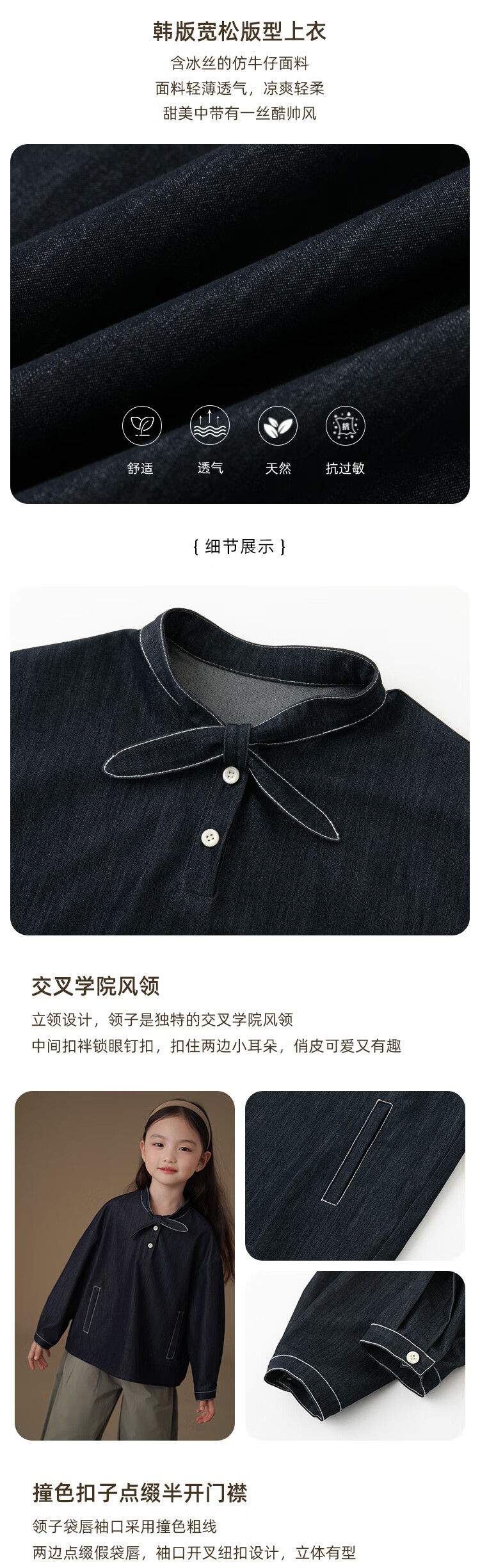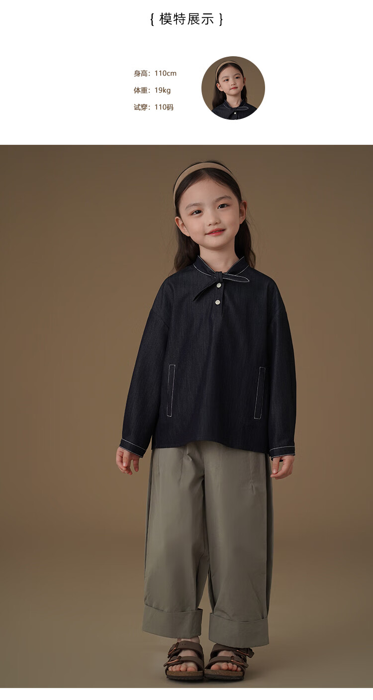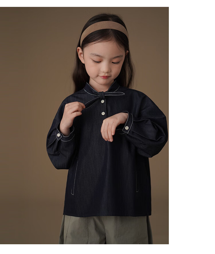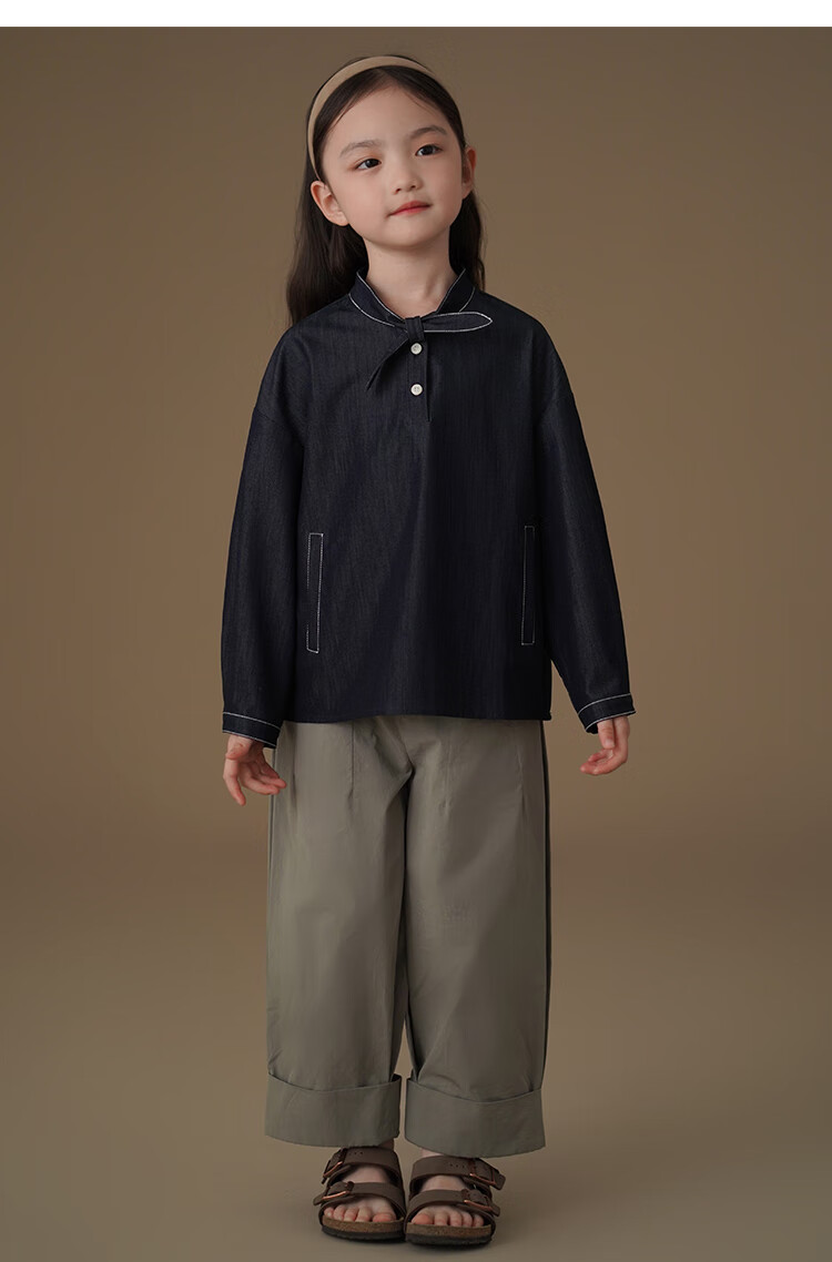 Haqi children's clothing children's denim shirt spring and autumn thin simple casual top girls spring clothing 25 new design sense dark denim blue 170