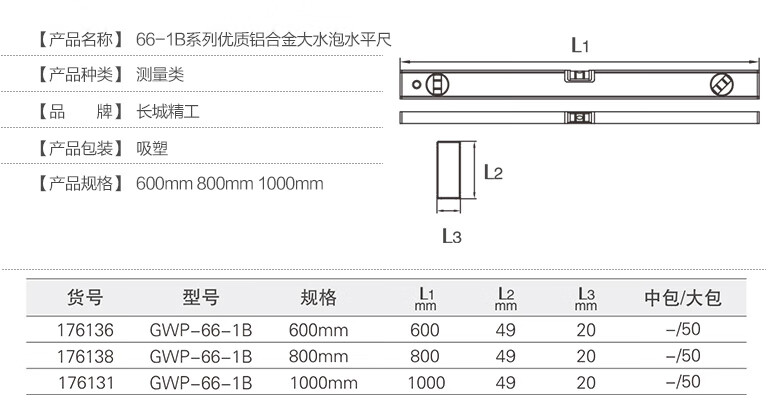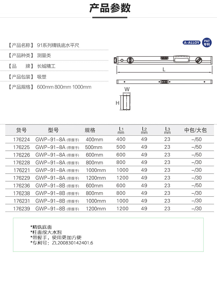 Great Wall ruler 1m high-precision aluminum alloy household controllable strong magnetic acceptance tool 2m flat water ruler 91A level ruler 2000mm (two blisters) non-magnetic 18