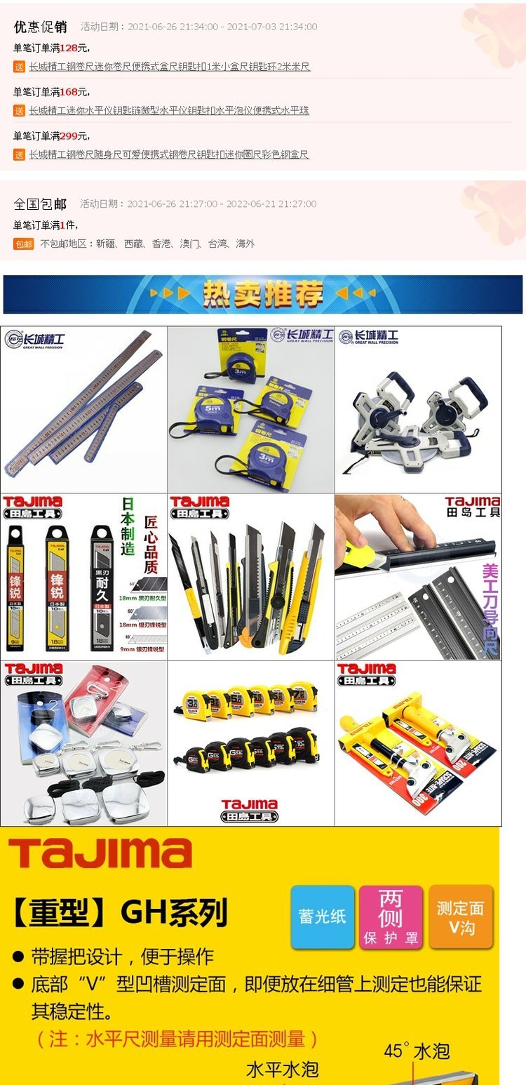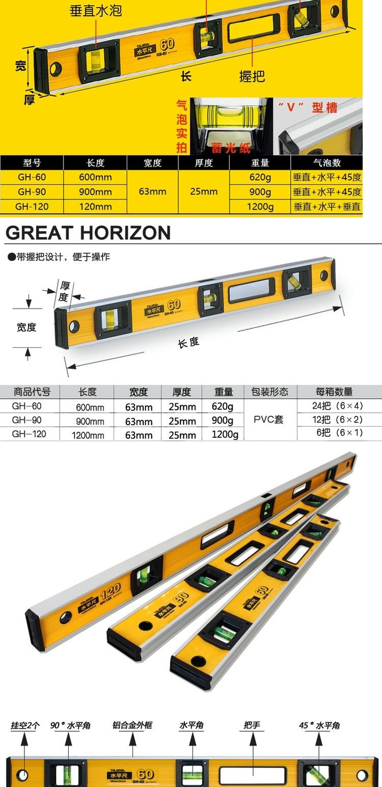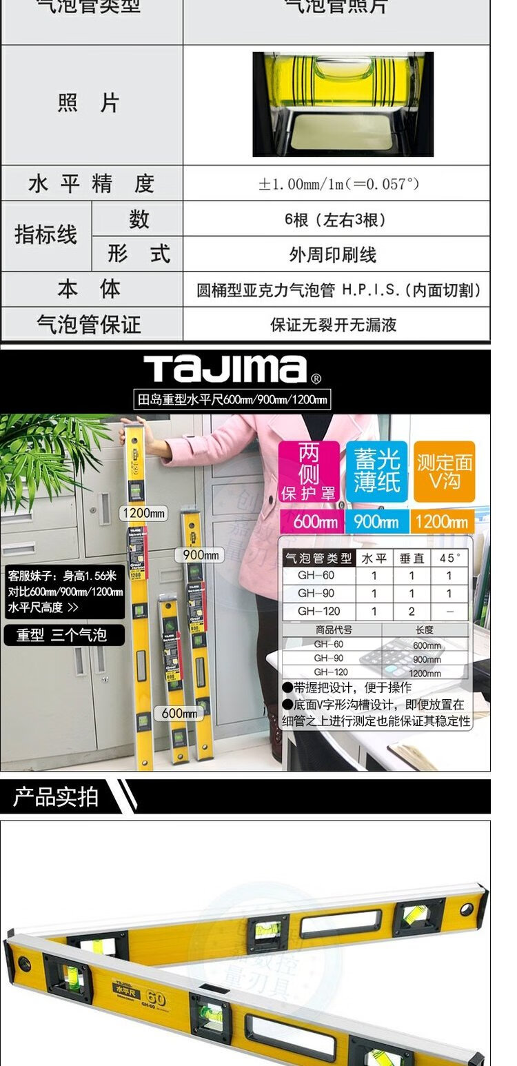 TAJIMA heavy-duty rail-type high-precision level thickened aluminum alloy level GH large blister level GH60 (600MM)