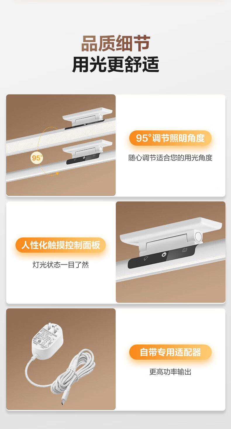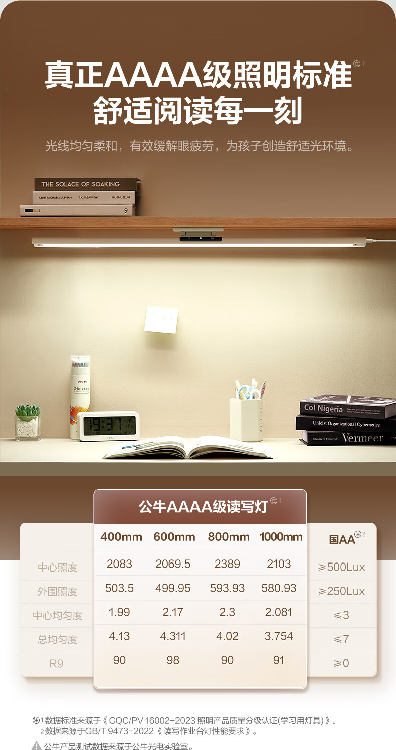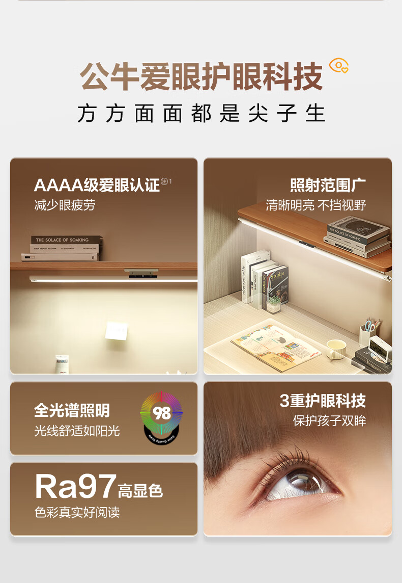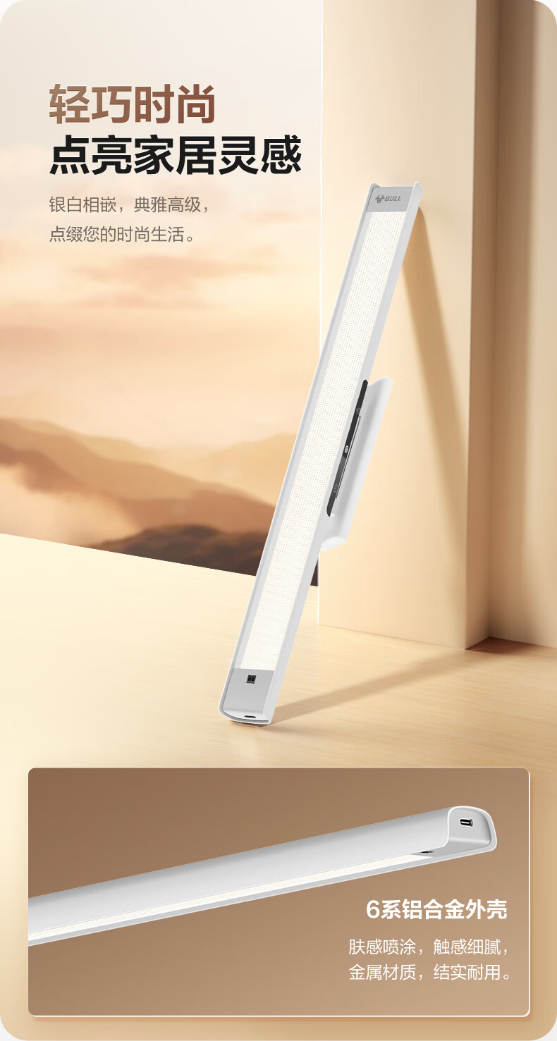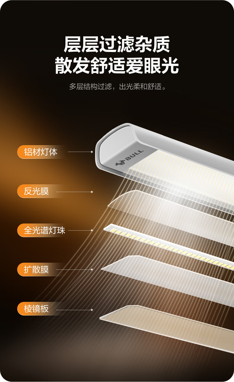 Bull (BULL) wall-mounted eye protection cool lamp full spectrum student reading and learning dormitory lamp magnetic upgrade buckle desk lamp AAAA level 60cm/16w stepless dimming official national standard RG0 anti-blue light non-stroboscopic bedside lamp