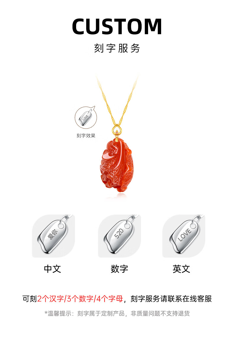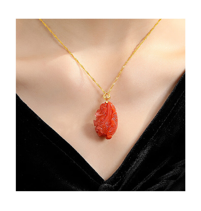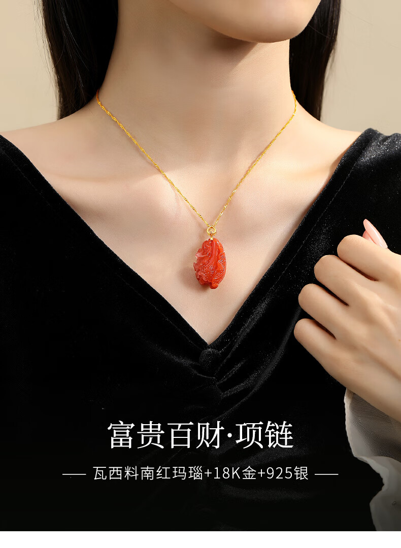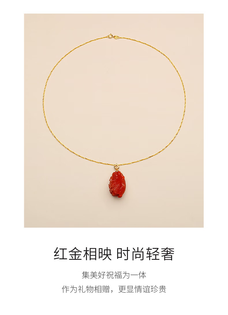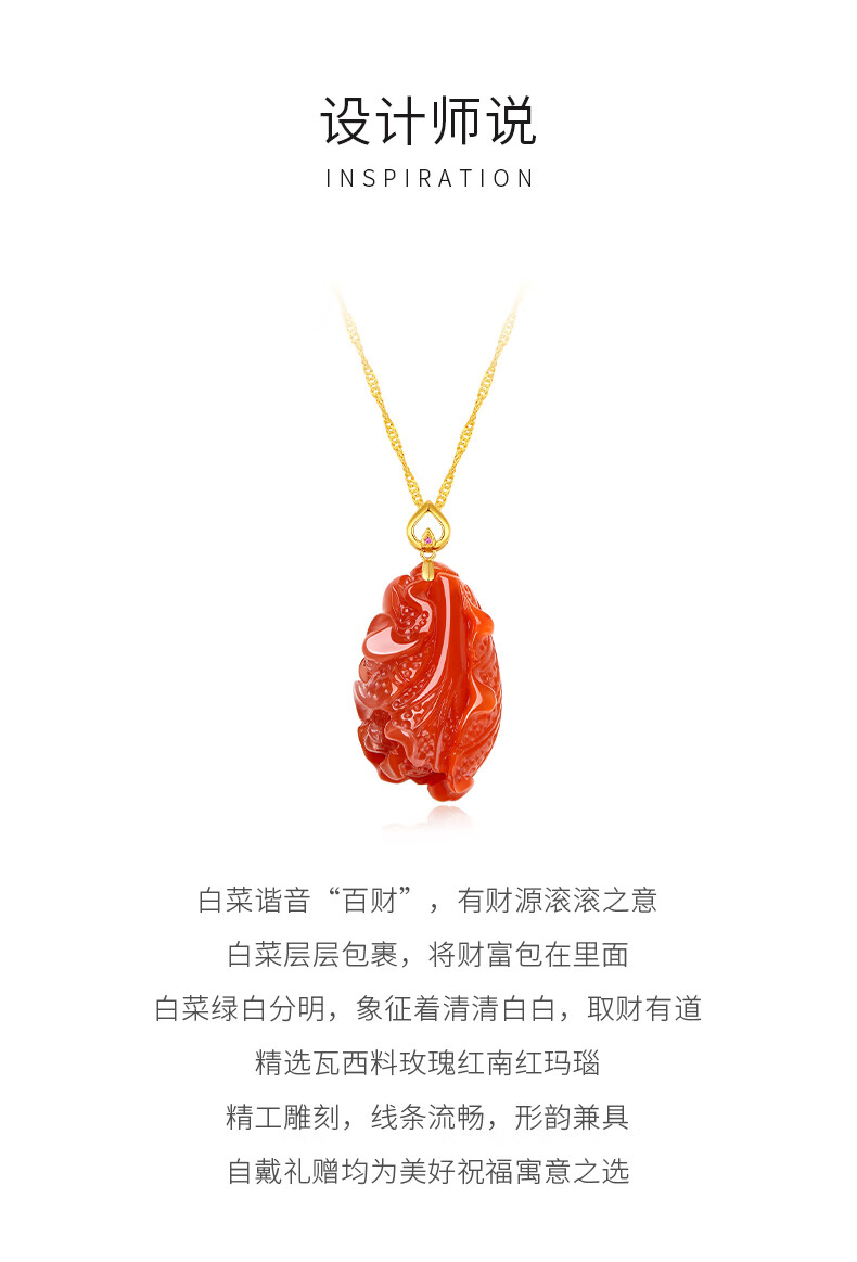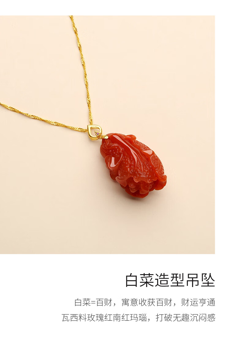Layun Feiyin Nanhong Agate Pendant Baicai Cabbage Nine Luck Soaring Necklace Women's 18K Gold Zodiac Year Gold-Absorbing Pendant 18K Nanhong Baicai Pendant + 18K Gold Chain
