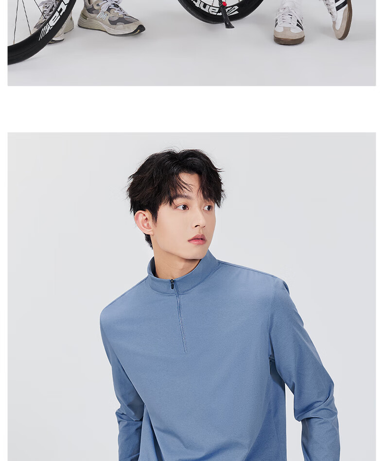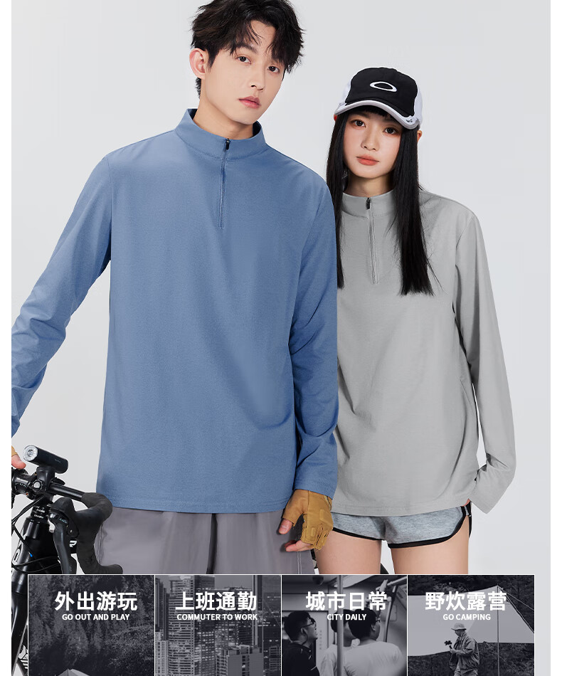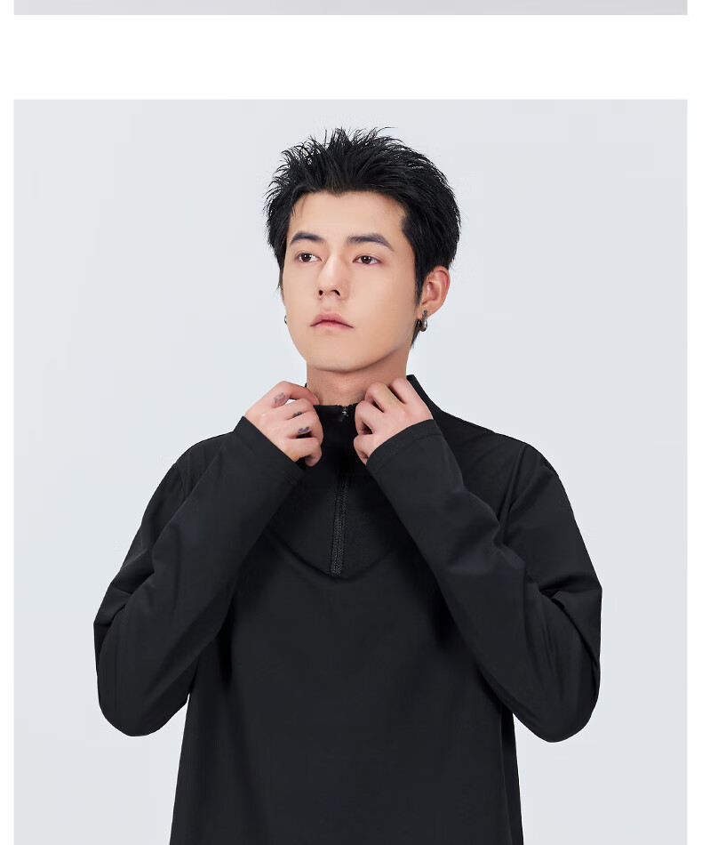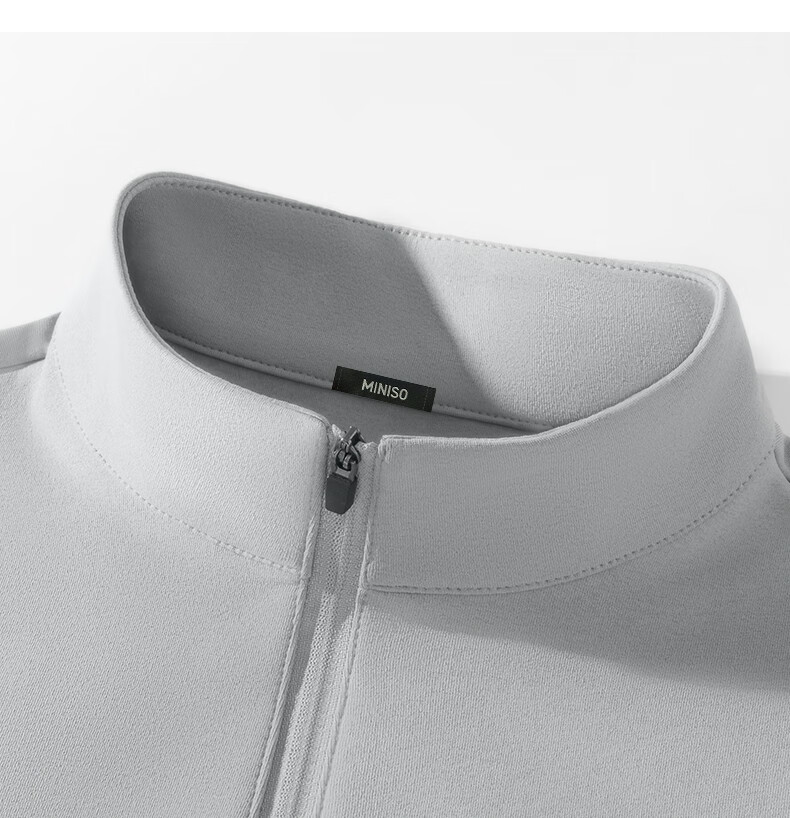 MINISO quick-drying T-shirt men's spring and autumn new long-sleeved bottoming shirt half-zip stand-up collar sports outdoor running sun protection cycling jersey black (return seal body chest logo) M /170 (upgraded technology to absorb moisture and dry quickly)