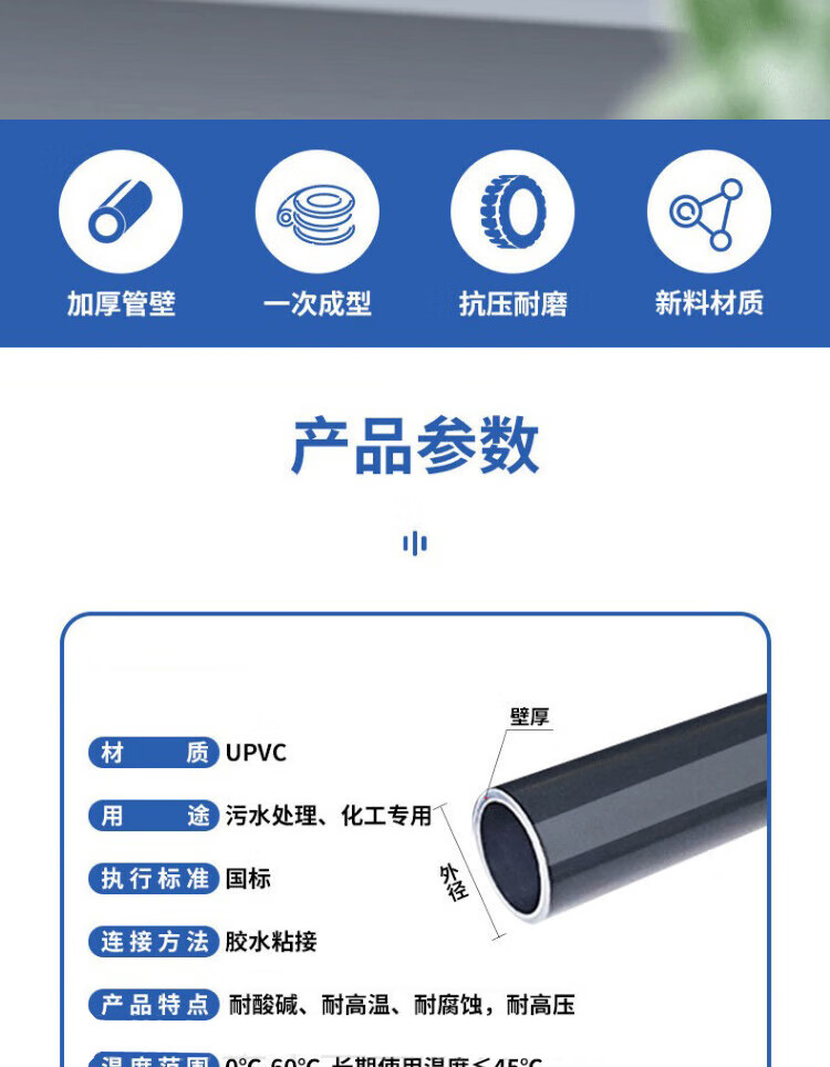 Huaya UPVC chemical pipe 1.0MPa acid and alkali resistant industrial sewage treatment pipe unit root 315mm*15mm*4m DN300