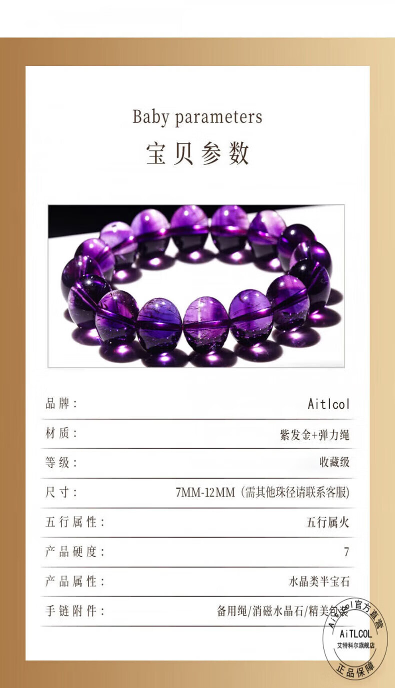 Aitkel Purple Hair Crystal Bracelet Purple Red Super Seven-Nine Purple Fire Crystal Bracelet for Girlfriend and Wife Birthday and Valentine's Day Gift Collection Grade Purple Hair Crystal-8mm