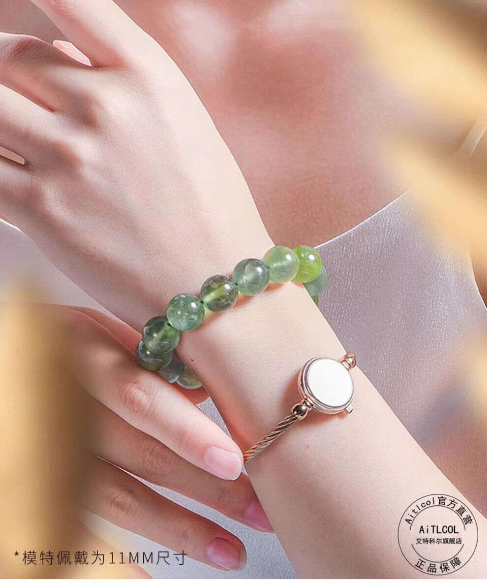 Aitkel natural ice seed prehnite bracelet chain, clear emerald green crystal, African gift for girlfriend and wife's Valentine's Day birthday, collection grade prehnite-8mm