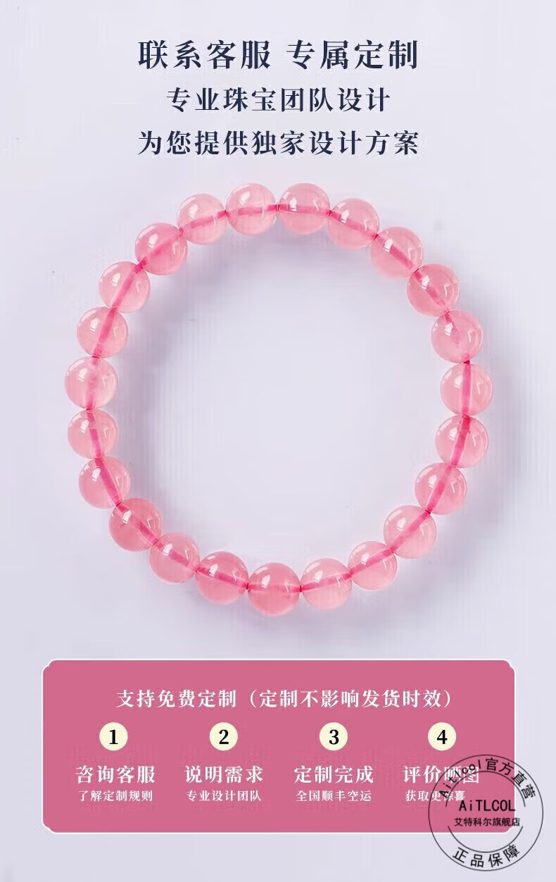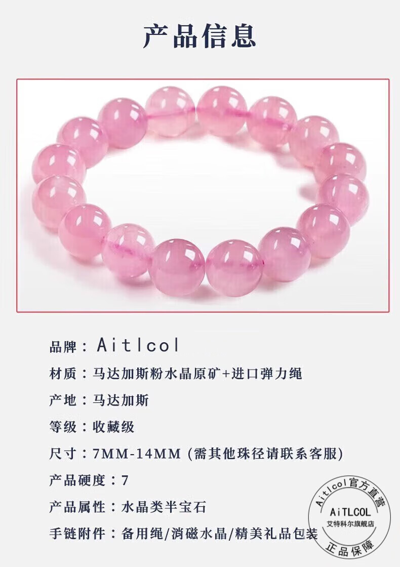 Etcol Madagascar Natural Pink Crystal Bracelet Peach Blossom Pink Crystal Bracelet Old Mine as a Birthday Gift for Girlfriend Collection Grade Pink Crystal-7mm