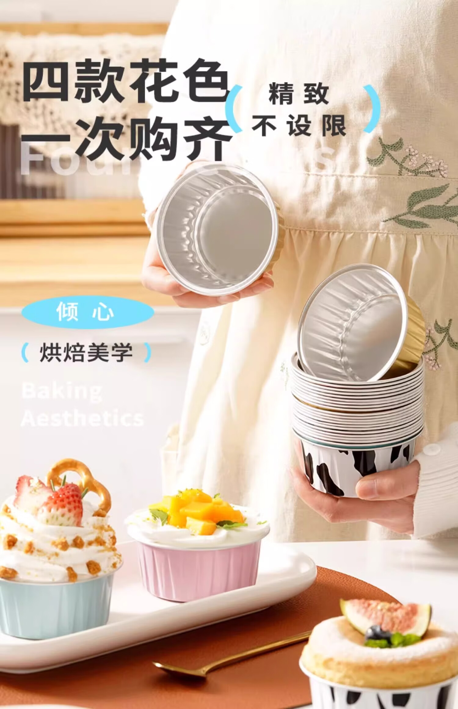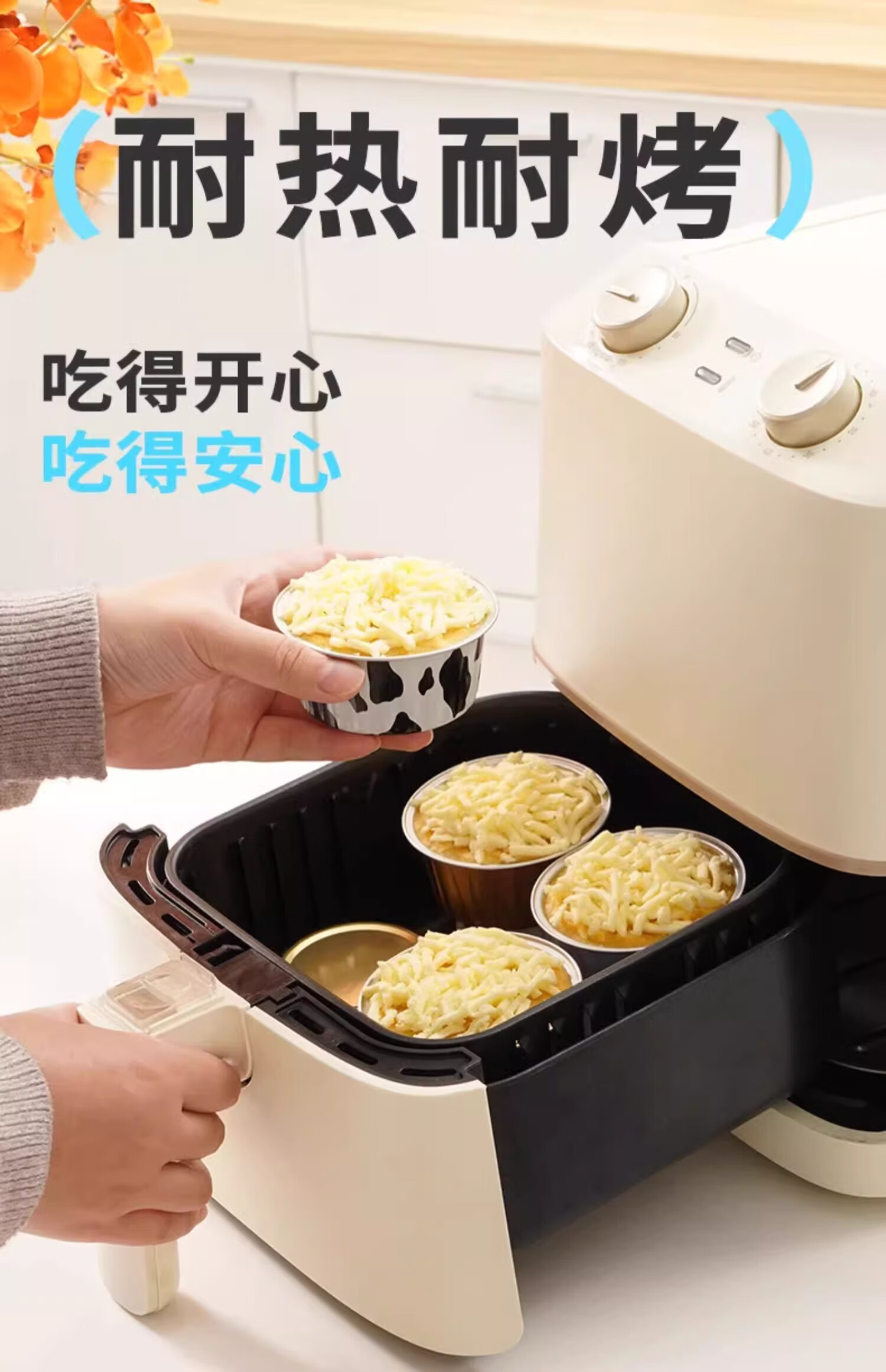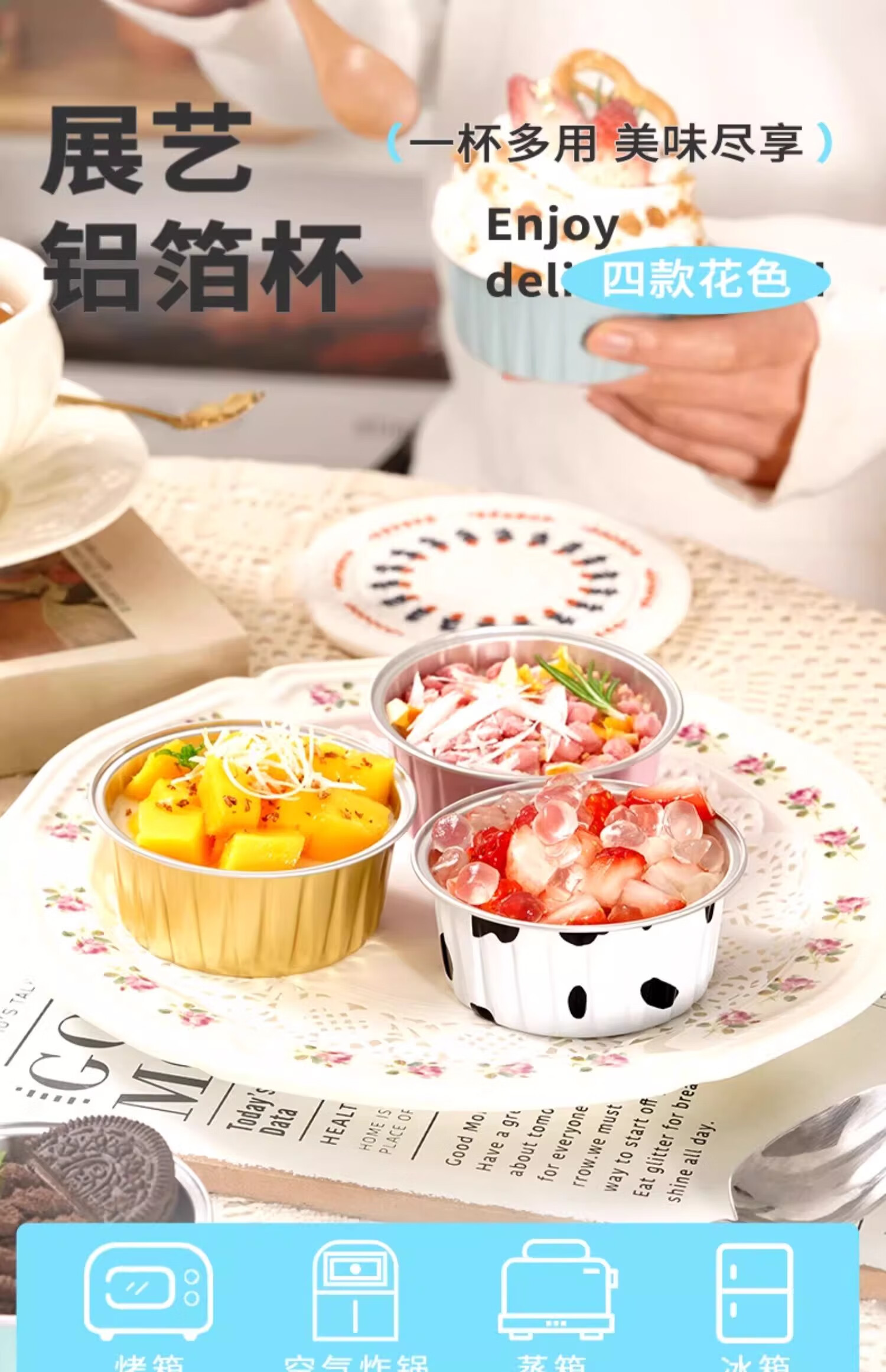 Zhanyi air fryer special tin foil bowl household oven tin foil box cup pudding cup cake baking mold extra thick 4 types 20 pieces cow/gold/blue/pink
