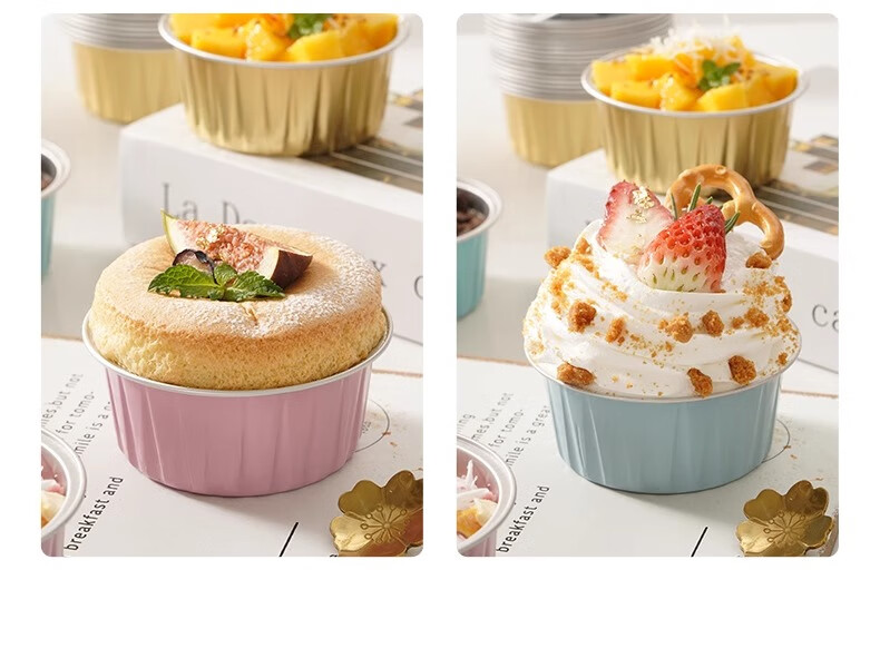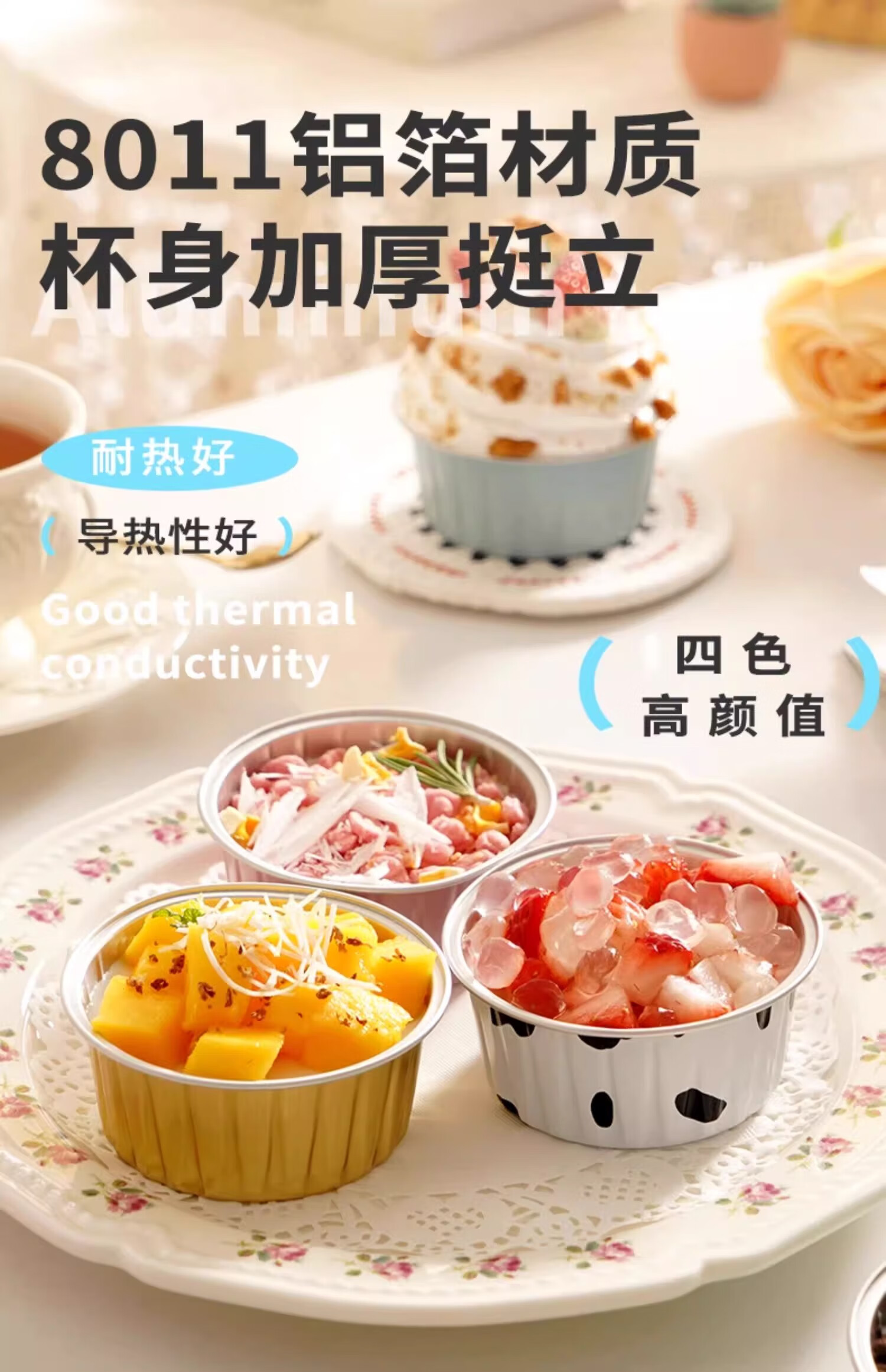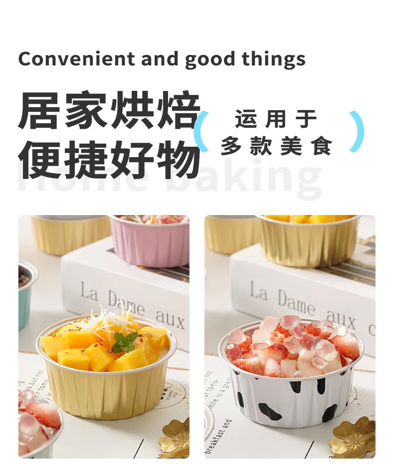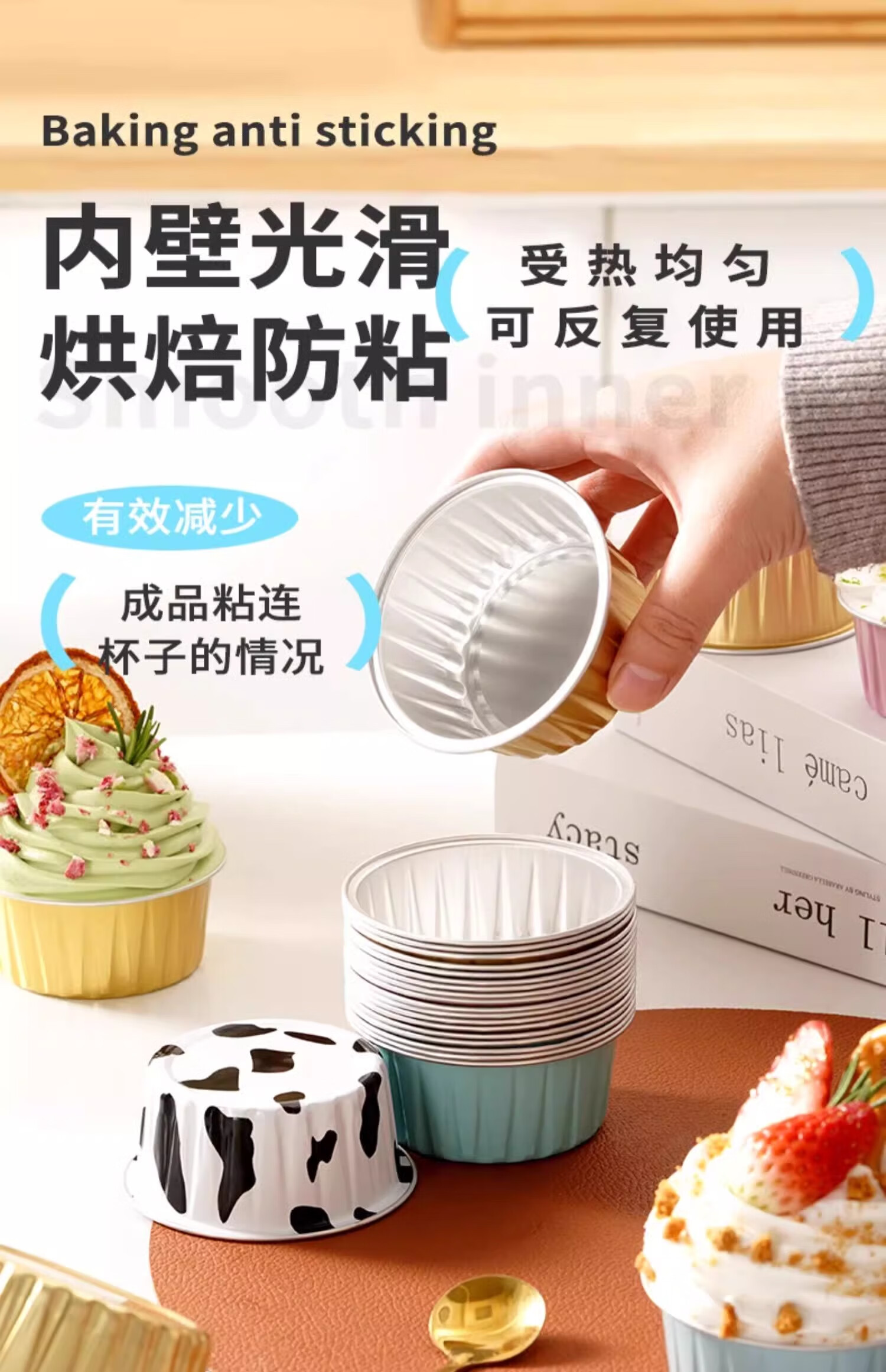 Zhanyi air fryer special tin foil bowl household oven tin foil box cup pudding cup cake baking mold extra thick 4 types 20 pieces cow/gold/blue/pink