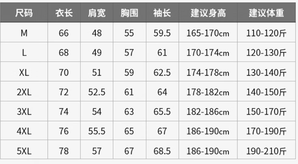 China (cm) 160-165/84-86 165-170 / 88-90 167-172 / 92-96 168-173 / 98-102 170-176 / 106-110