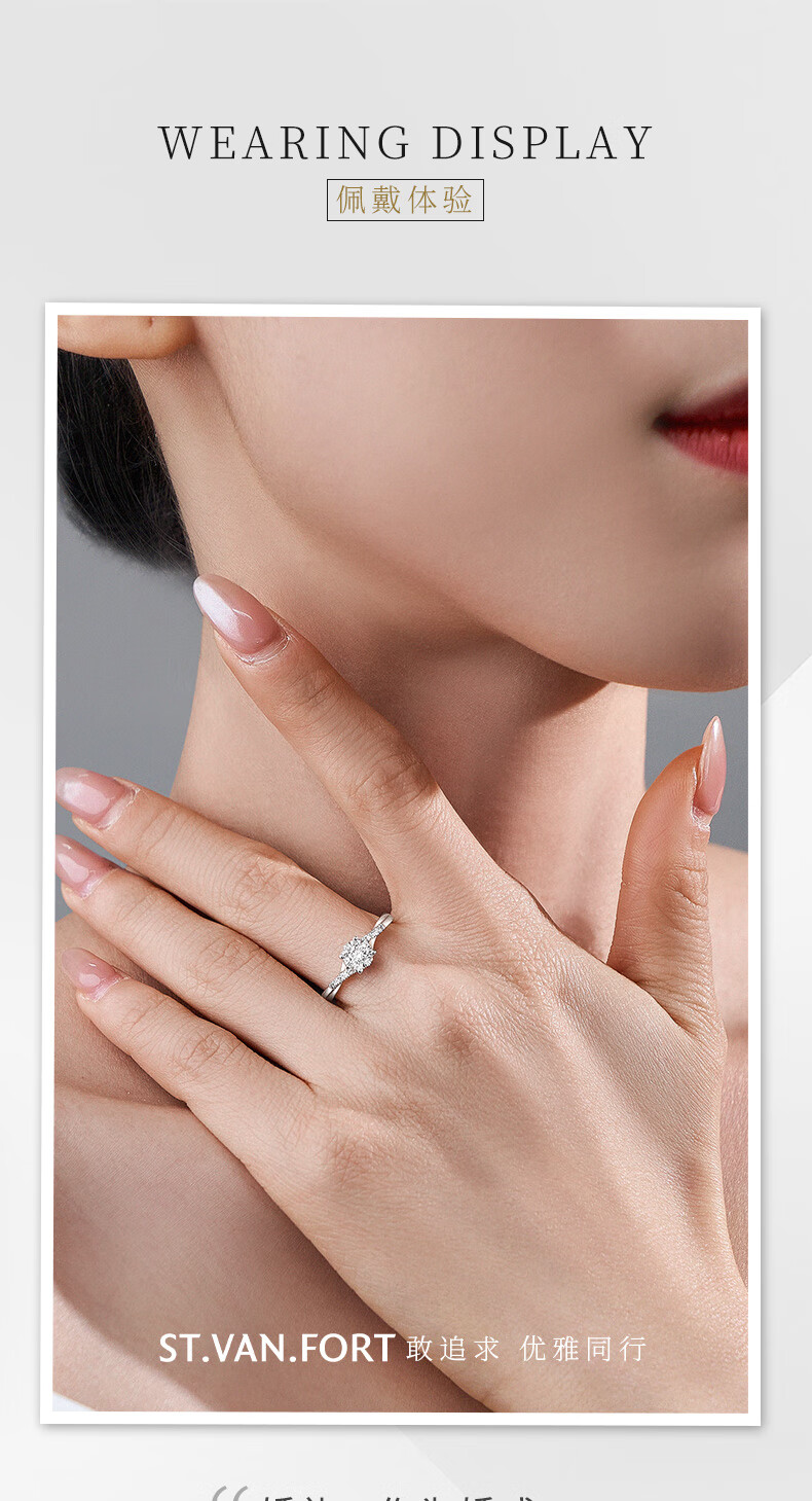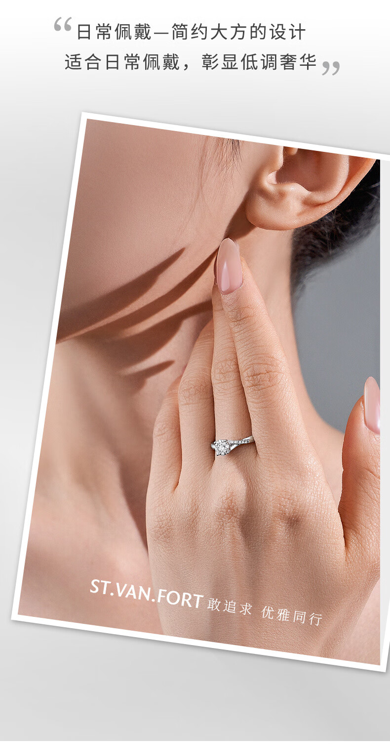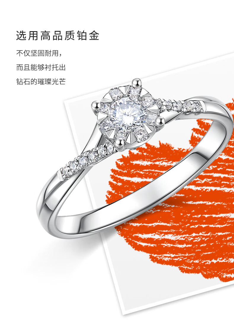 Xinwanfu ready-made diamond ring, platinum proposal diamond ring, simple luxury, shining diamond, engagement and birthday gift for girlfriend, total about 24 points, platinum-main diamond 13 points, FG color