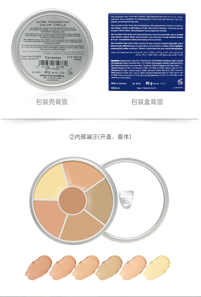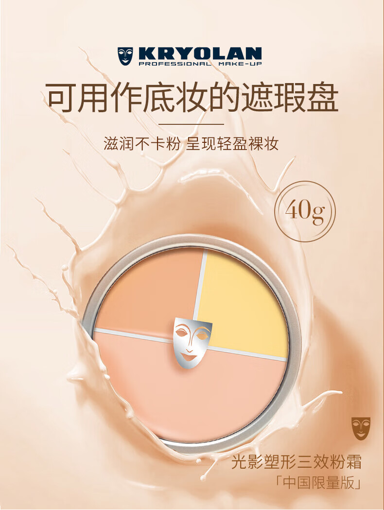 KRYOLAN Phantom of the Opera Three Color Concealer Palette German Mask Six Color Concealer Concealing Acne Marks Dark Circles Moisturizing 40g China Limited Three Colors