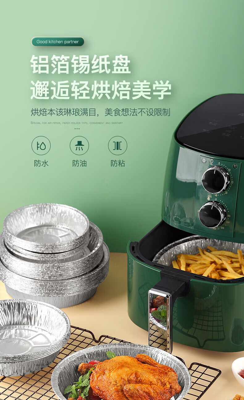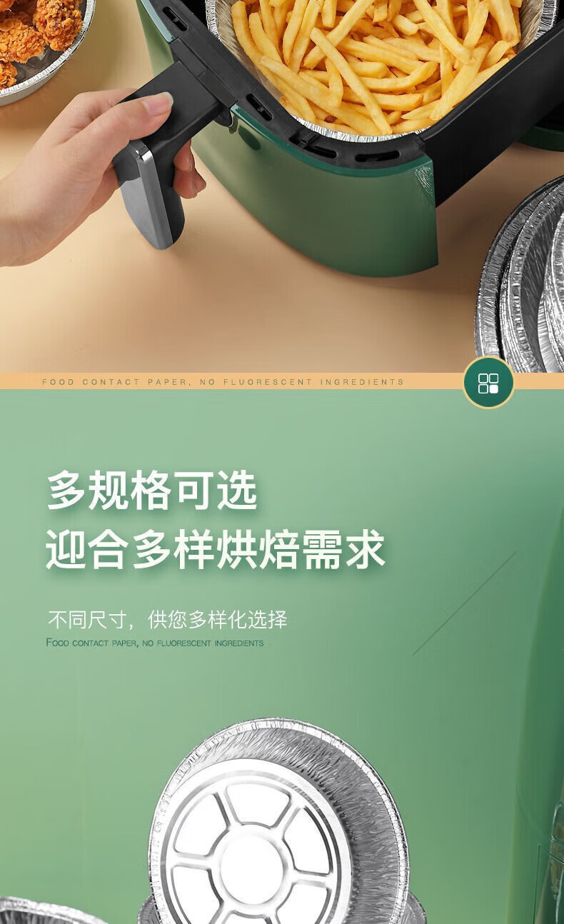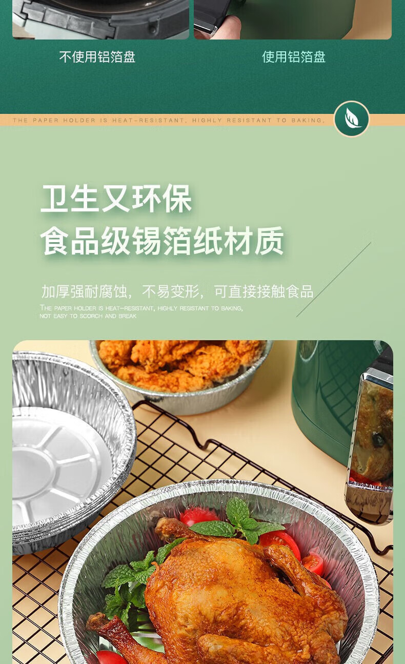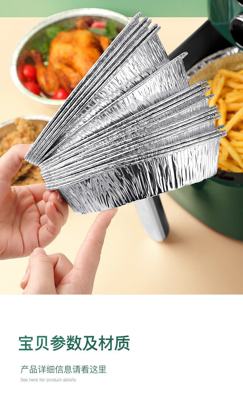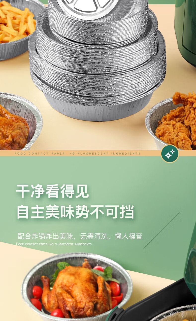 Thickened rice bowl for air fryer, tinfoil plate, household barbecue bowl, tinfoil bowl, high temperature resistant baking oil-absorbing grease-proof paper, 6 inches, 3-3.5 liters, universal, 10 pieces