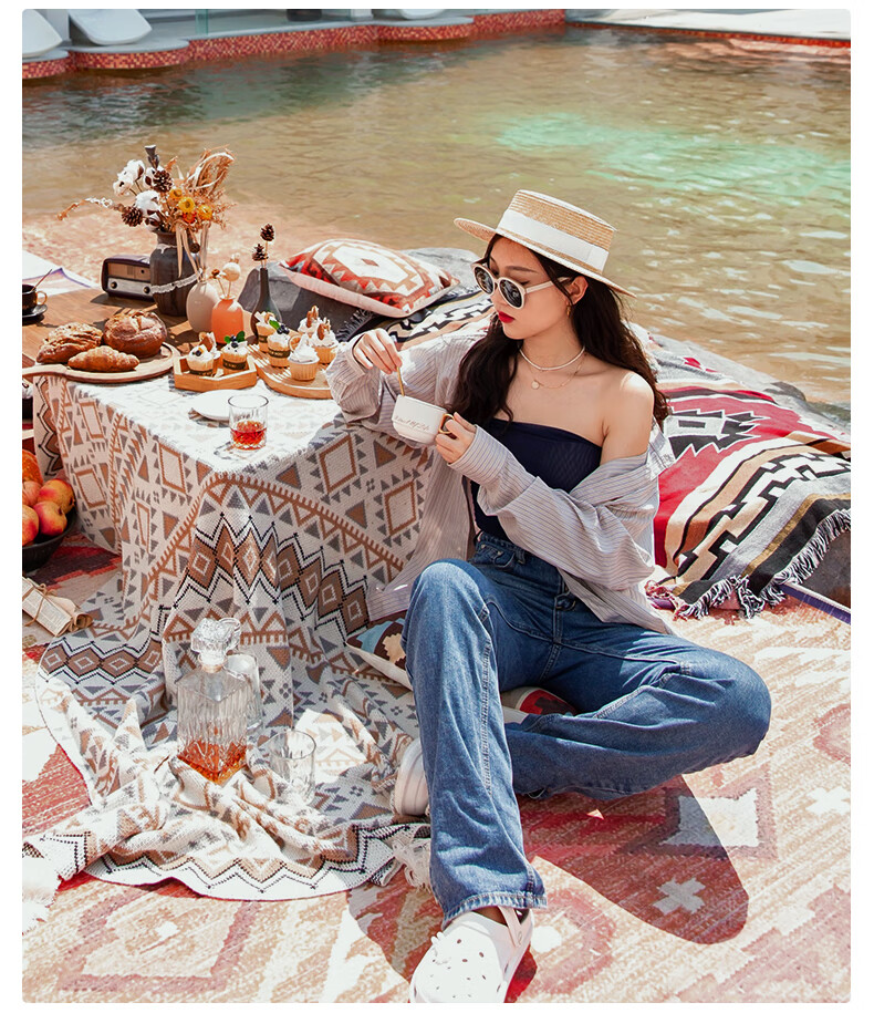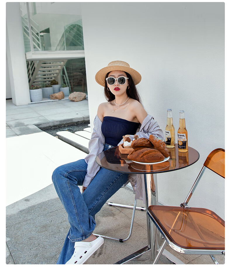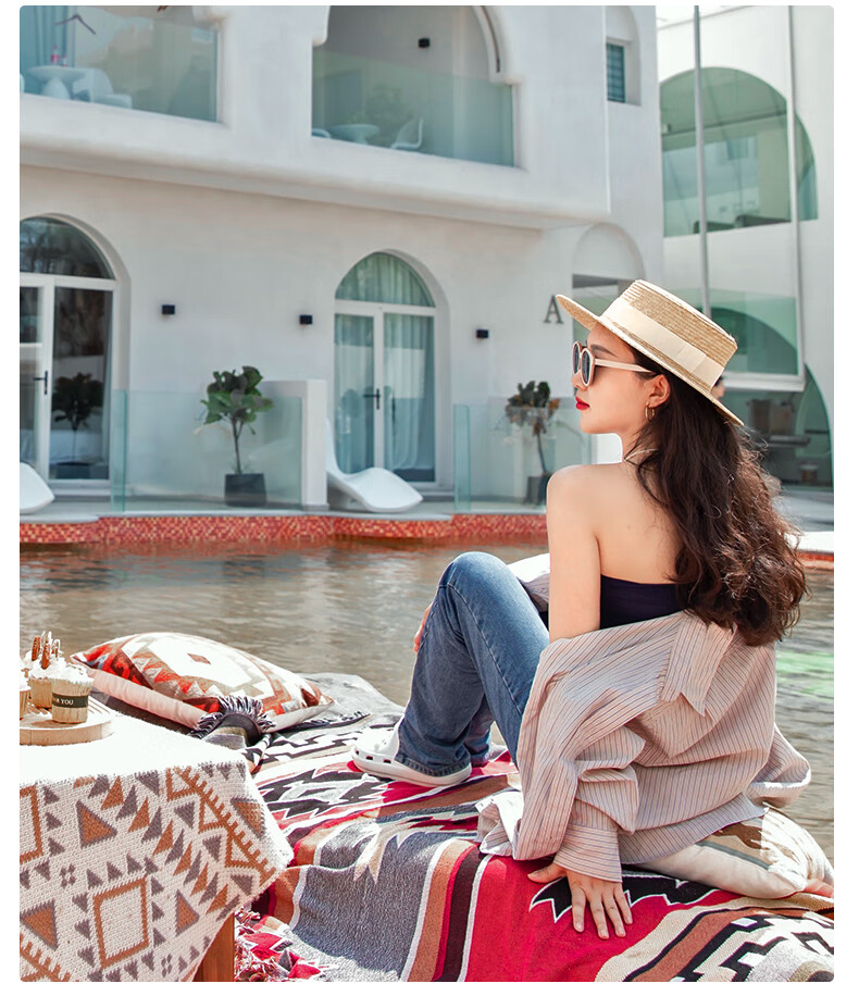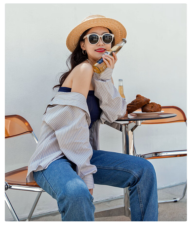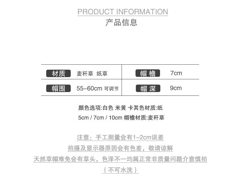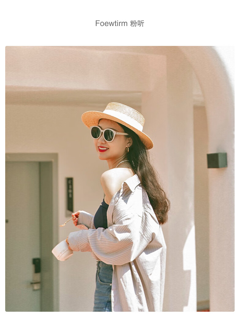 Nanbomaru French flat-top straw hat for women, summer sun protection, seaside vacation beach hat, new flat-brimmed straw woven hat, white, adjustable (5560cm)