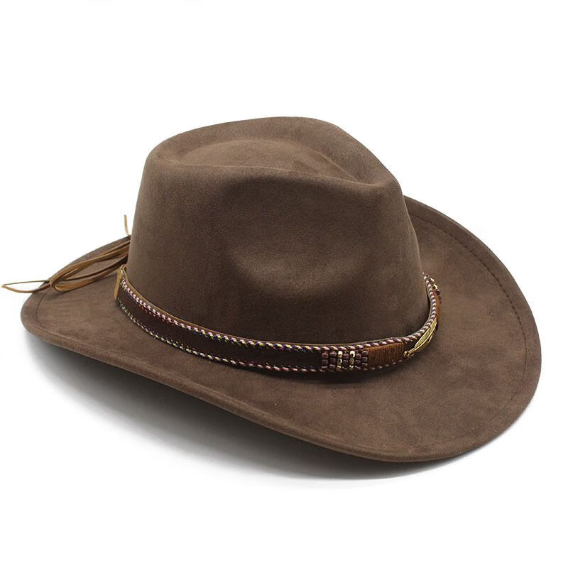 Nanbomaru white snowy cowboy hat for men and women Tibetan hat ethnic style suede texture feather cowboy hat khaki M (5658cm)