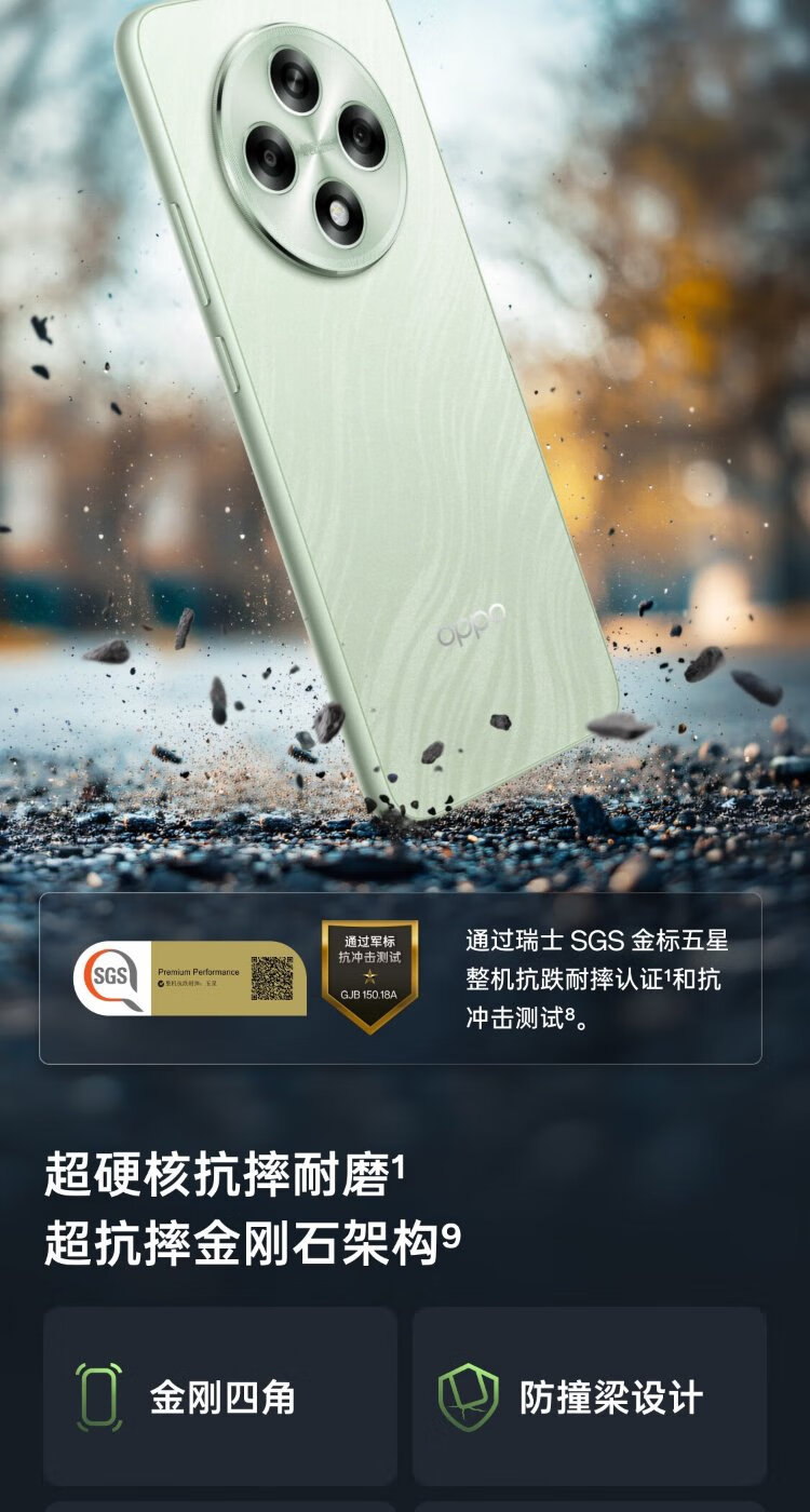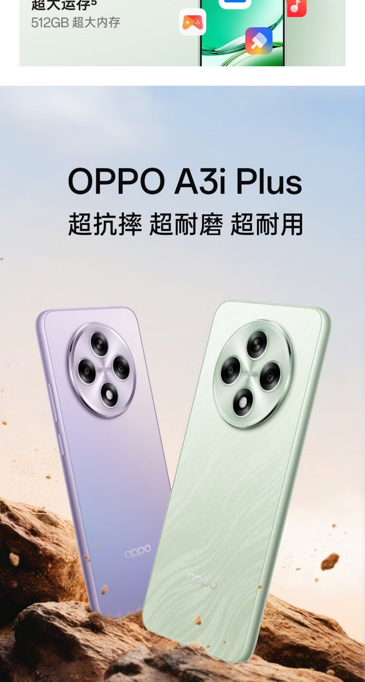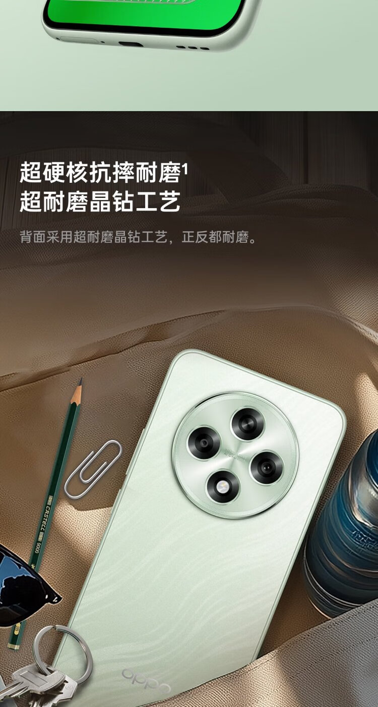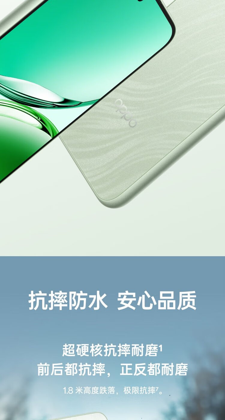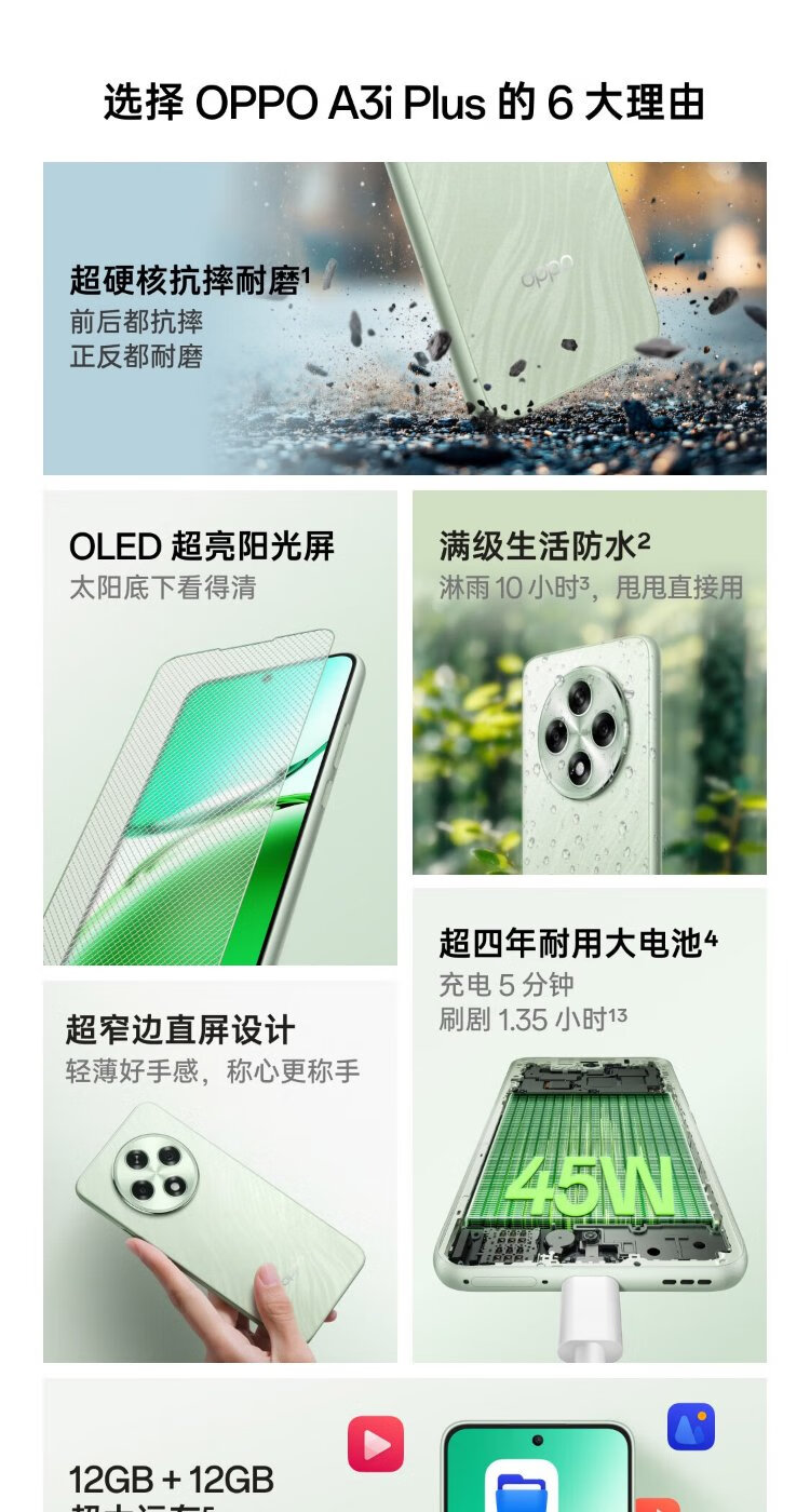 OPPO A3i Plus 5G, the new durable God of War, ultra-hard core, drop-resistant and wear-resistant, OLED ultra-bright sunlight screen, full-grade waterproof for daily use, large battery with over four years of durability, pine leaf green, 12GB+512GB