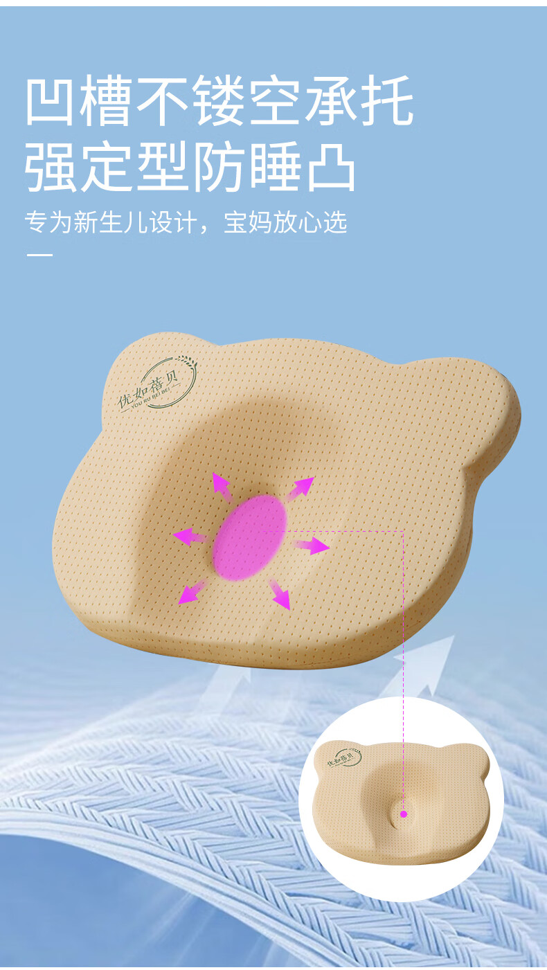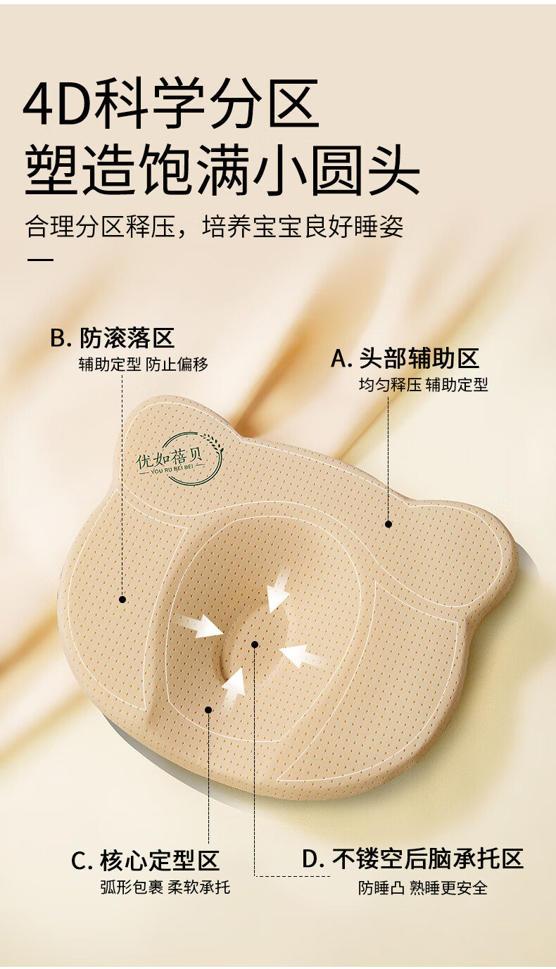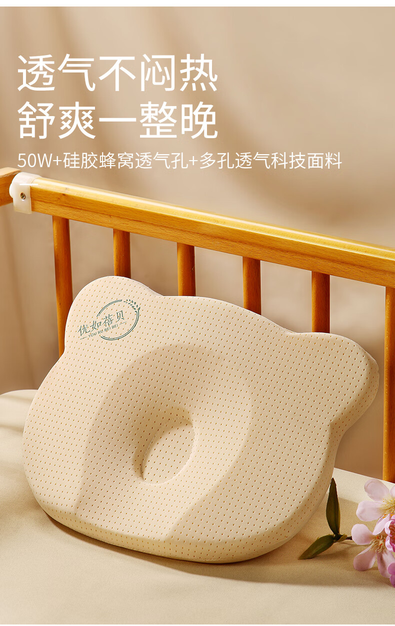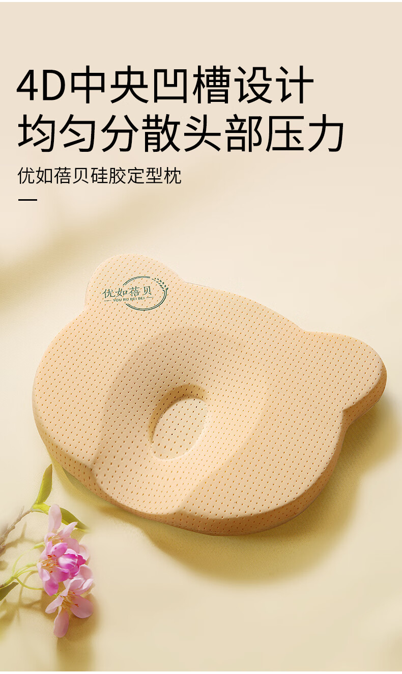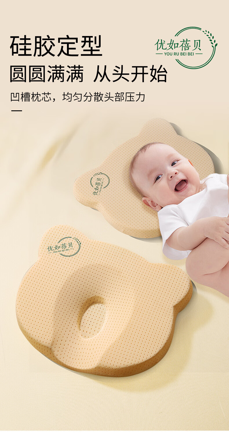 Youru Beibei baby shaped pillow with round head for 0 to 6 months and above newborn baby anti-head deflection breathable and cool silicone pillow suitable for 0-2 years old bear shaped silicone pillow