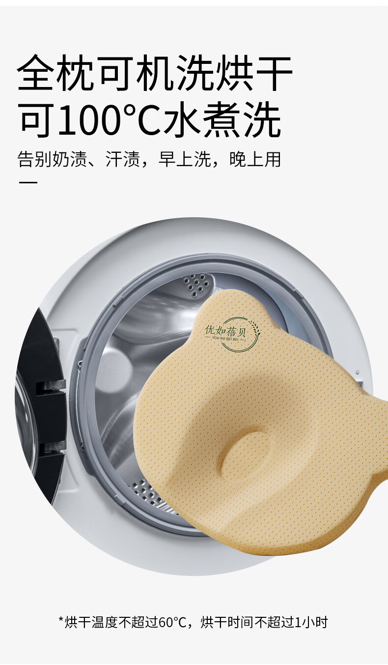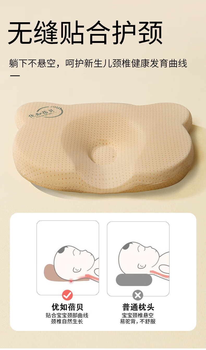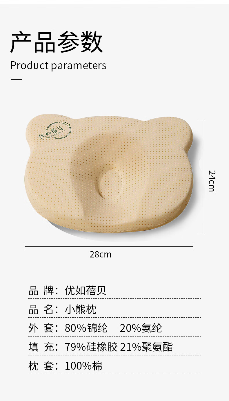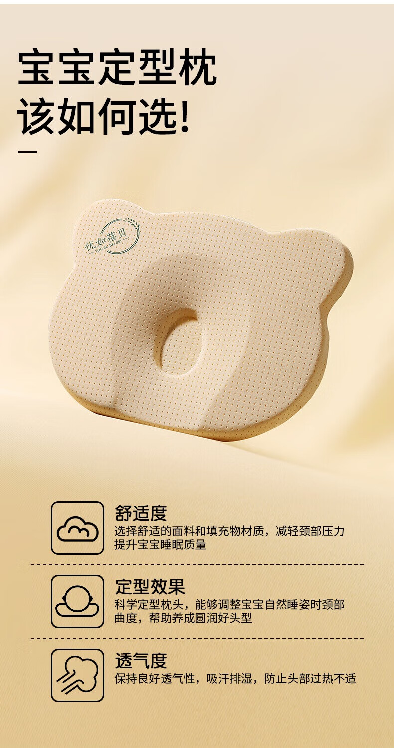 Youru Beibei baby shaped pillow with round head for 0 to 6 months and above newborn baby anti-head deflection breathable and cool silicone pillow suitable for 0-2 years old bear shaped silicone pillow